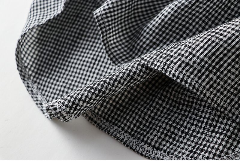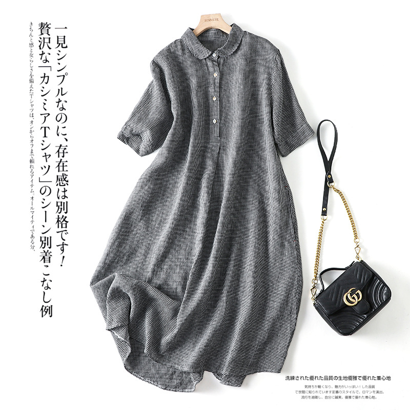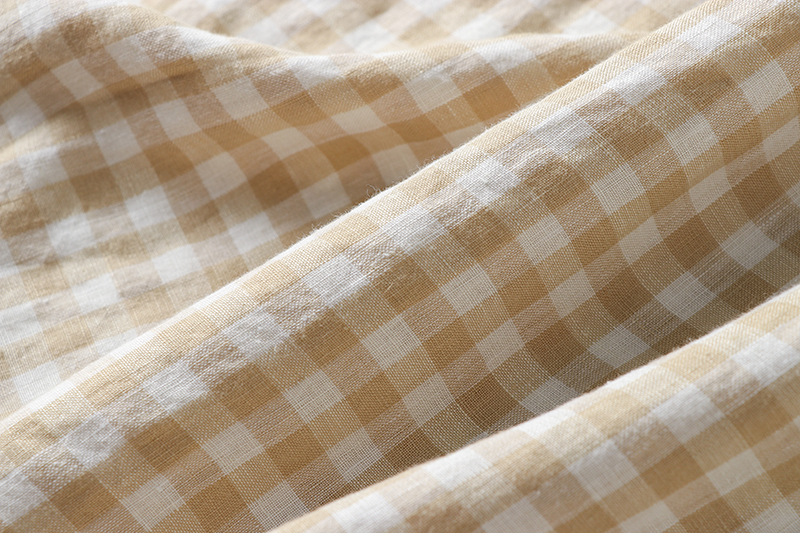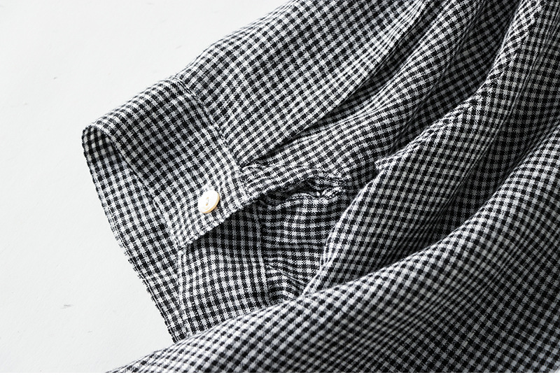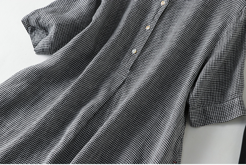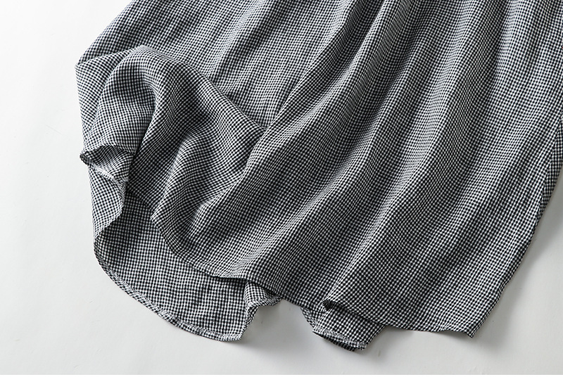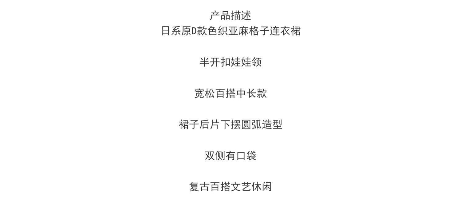 日系色织亚麻格子连衣裙女2024夏新款复古休闲造型下摆宽松长裙子