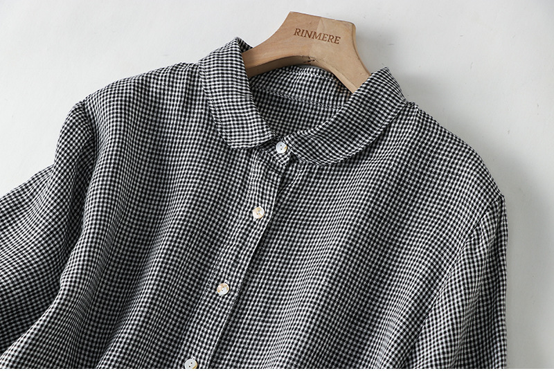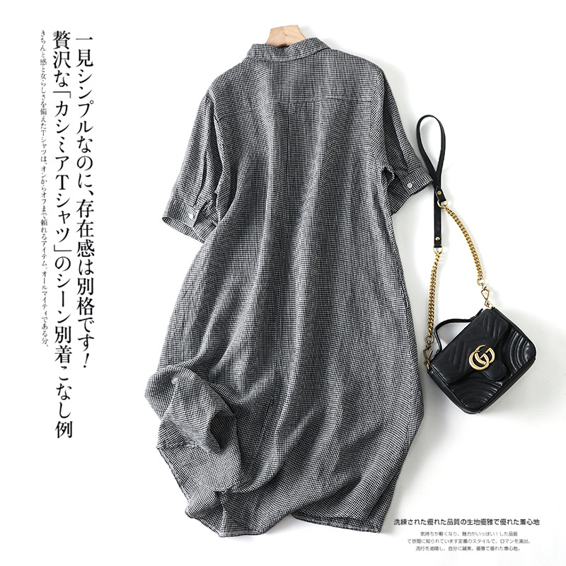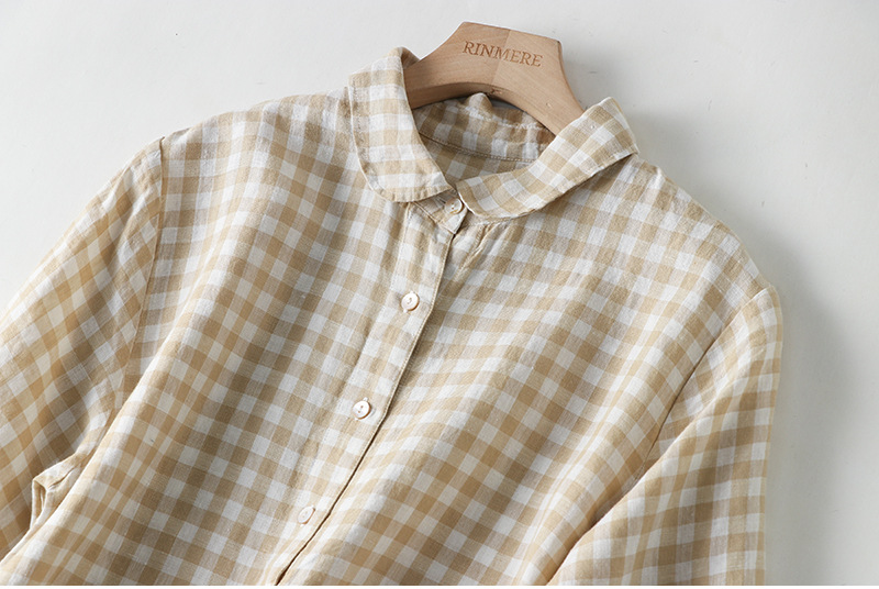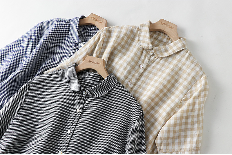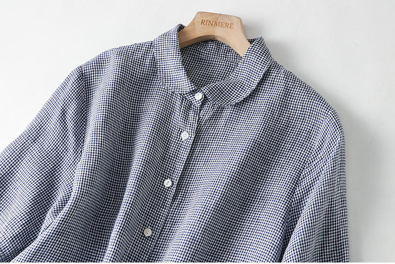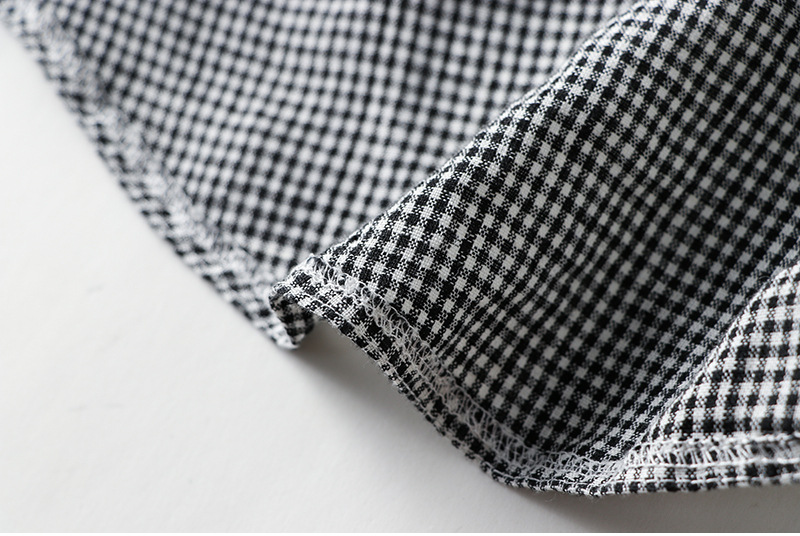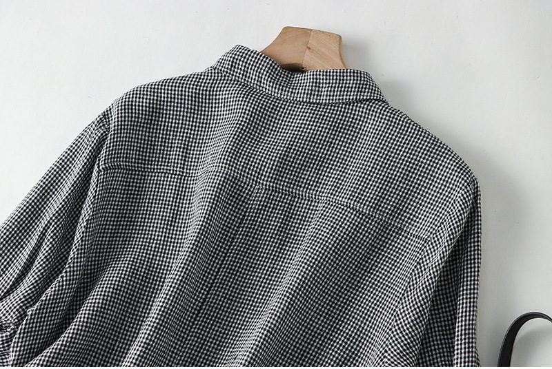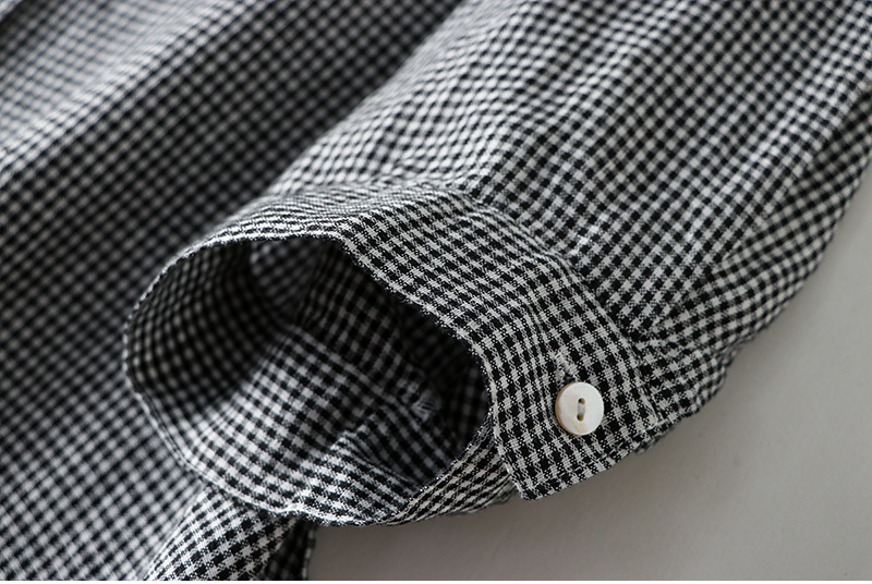 日系色织亚麻格子连衣裙女2024夏新款复古休闲造型下摆宽松长裙子