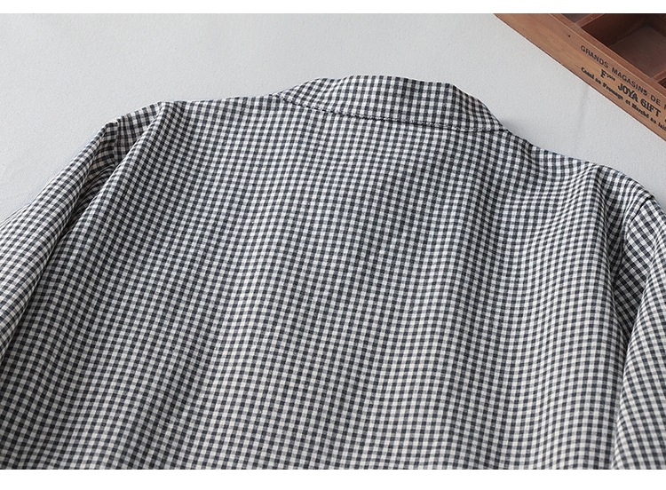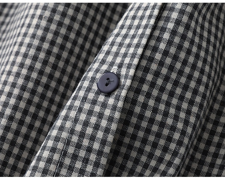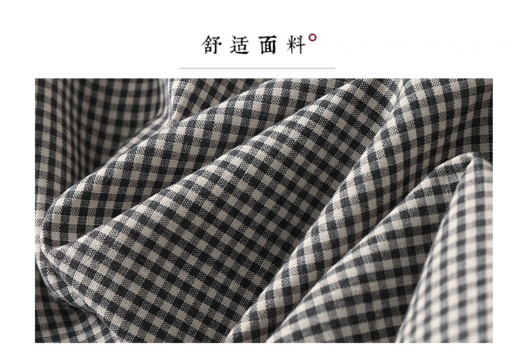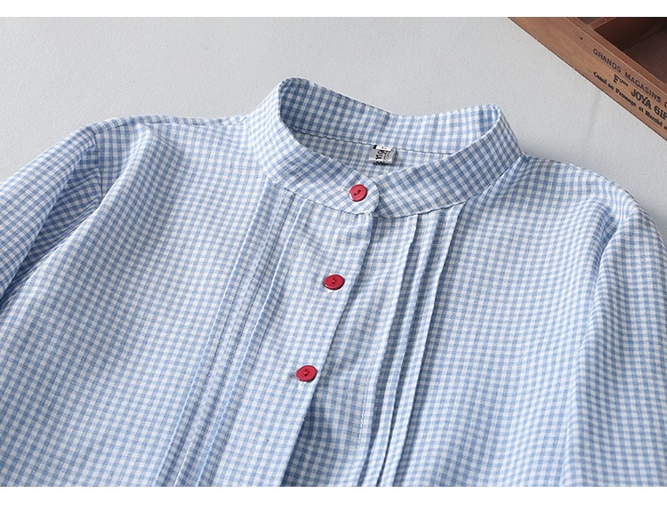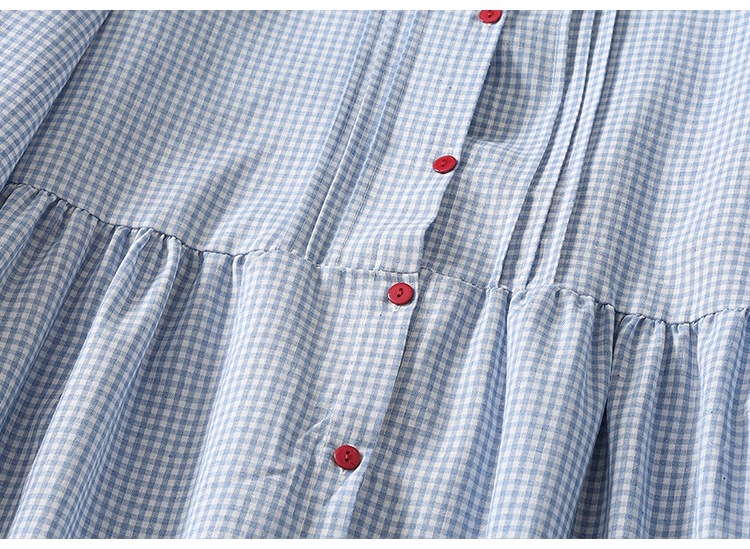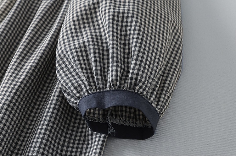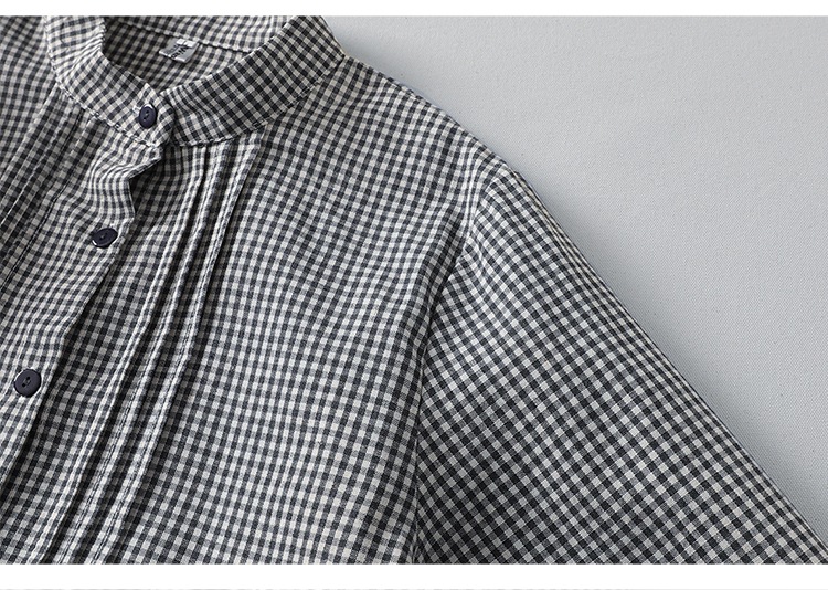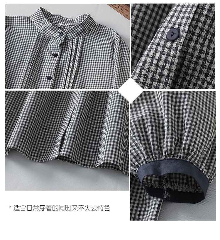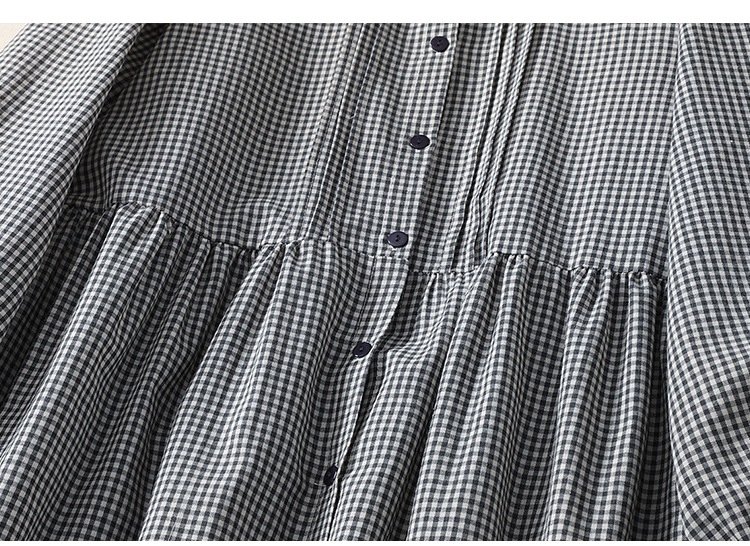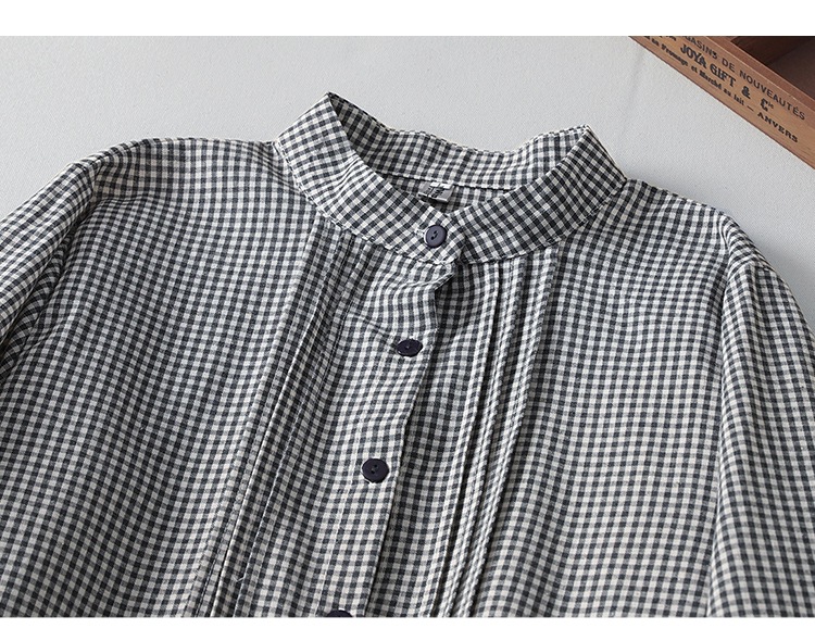 2025春季新款日系文艺格子长袖衬衫连衣裙女宽松显瘦立领棉麻长裙