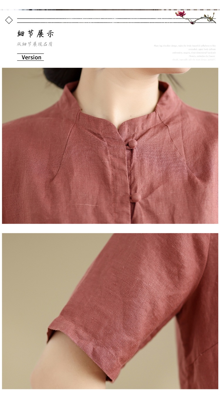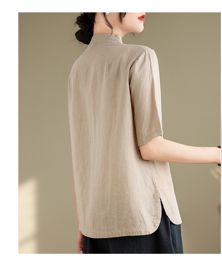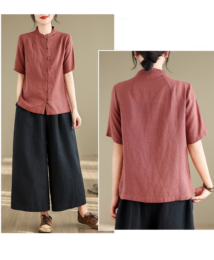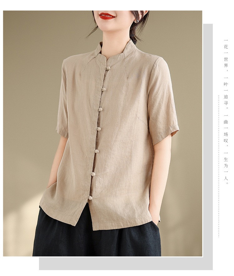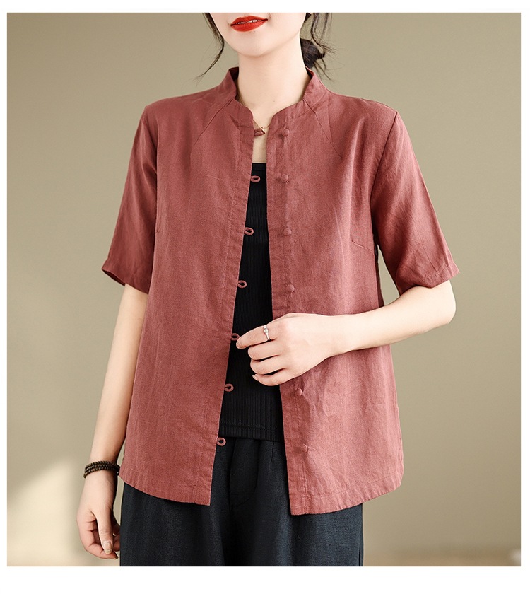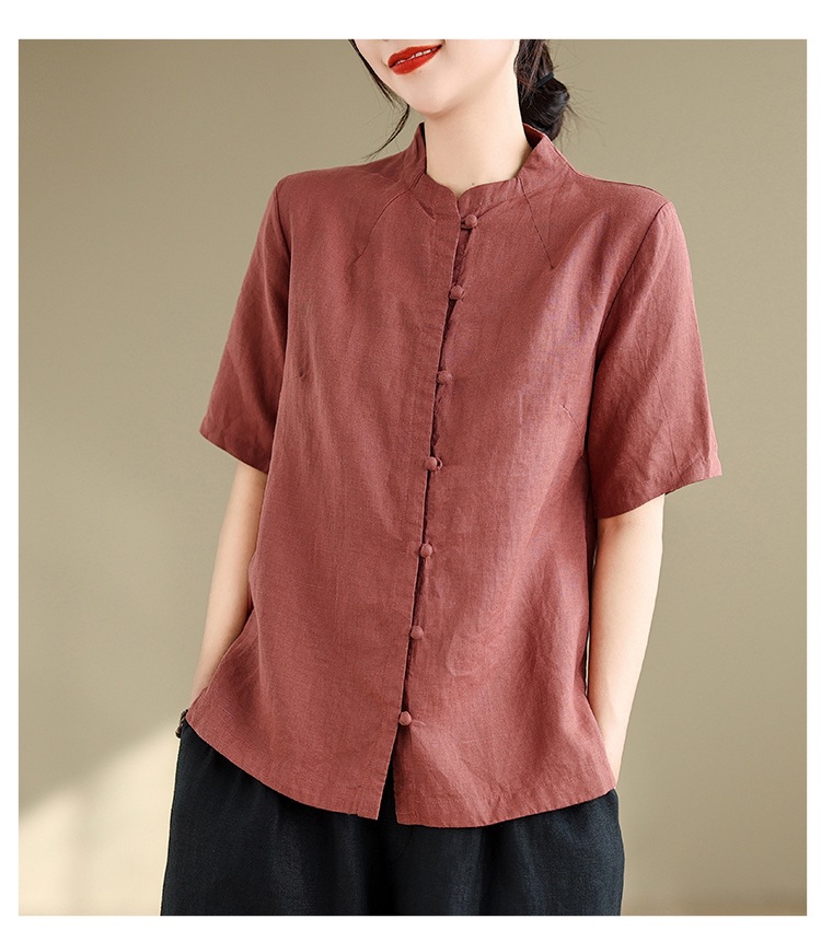 新中式复古禅意单排扣棉麻短袖衬衫女简约设计感小众盘扣开衫上衣