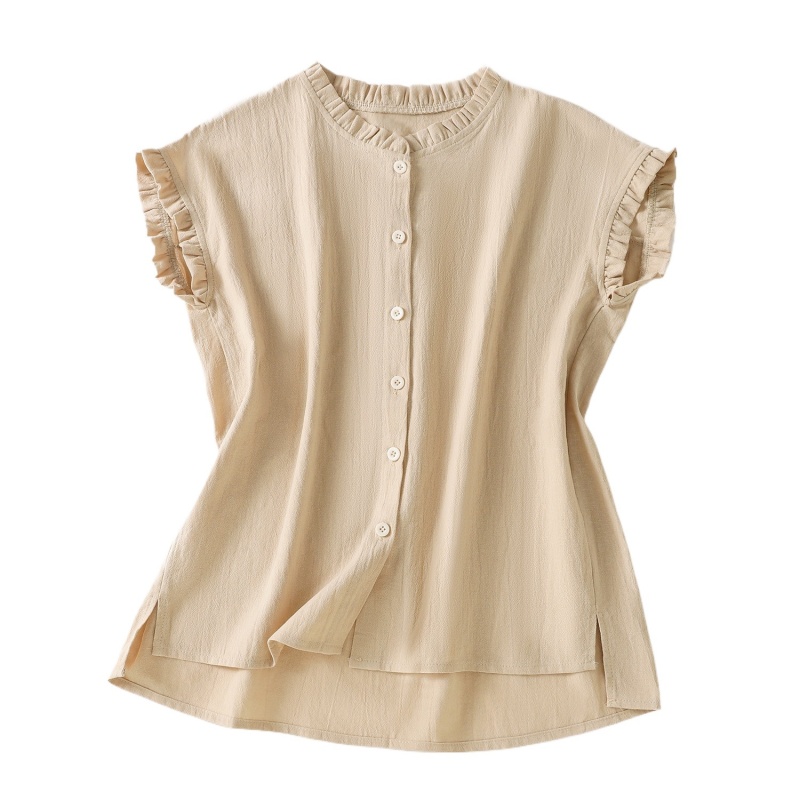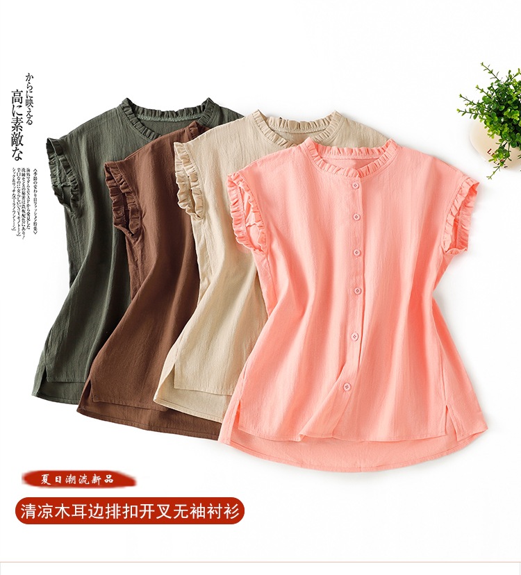 实拍现货 衬衫女文艺木耳领单排扣衬衣气质飞袖上衣夏