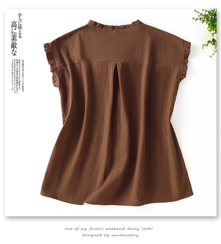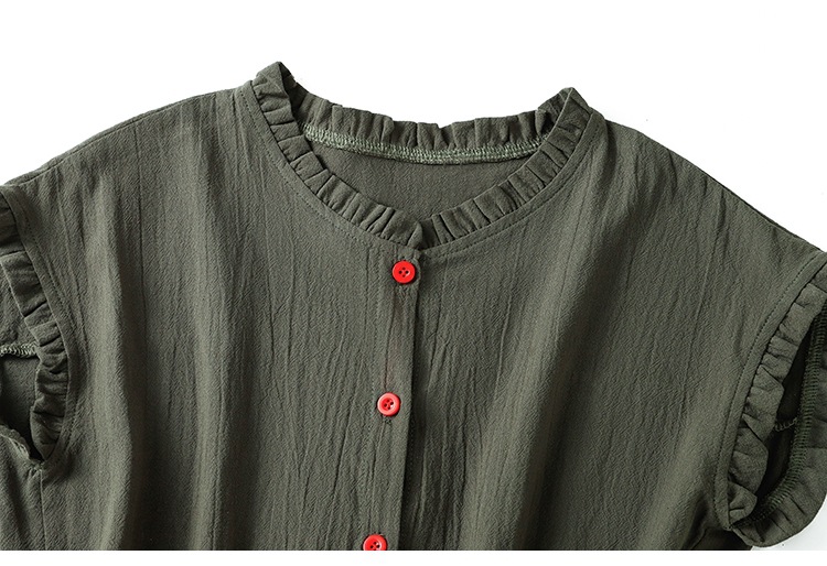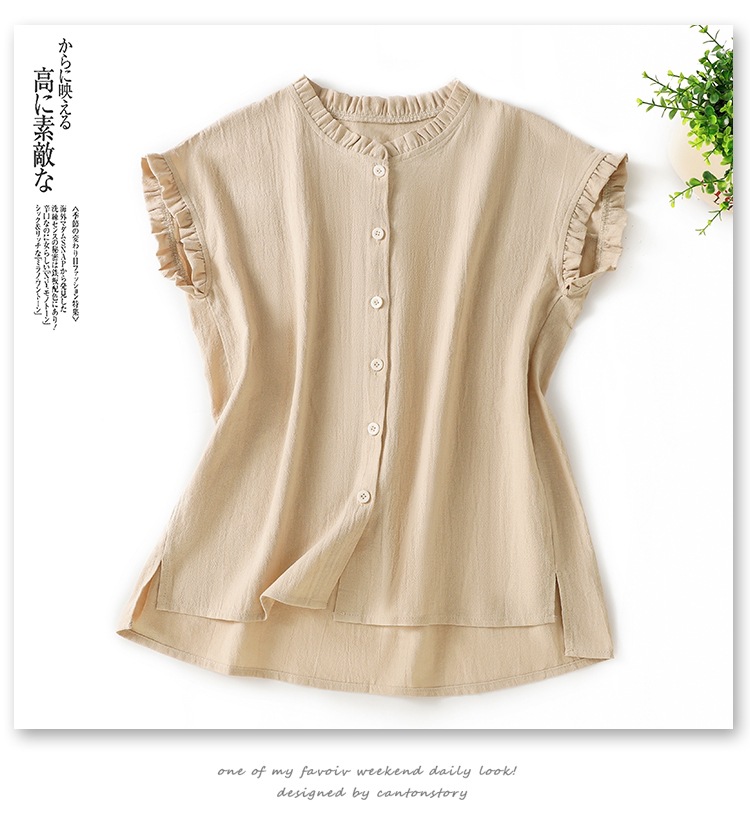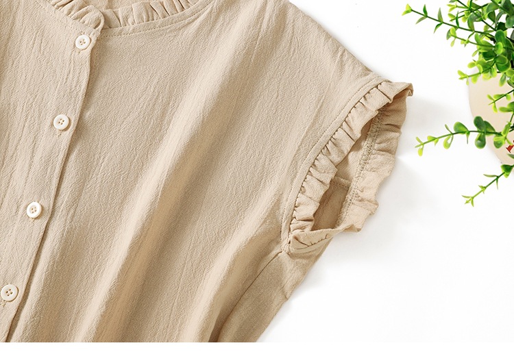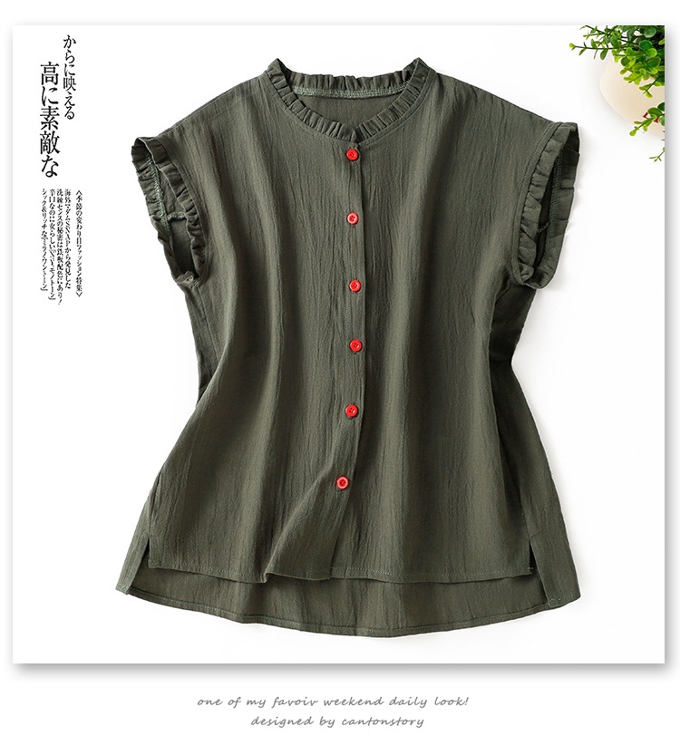 商品名称:实拍现货 衬衫女文艺木耳领单排扣衬衣气质飞袖上衣夏