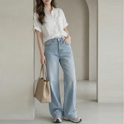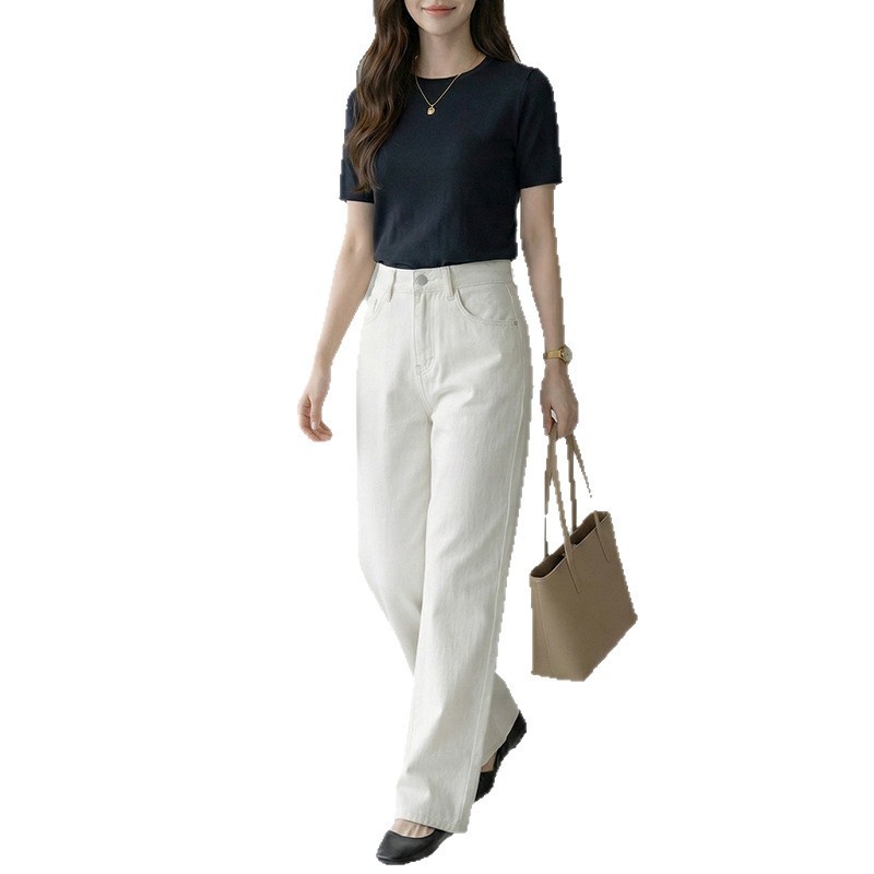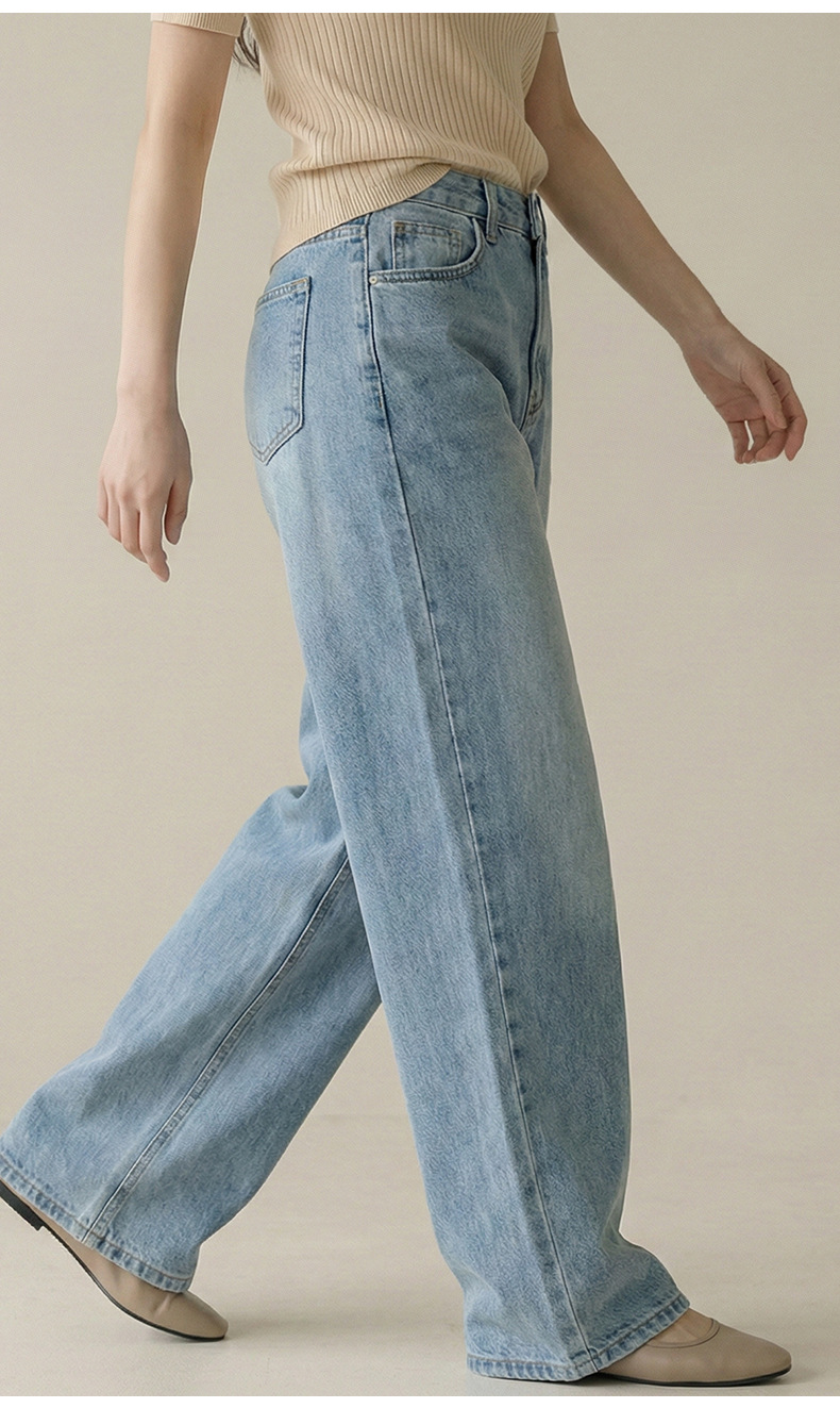 云长 全棉直筒牛仔裤女春季新款薄款休闲裤高腰显瘦长裤现货批发