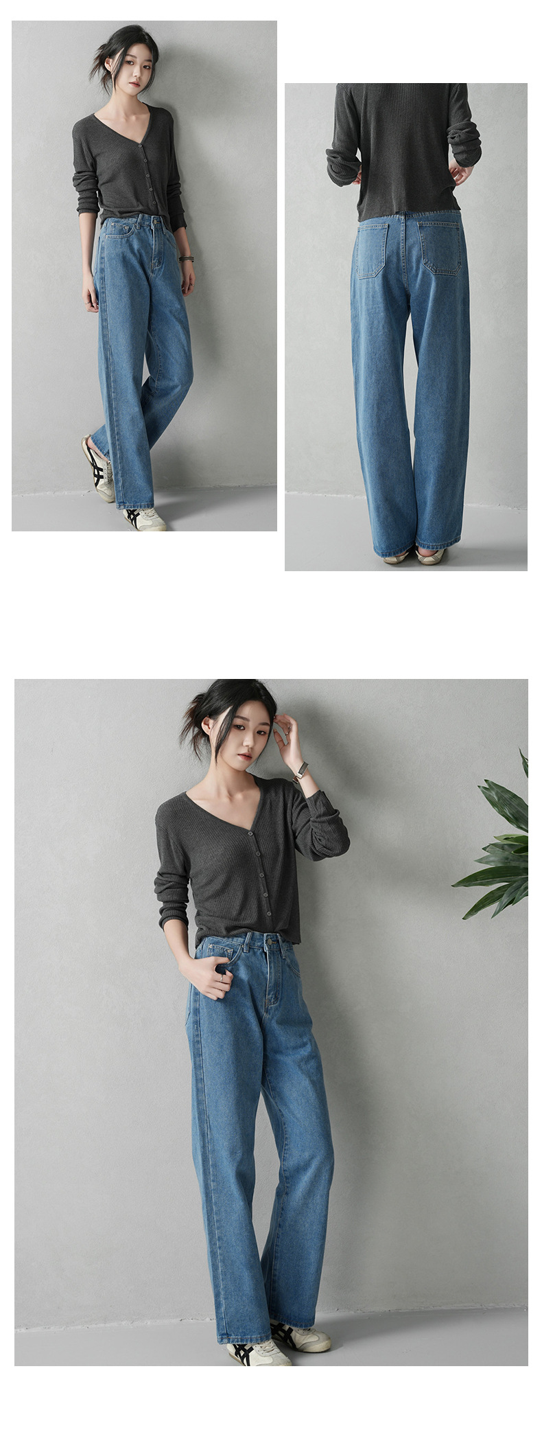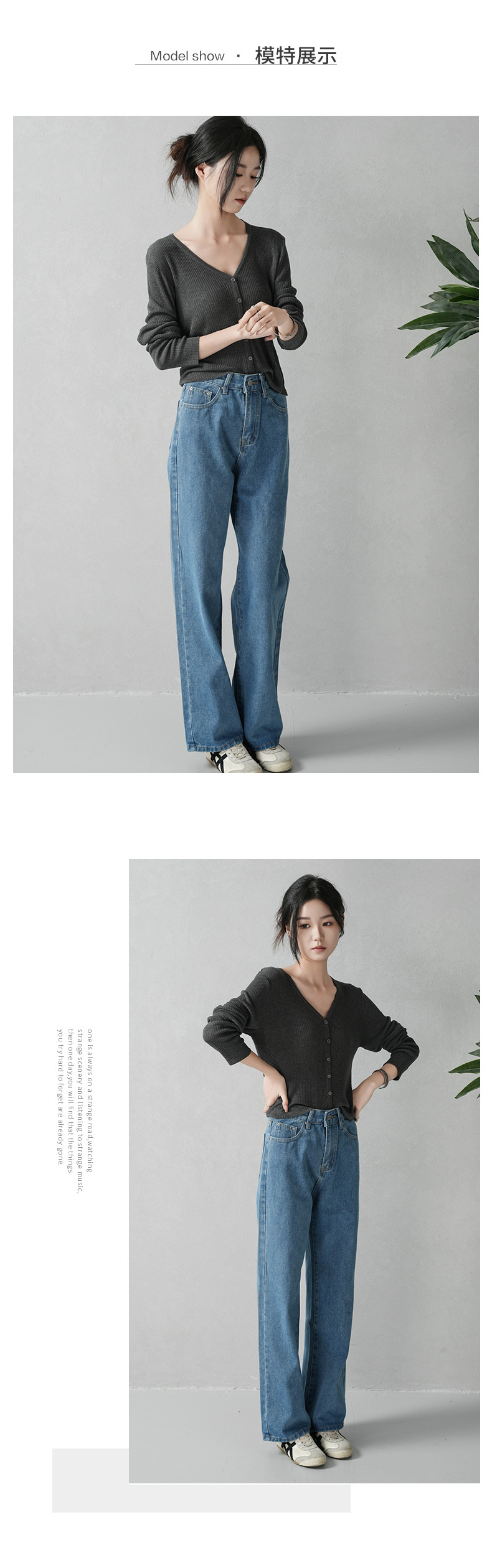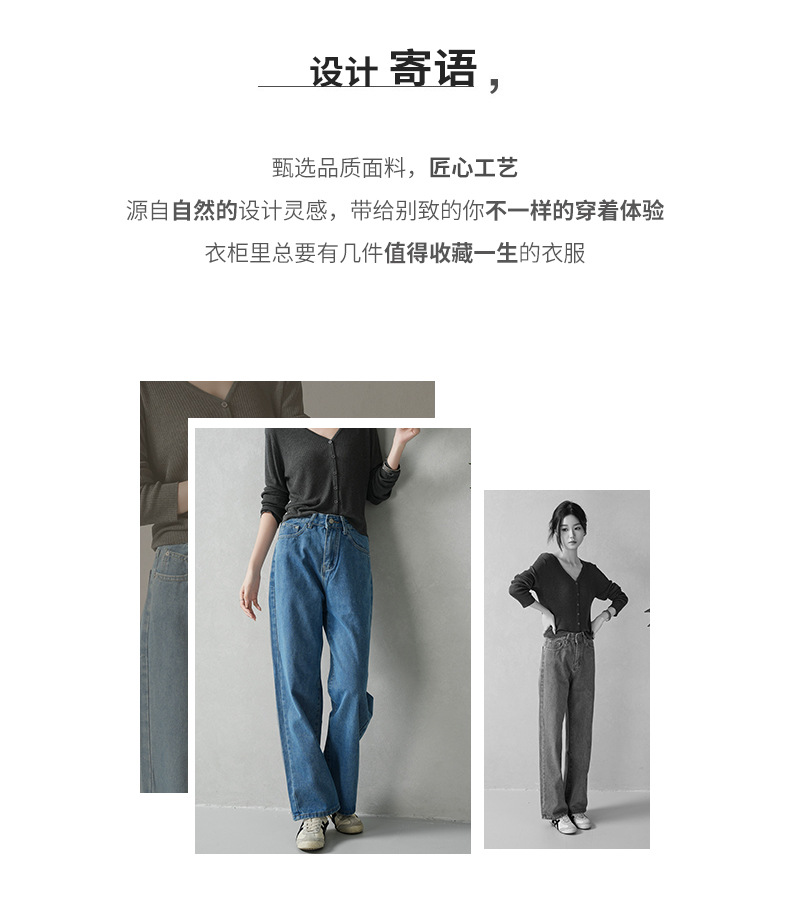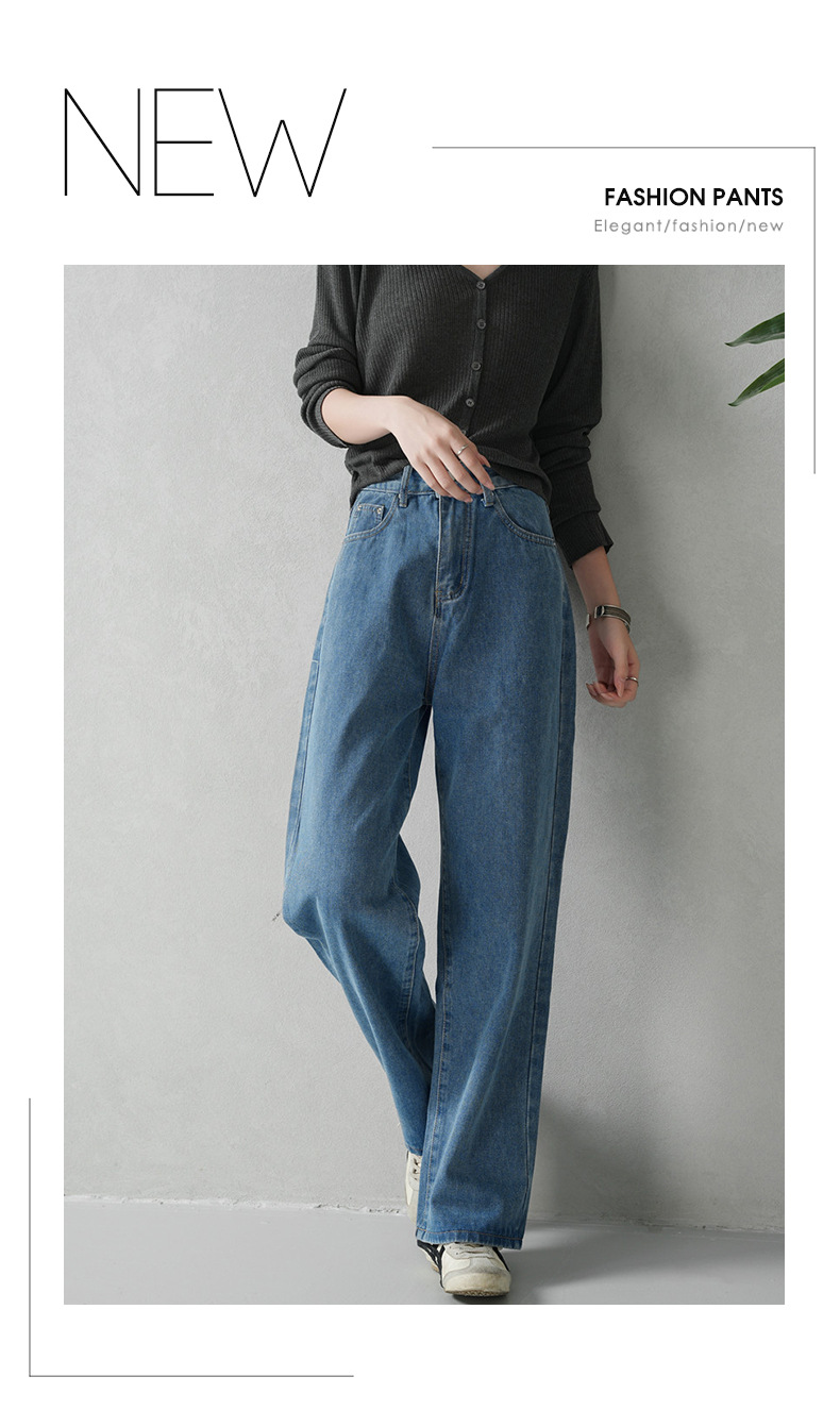 商品名称:云长 复古蓝女士牛仔裤春季新款港风怀旧长裤直筒休闲裤现货批发