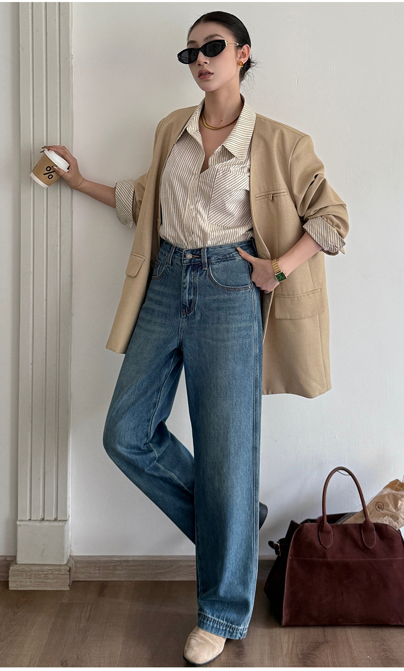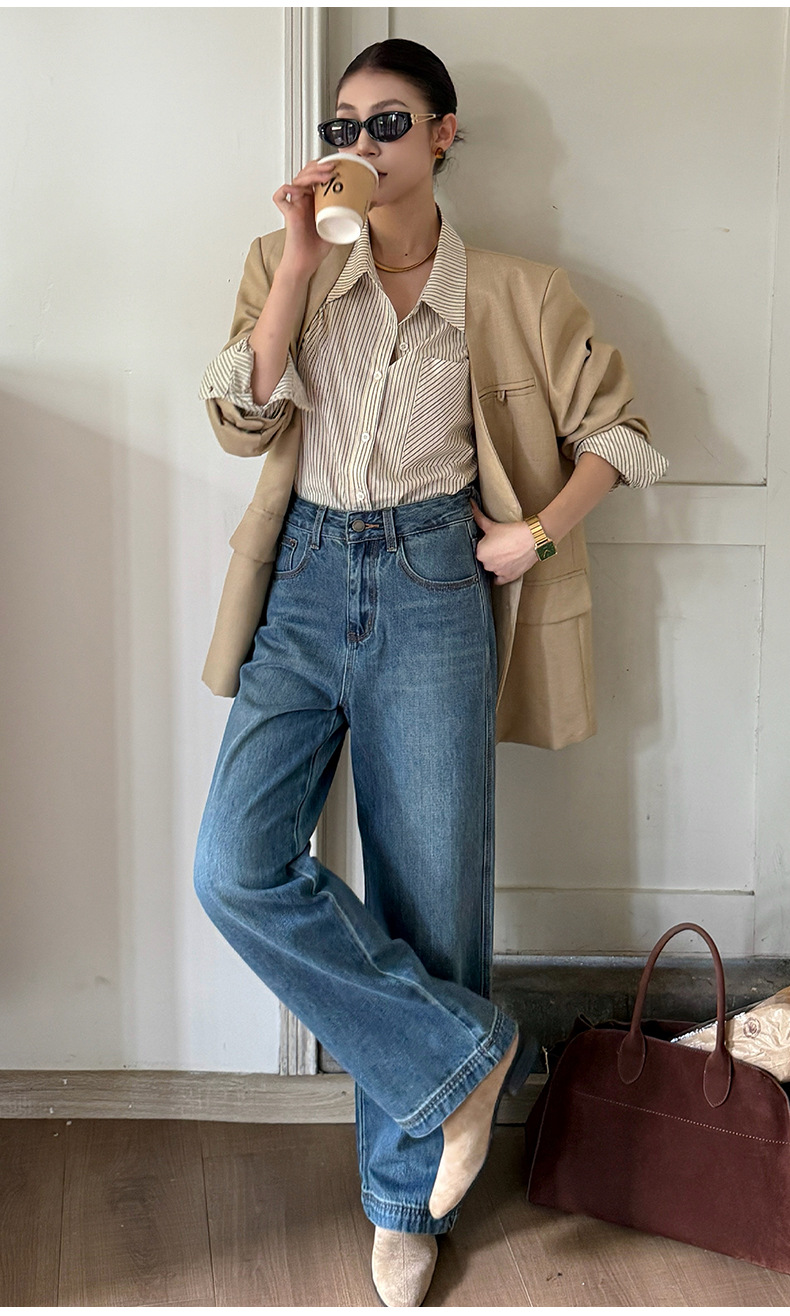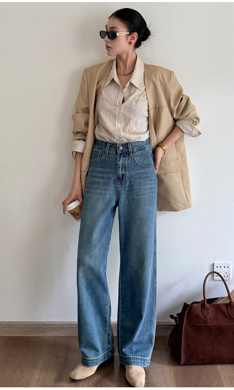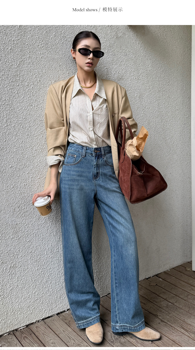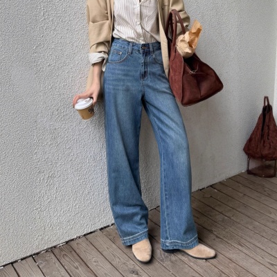 云长 复古个性春季牛仔裤女棉阔腿裤新款垂感长裤现货代发 K0062