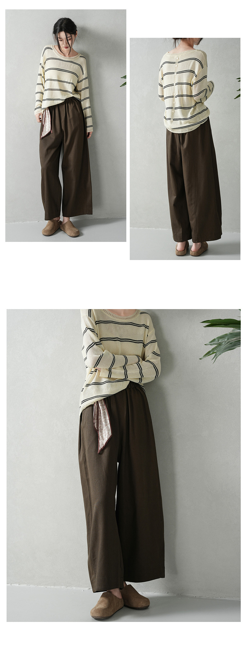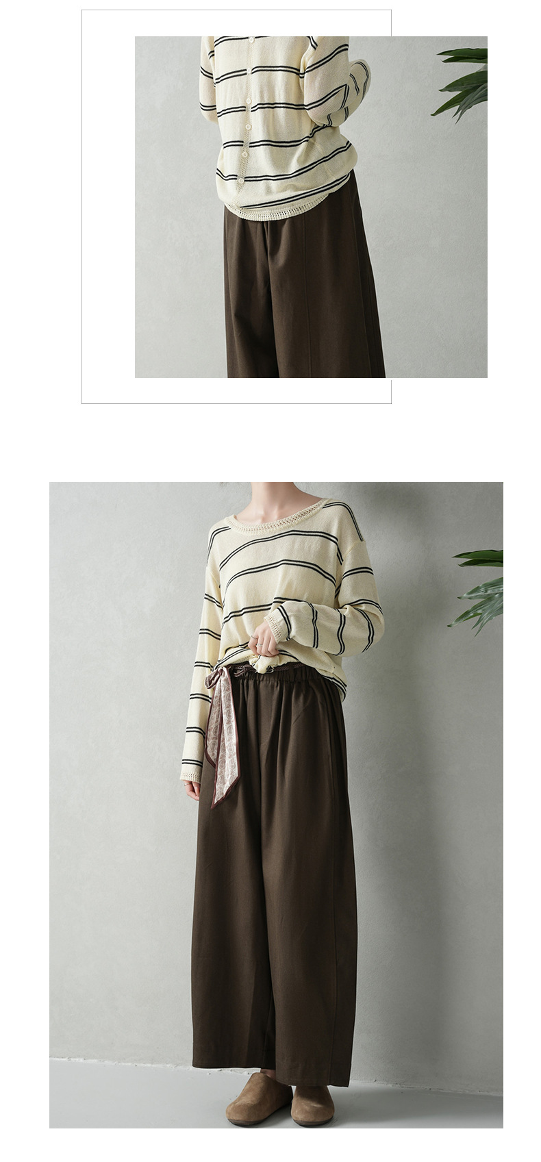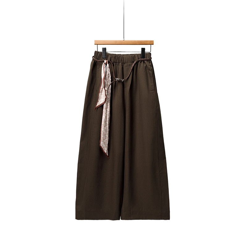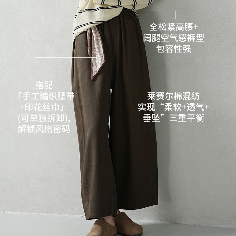 云长 系带莱赛尔棉阔腿长裤春季新款女生加厚休闲裤棕色裤子现货