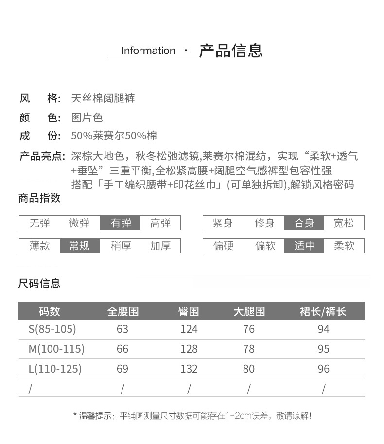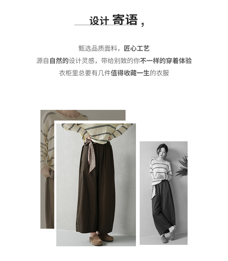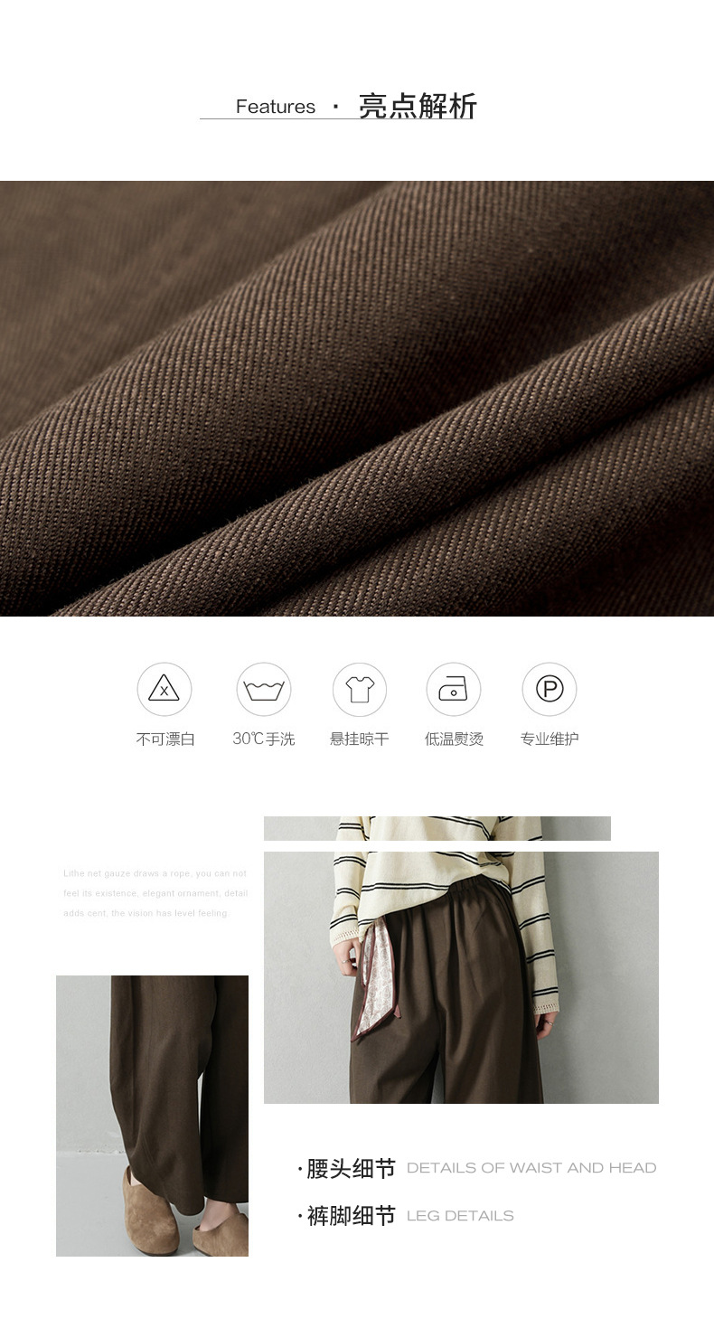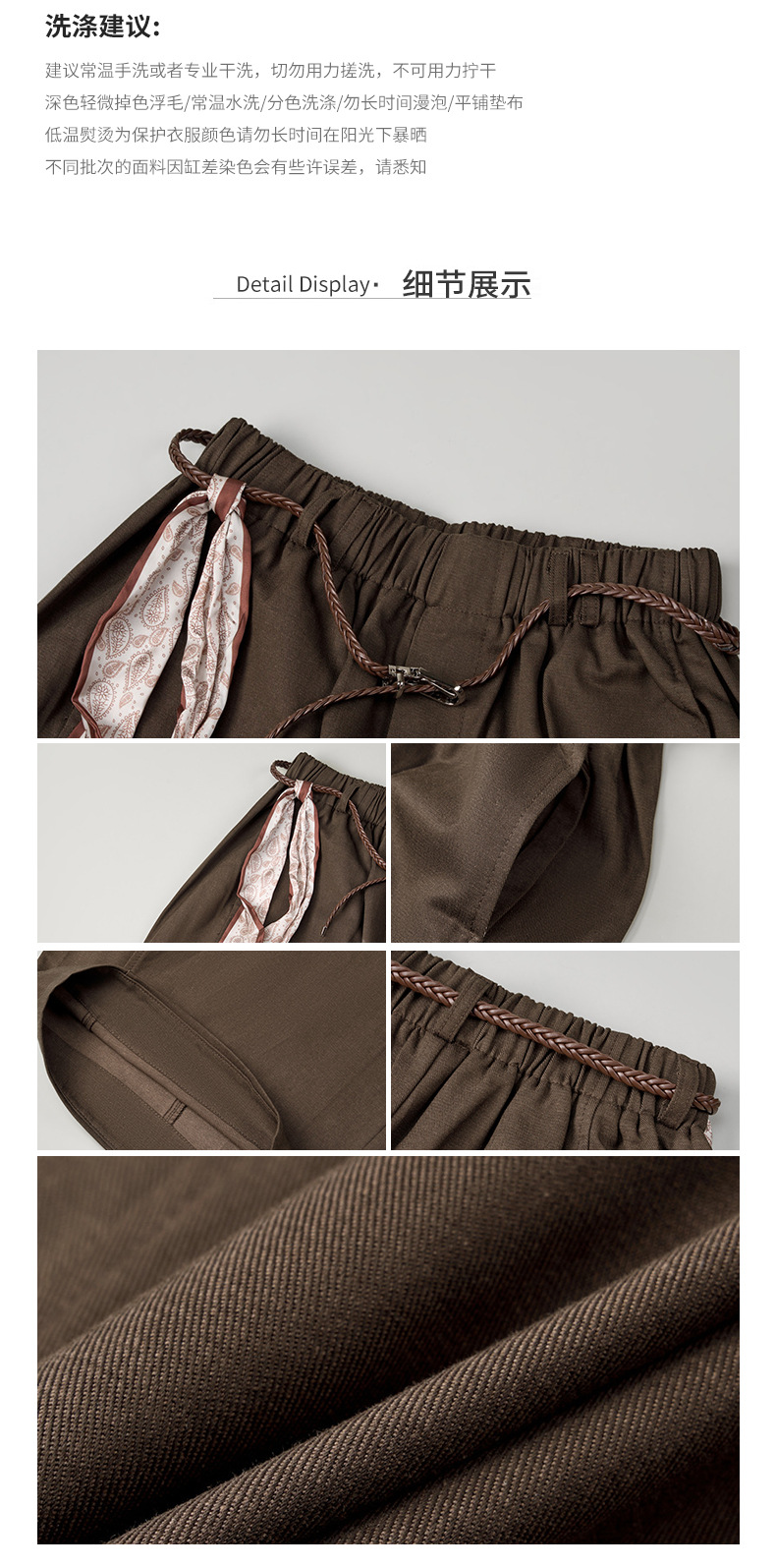 商品名称:云长 系带莱赛尔棉阔腿长裤春季新款女生加厚休闲裤棕色裤子现货