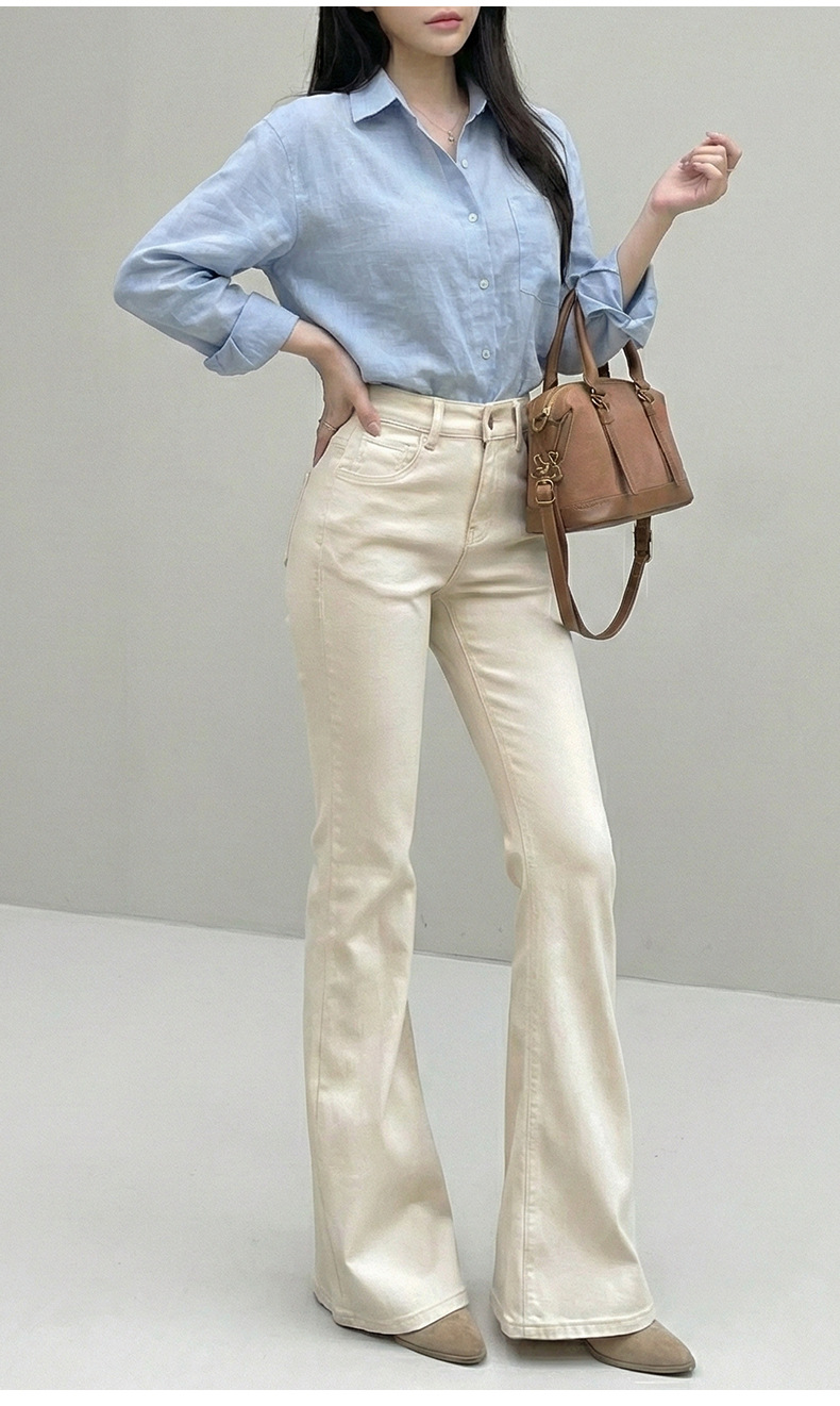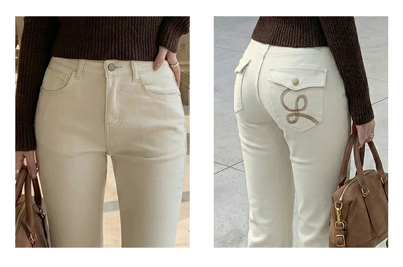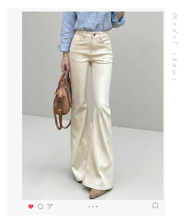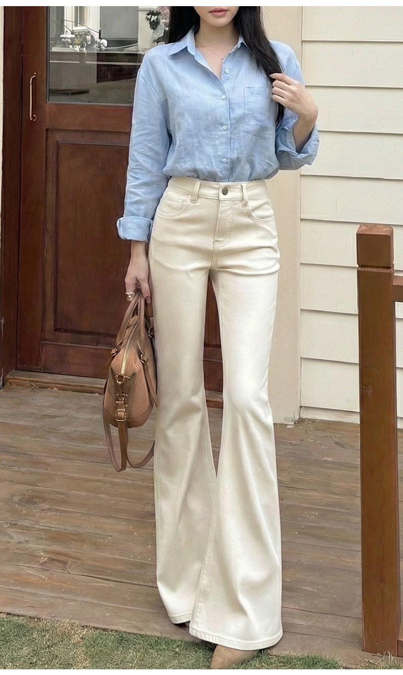 云长 天丝莱赛尔棉牛仔裤女休闲刺绣喇叭裤春季新款显瘦浅色长裤