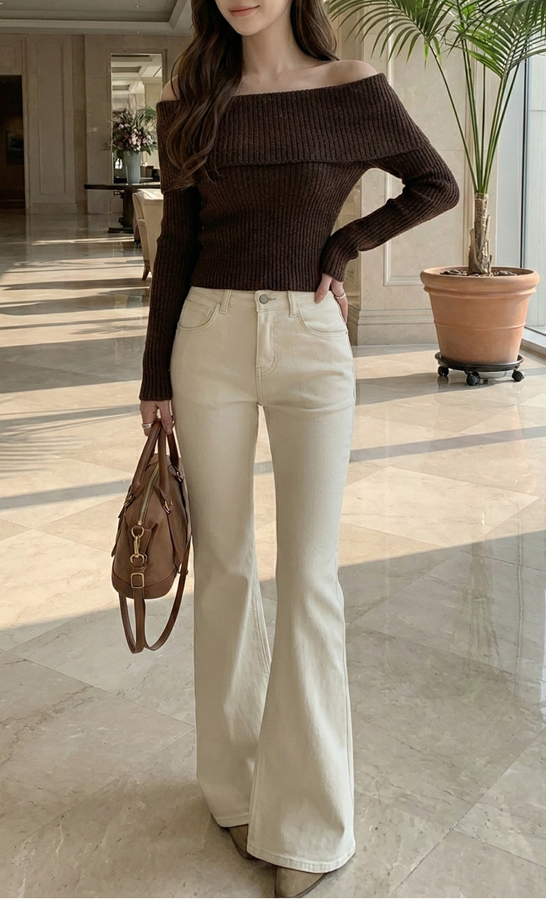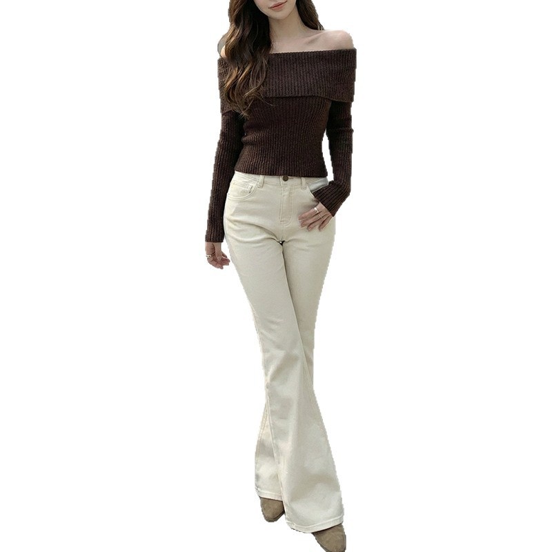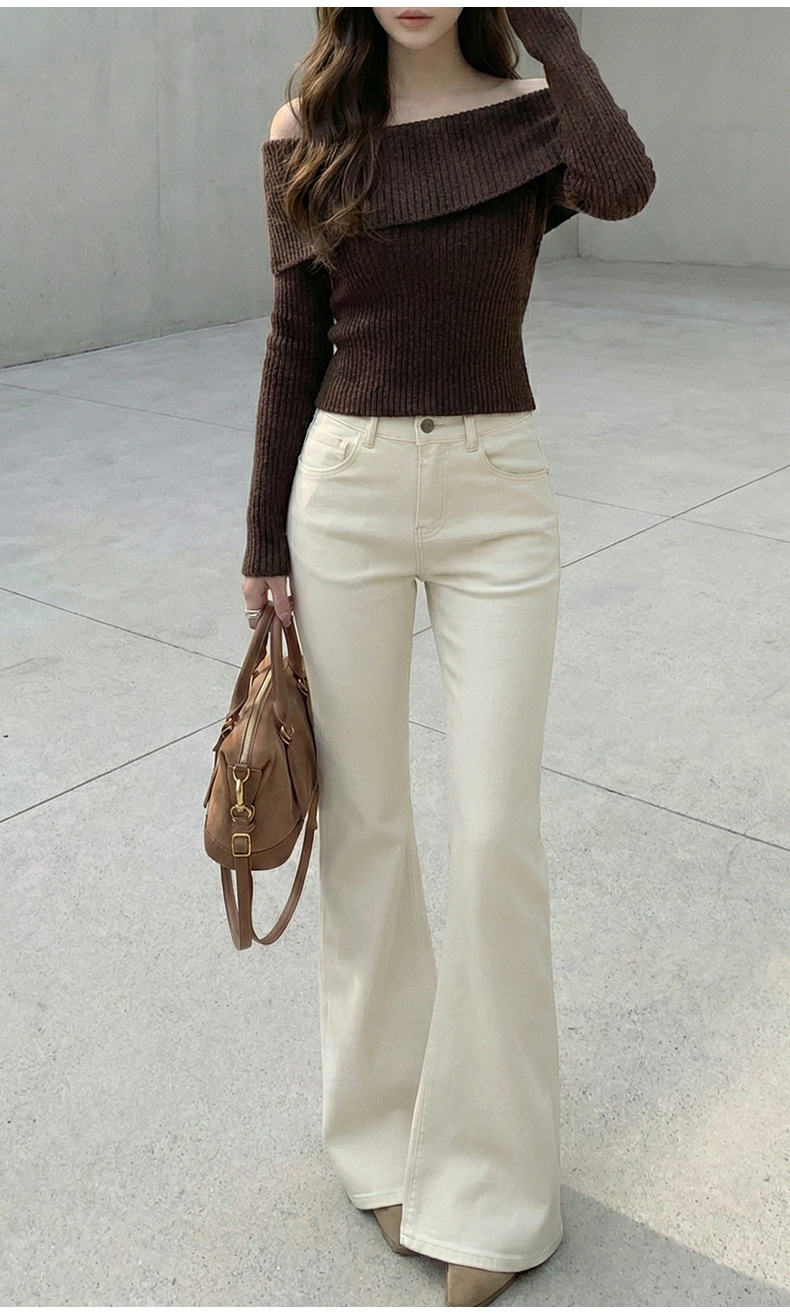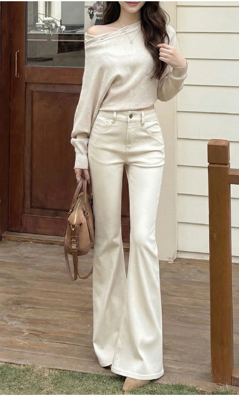 云长 天丝莱赛尔棉牛仔裤女休闲刺绣喇叭裤春季新款显瘦浅色长裤