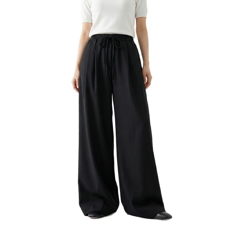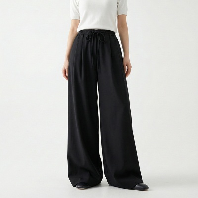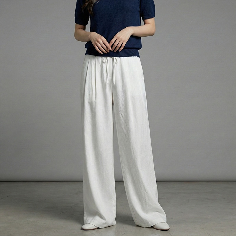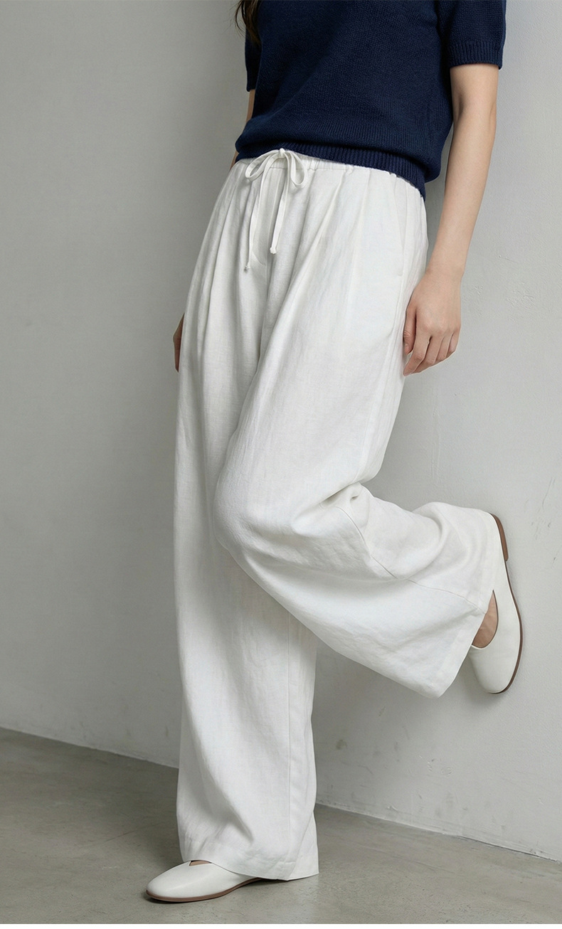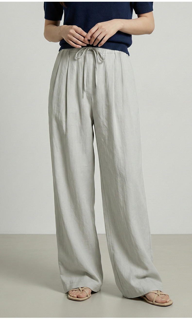 云长 春夏薄款系带阔腿裤女仿亚麻空气感休闲裤日系拖地长裤批发