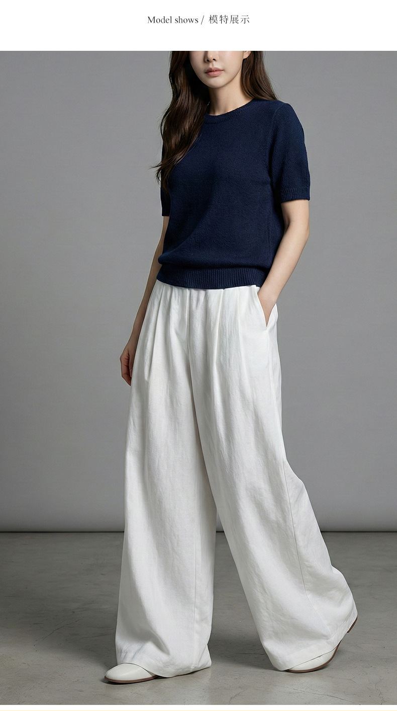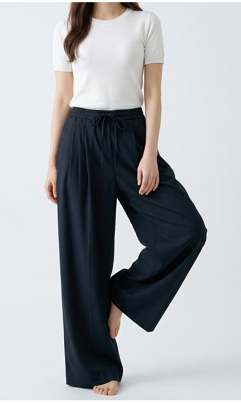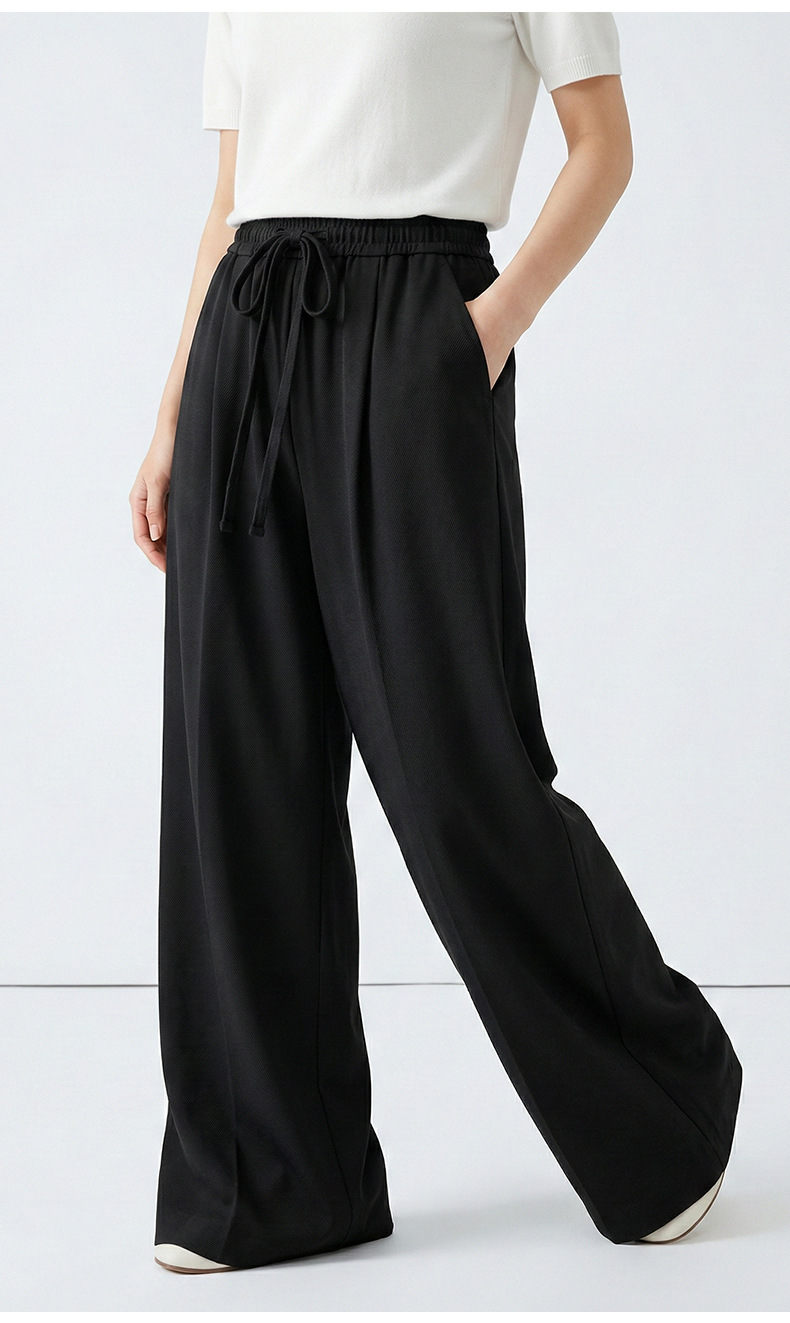 云长 春夏薄款系带阔腿裤女仿亚麻空气感休闲裤日系拖地长裤批发