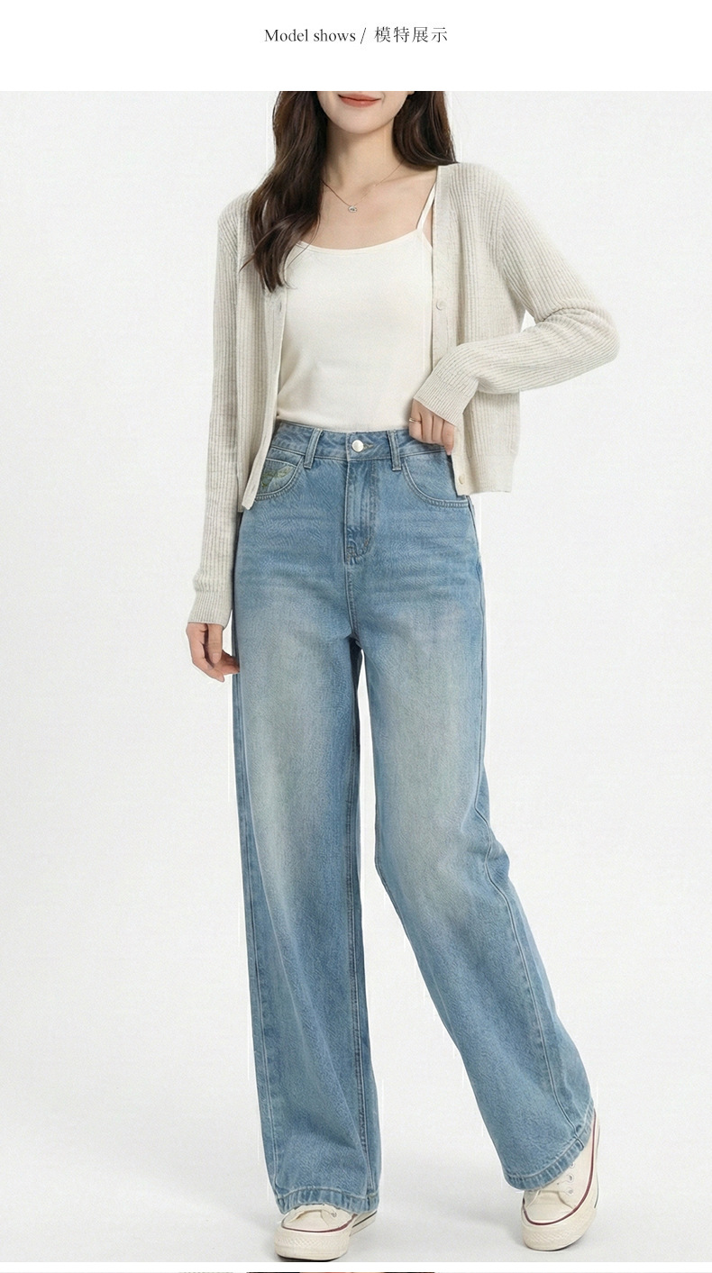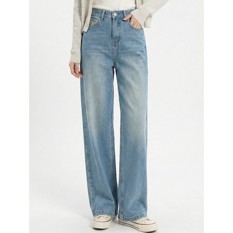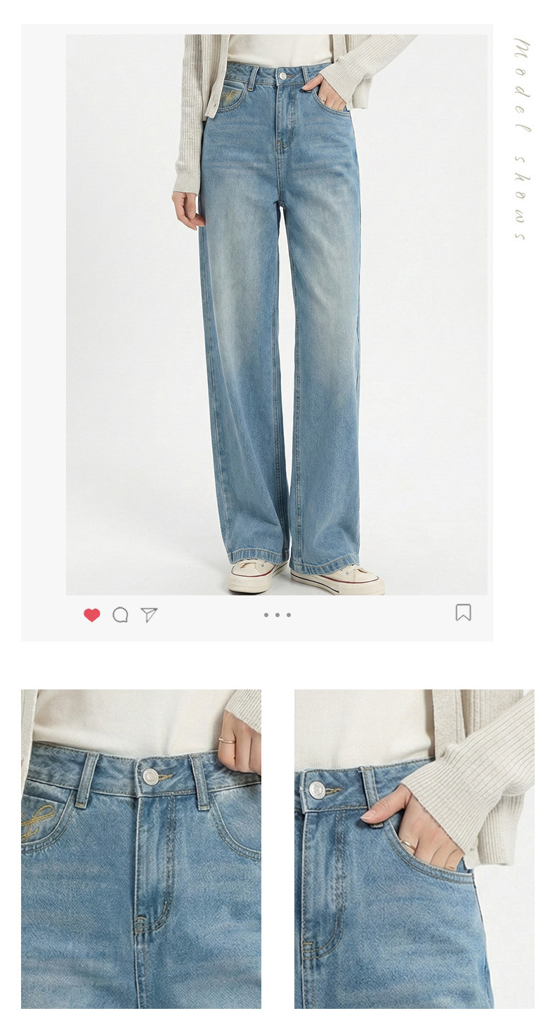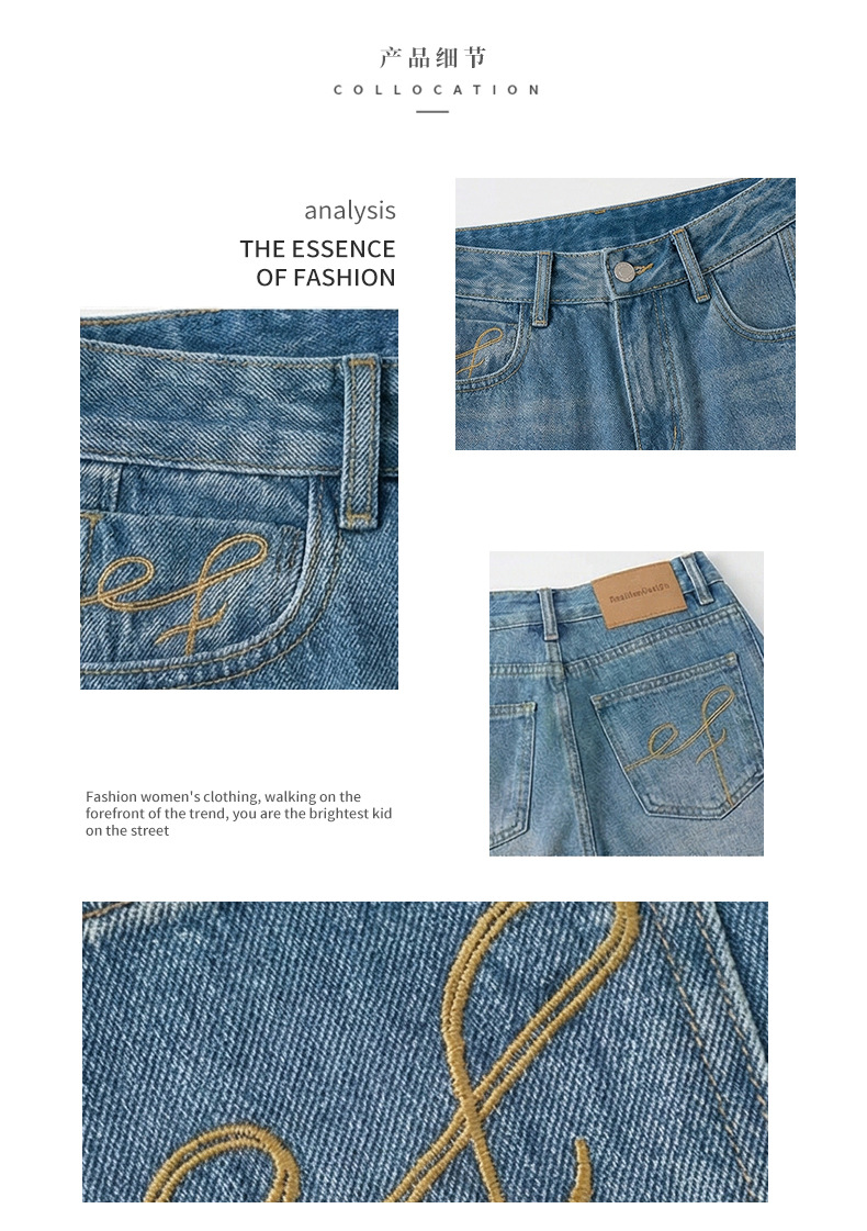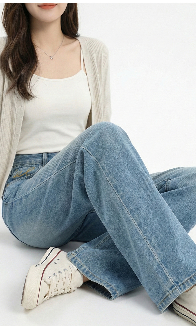 云长 港风直筒刺绣牛仔裤女2026春季新款宽松休闲显瘦裤子现货批