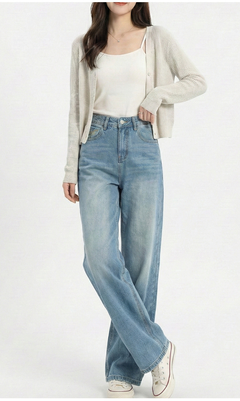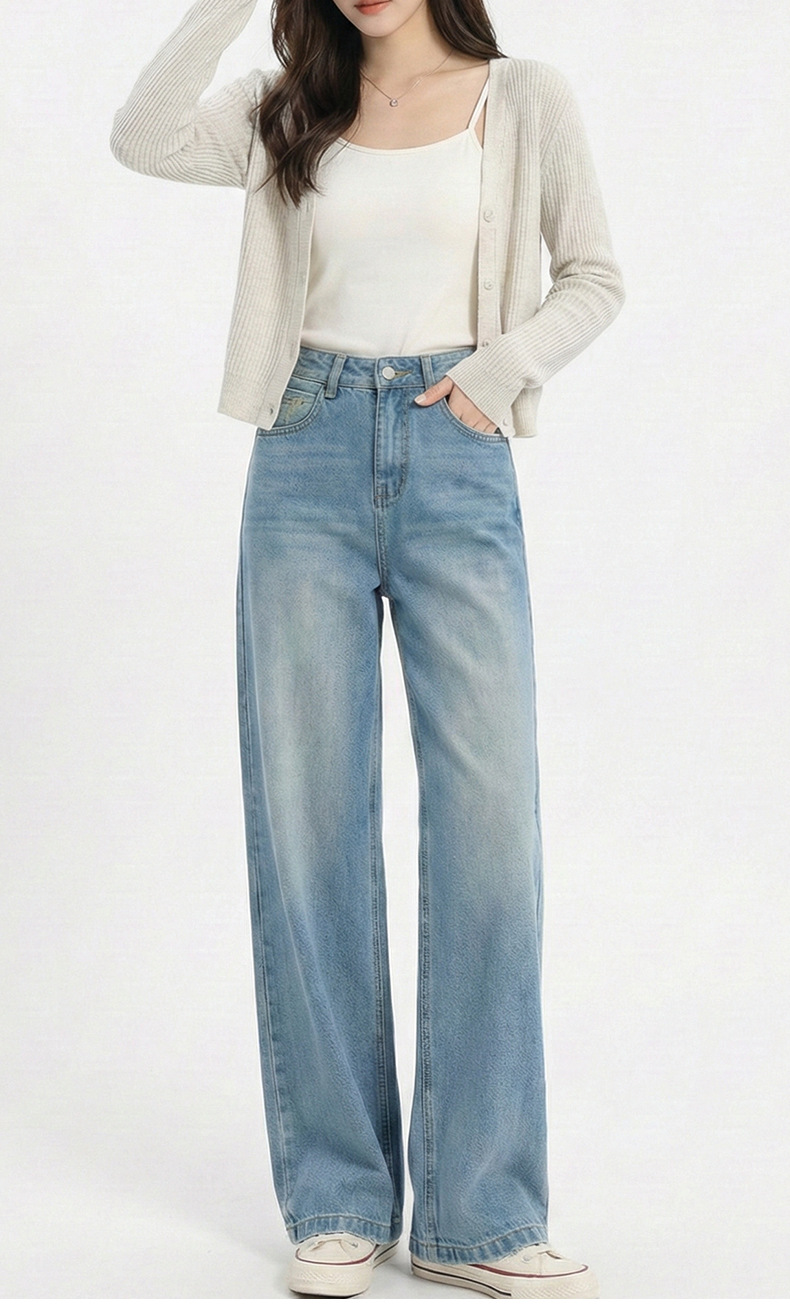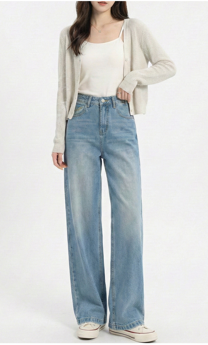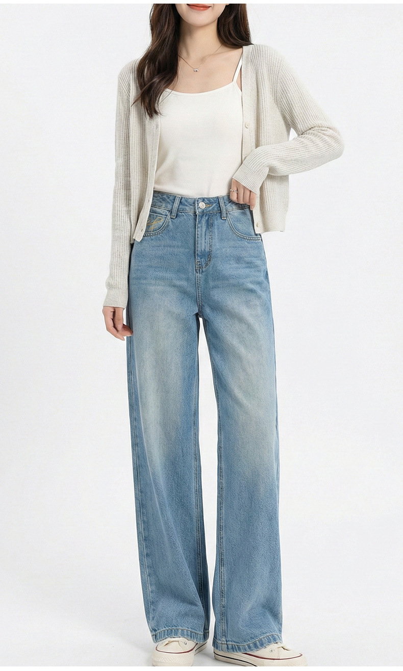 云长 港风直筒刺绣牛仔裤女2026春季新款宽松休闲显瘦裤子现货批