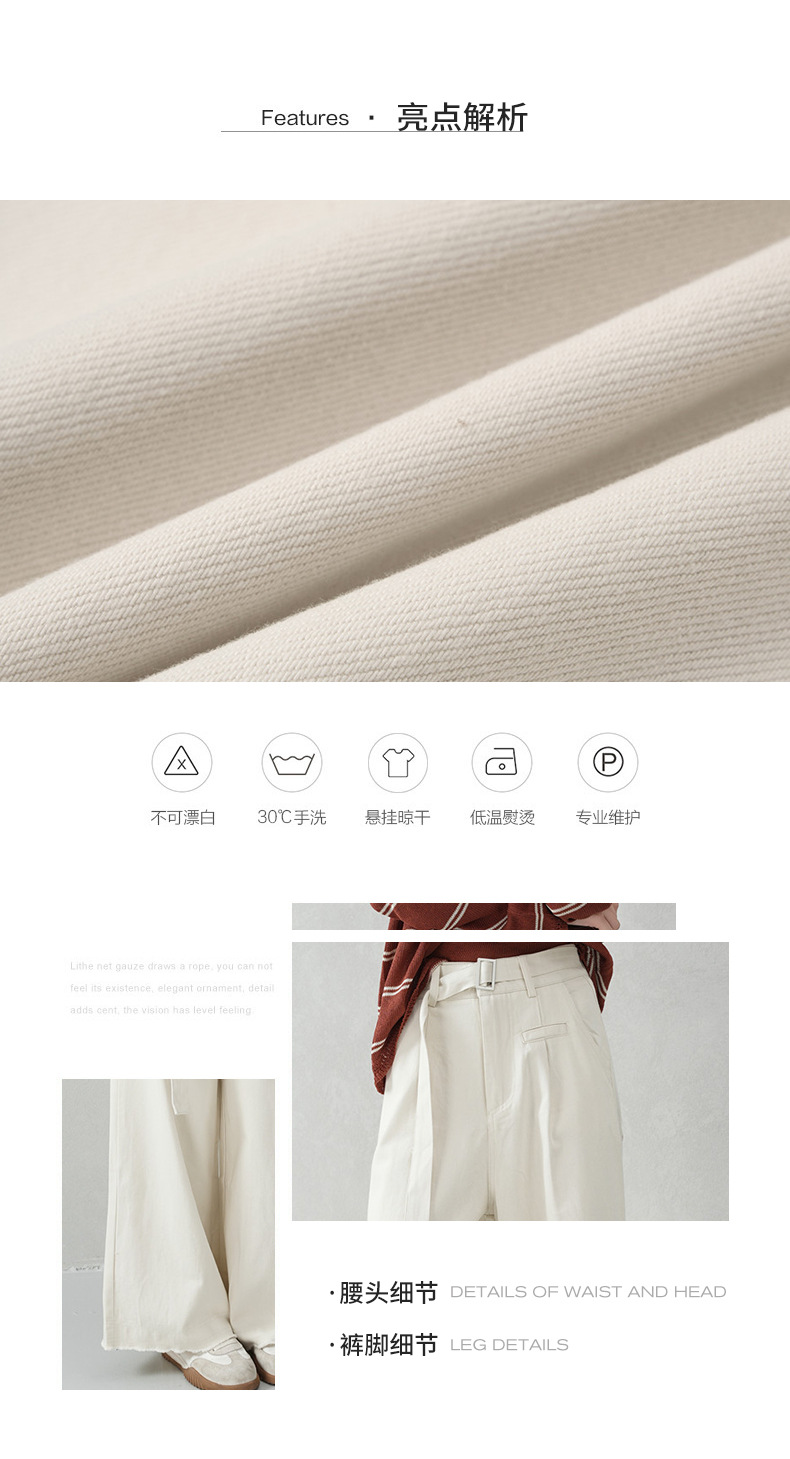 商品名称:云长 莱赛尔棉米白色阔腿裤春季新款女生显瘦裤子垂感长裤现货批