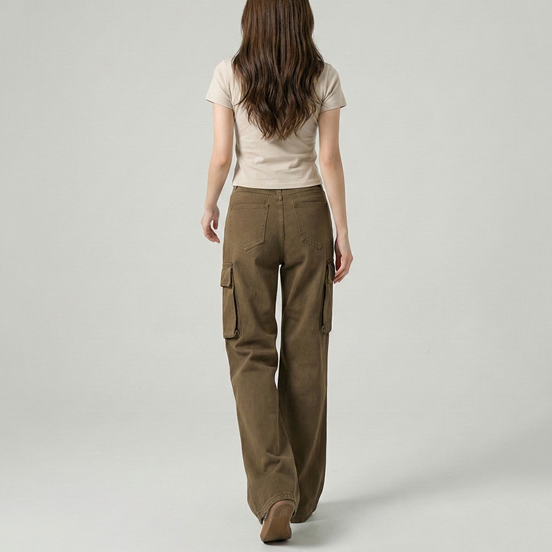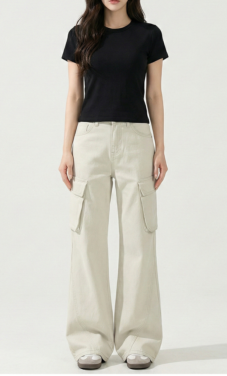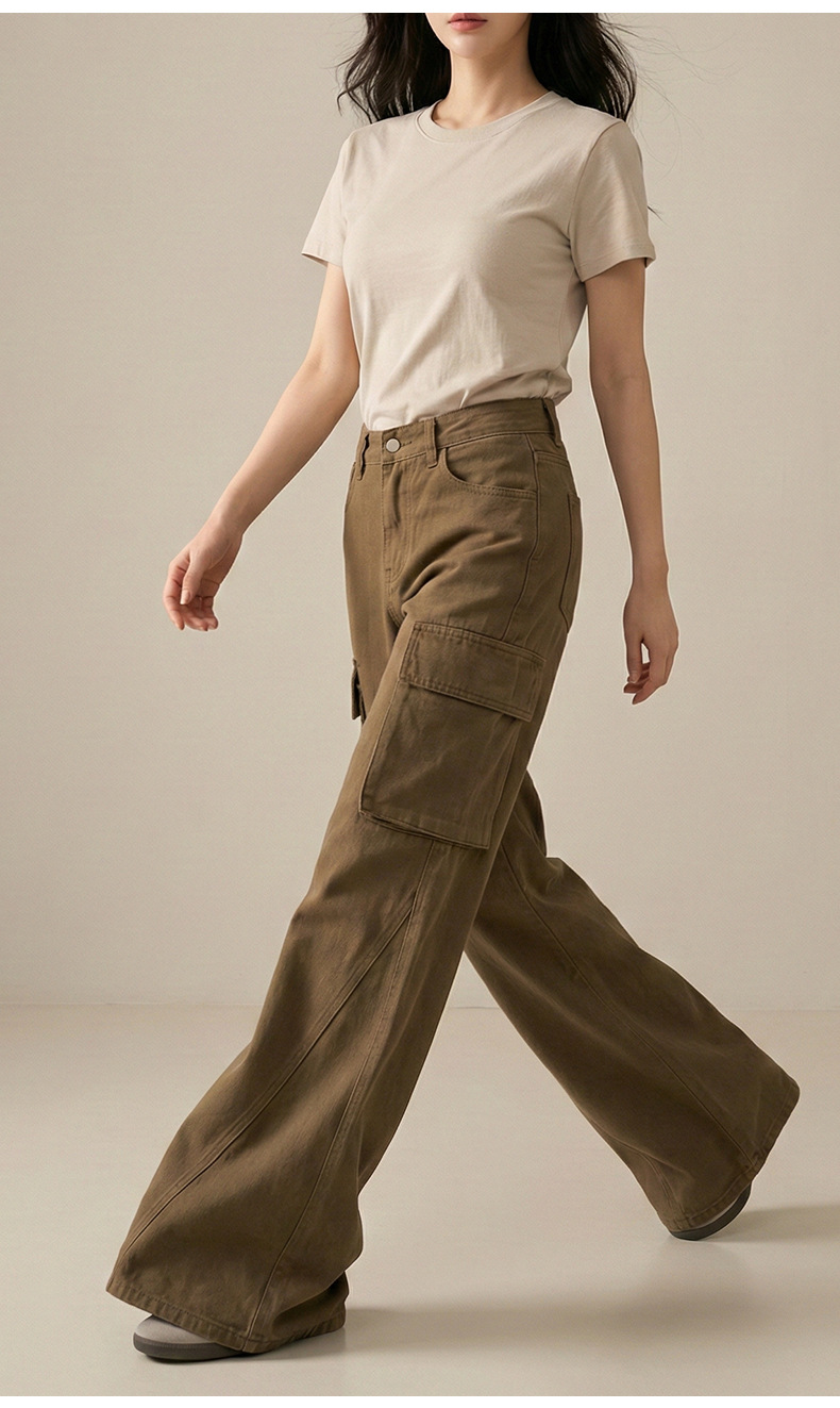 云长 全棉阔腿工装裤女春季新款潮流时尚微喇裤日系休闲裤现货批