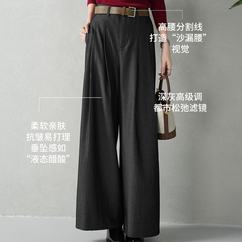 云长 通勤风女士西装阔腿裤春季新款雾面毛呢感长裤御姐直筒裤子
