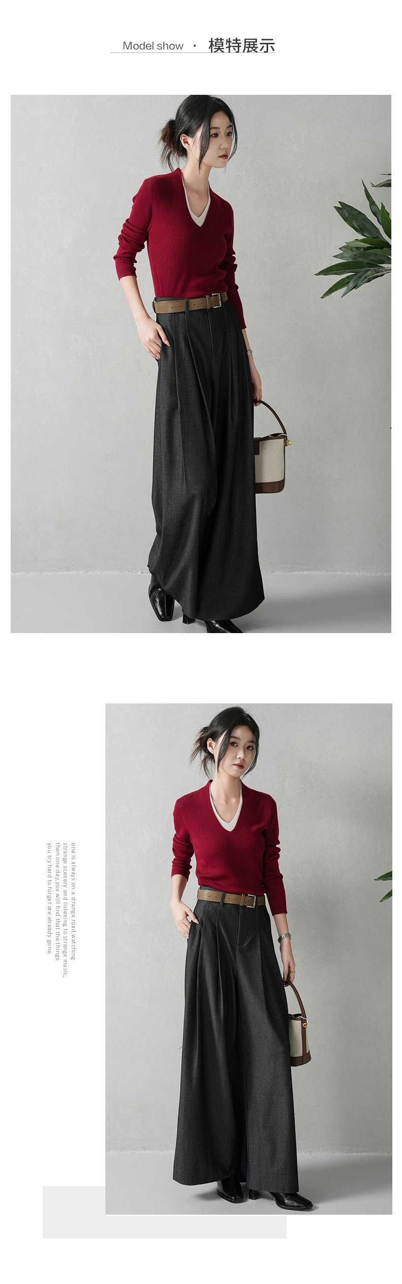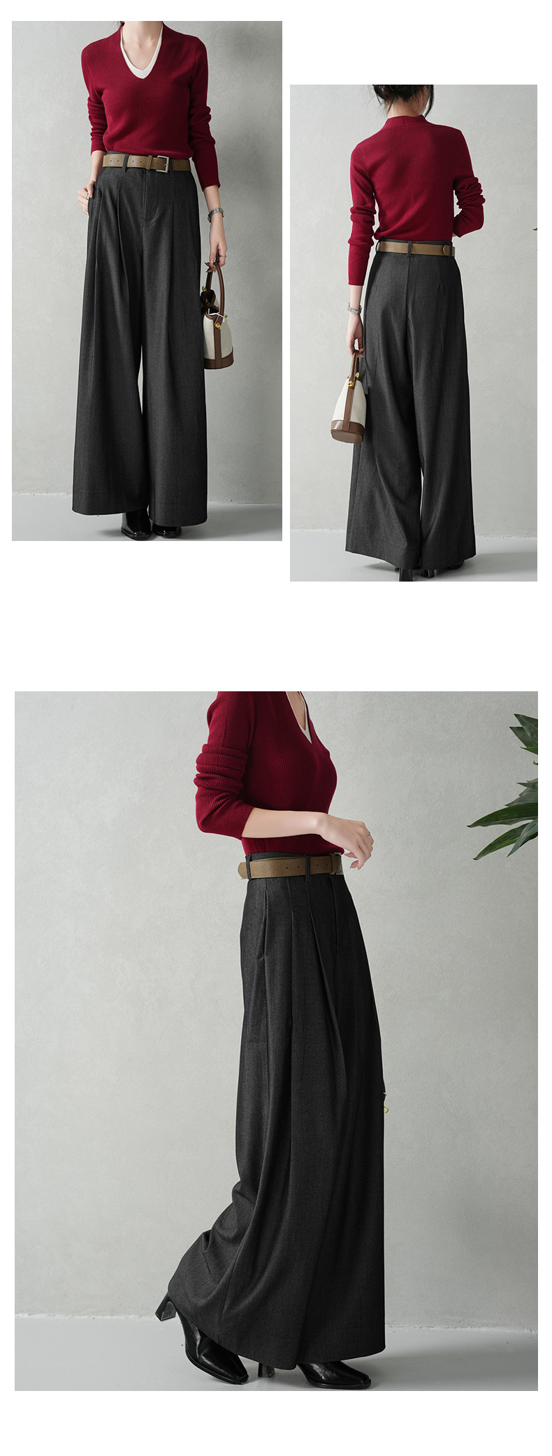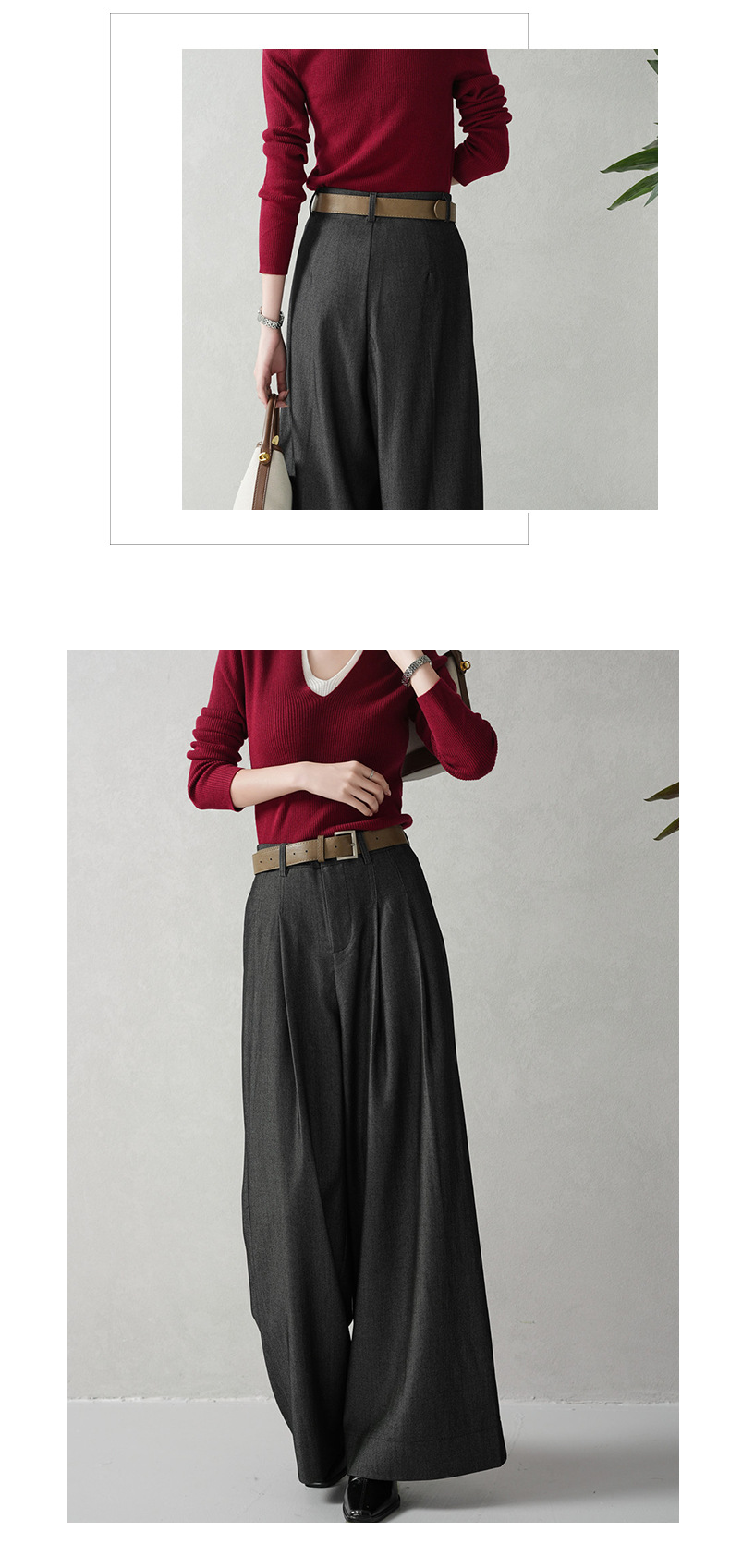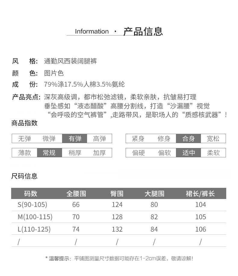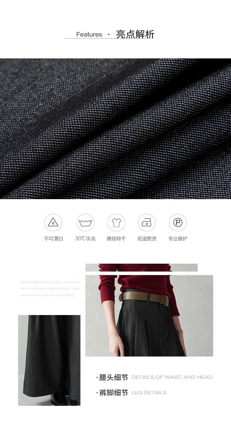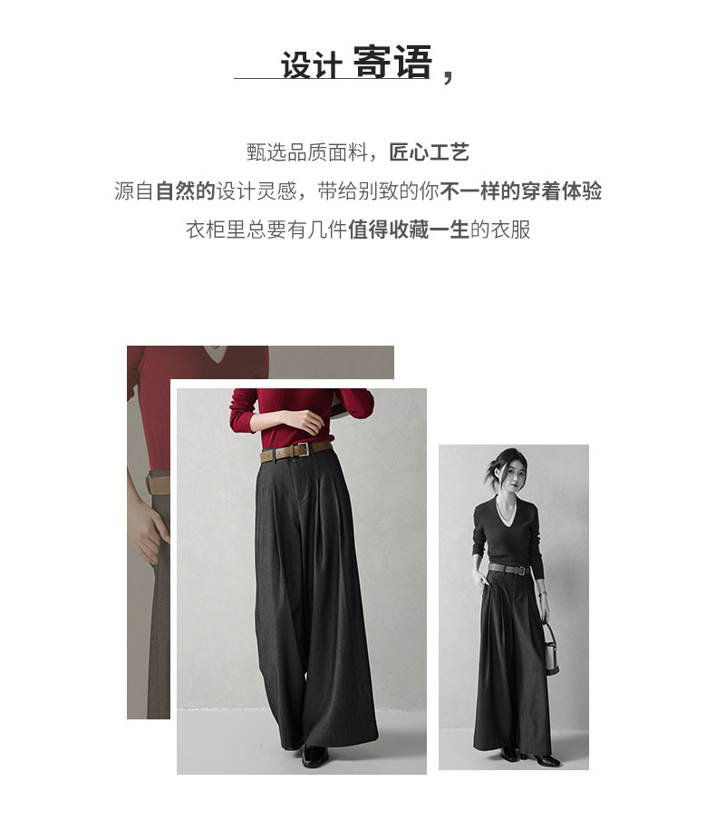 商品名称:云长 通勤风女士西装阔腿裤春季新款雾面毛呢感长裤御姐直筒裤子