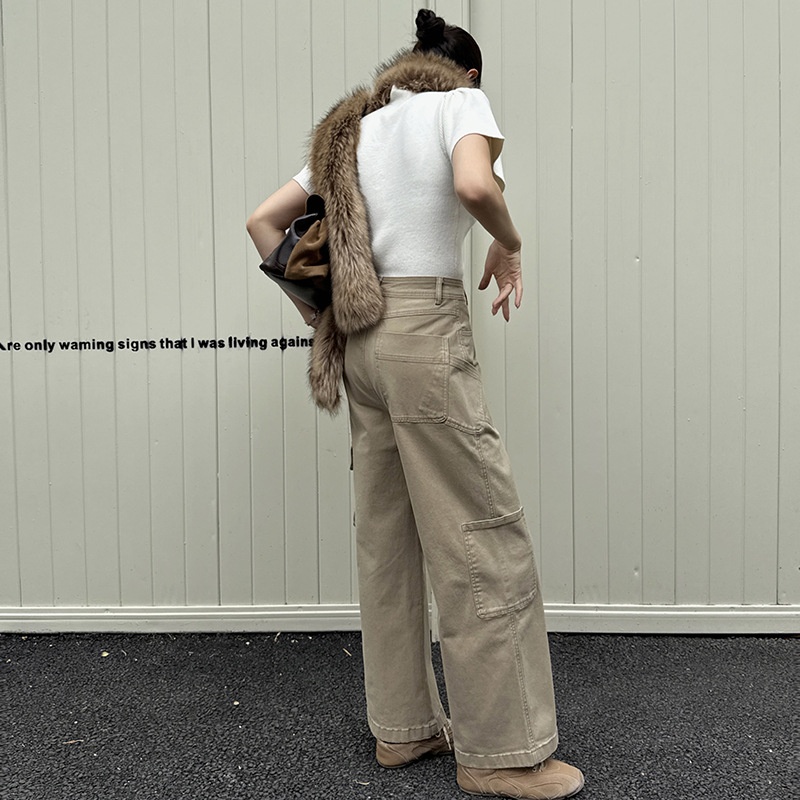 云长 卡其工装裤女冬季新款日系高腰显瘦长裤阔腿直筒休闲裤K0172