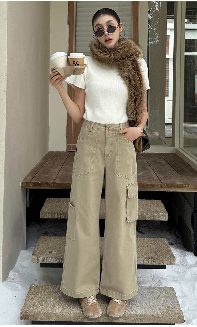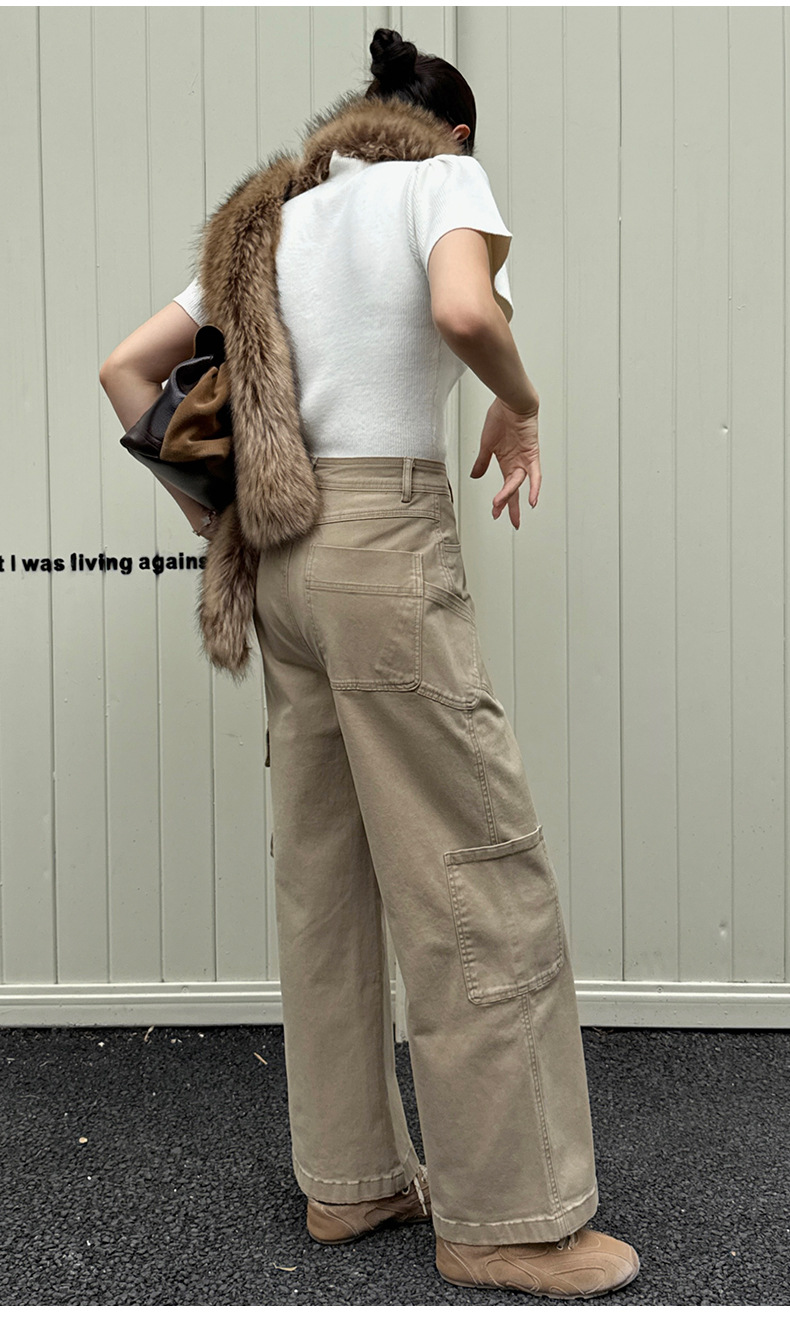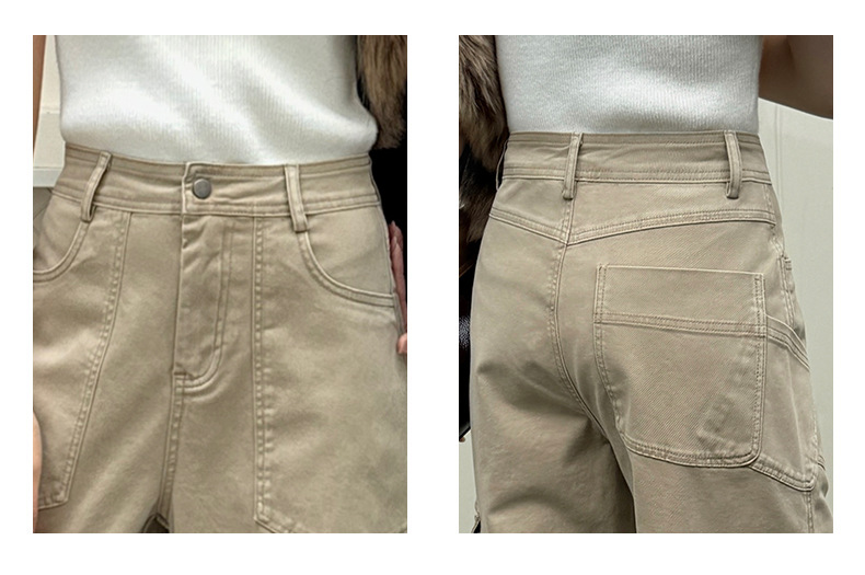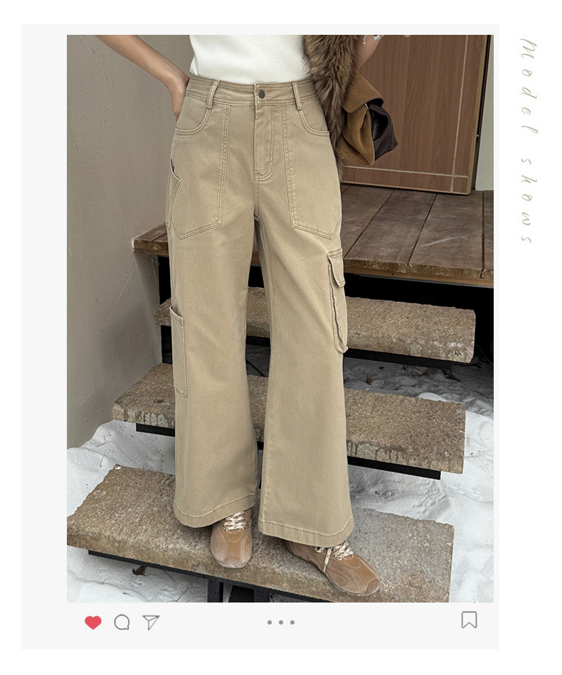 商品名称:云长 卡其工装裤女冬季新款日系高腰显瘦长裤阔腿直筒休闲裤K0172