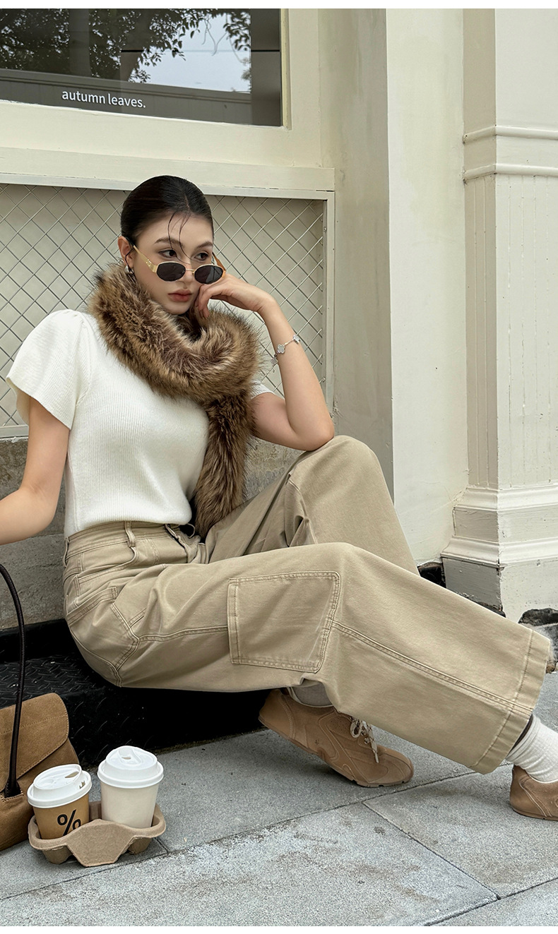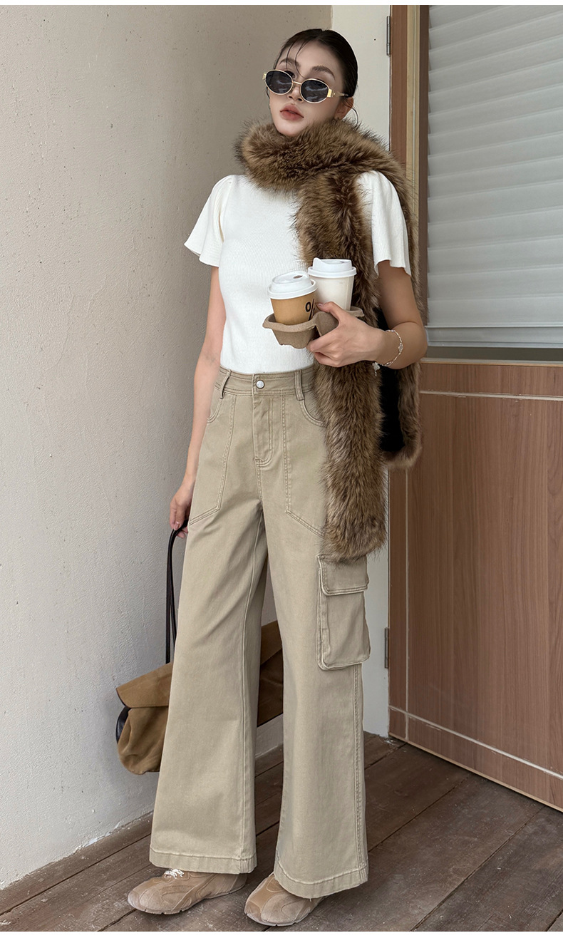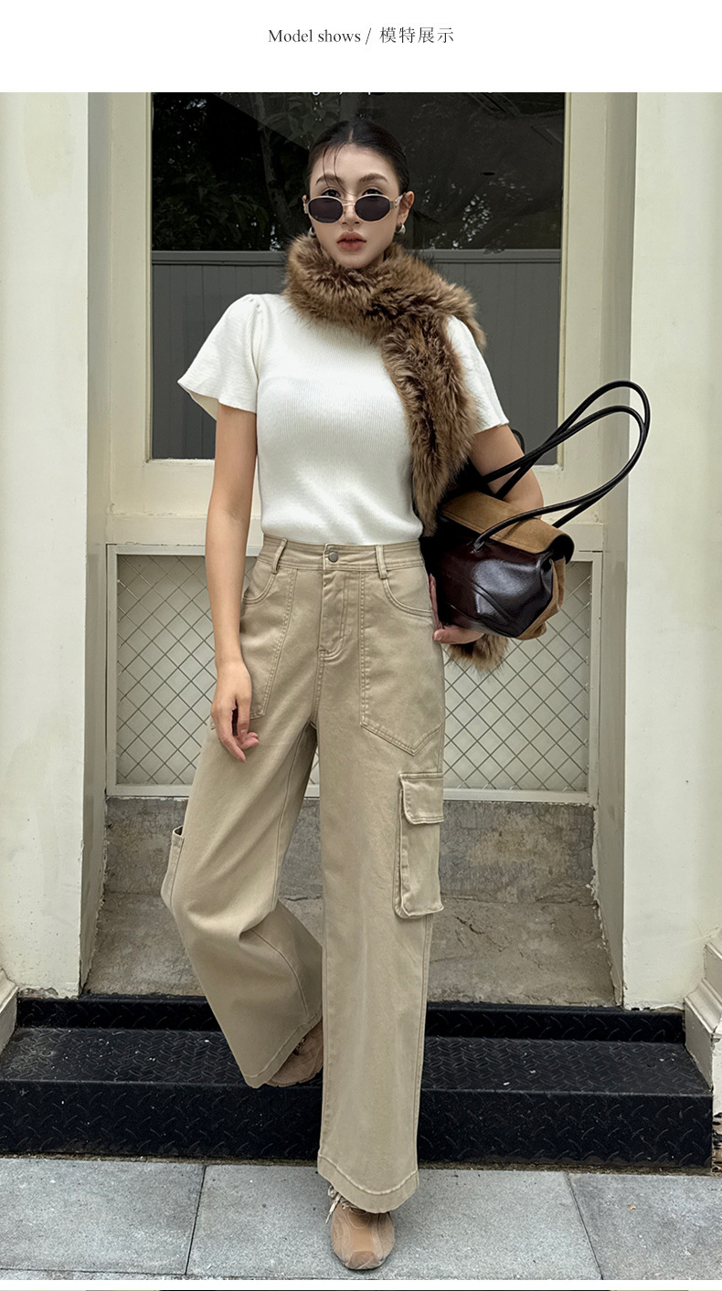 商品名称:云长 卡其工装裤女冬季新款日系高腰显瘦长裤阔腿直筒休闲裤K0172