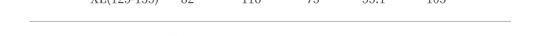 尺码表