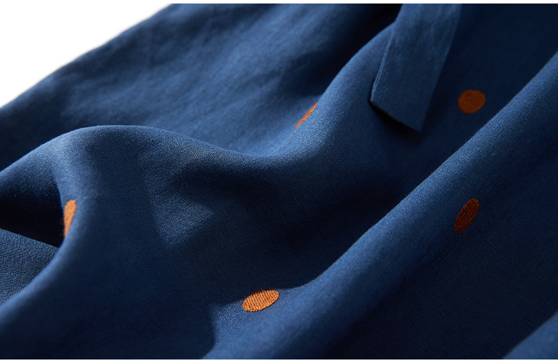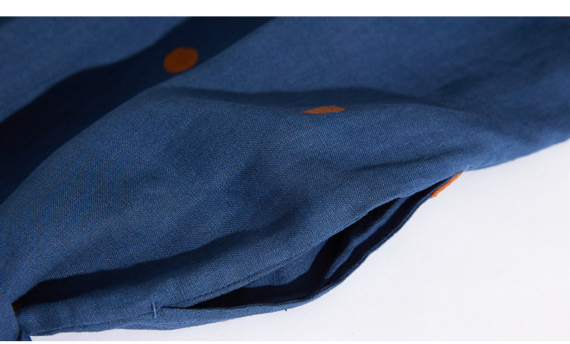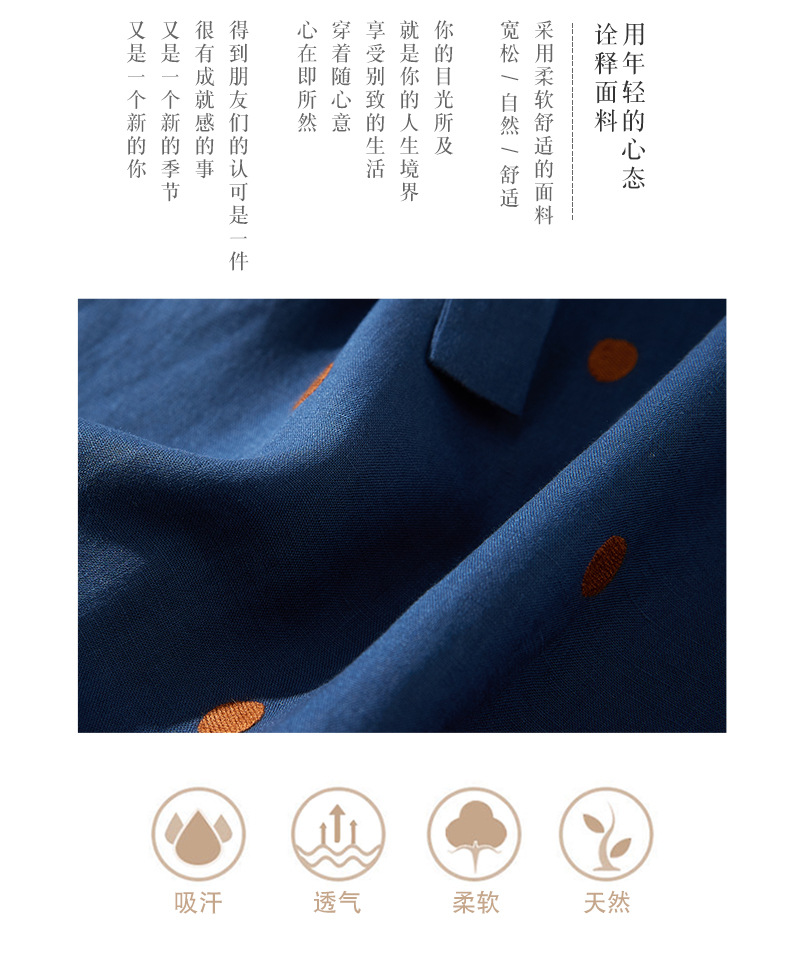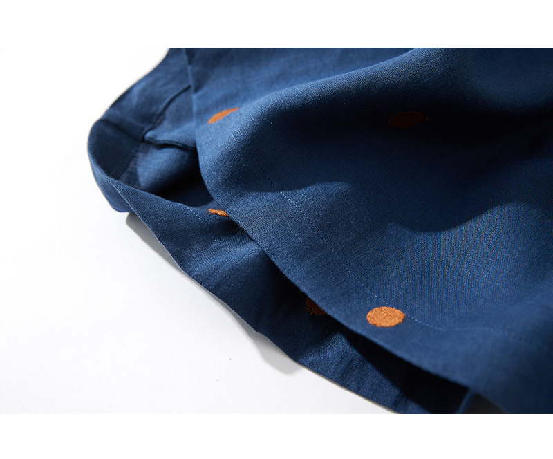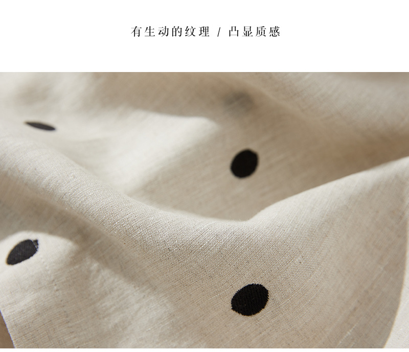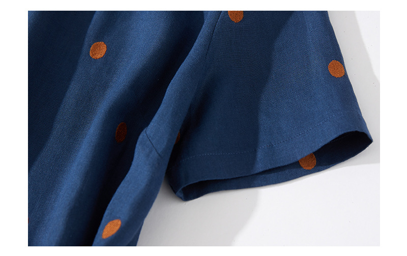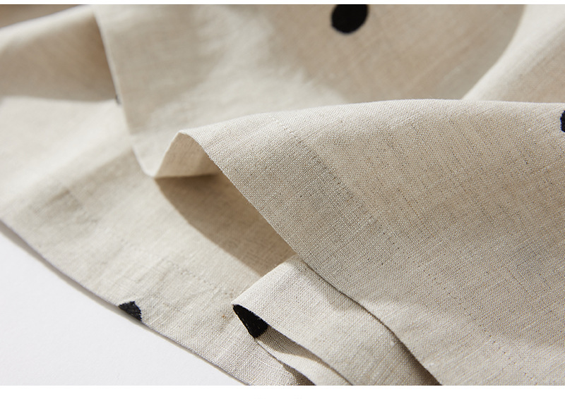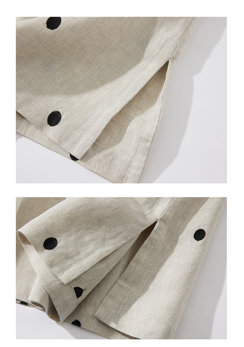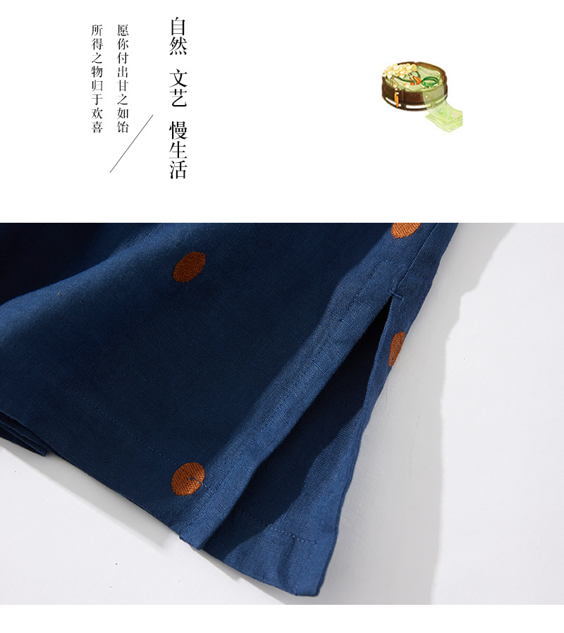 2024夏新款棉麻印花文艺波点小个子中长连衣裙系带收腰显瘦短袖裙