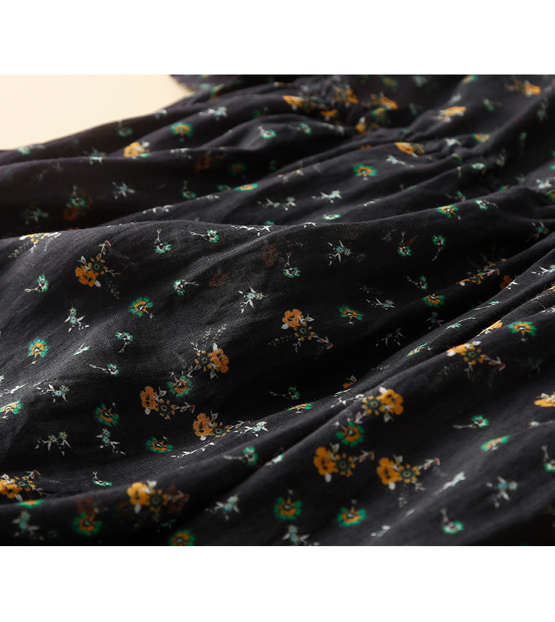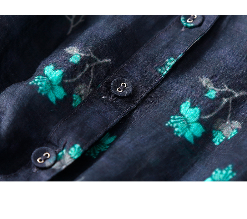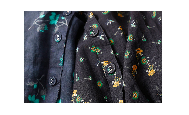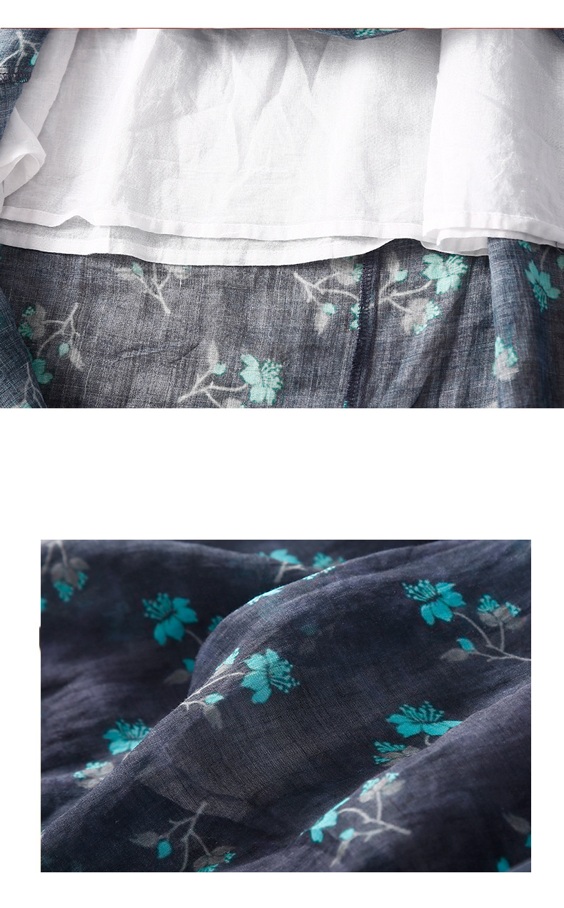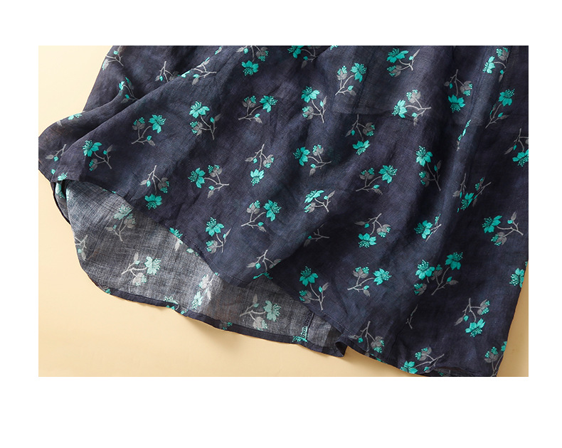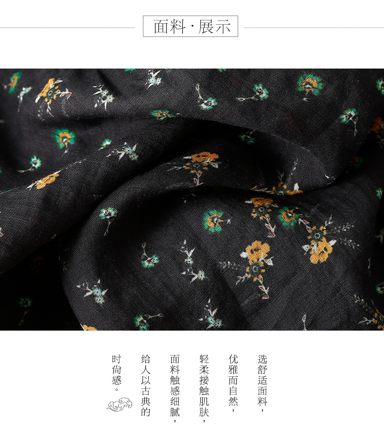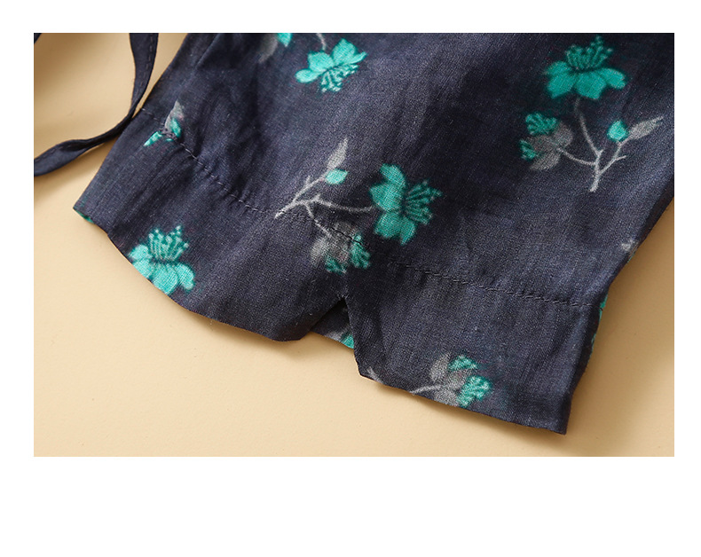系带苎麻V领七分袖棉麻连衣裙女新款夏收腰显瘦文艺气质碎花长裙