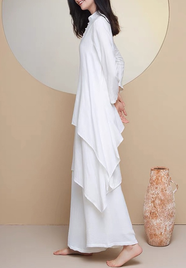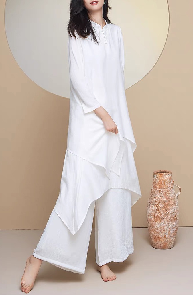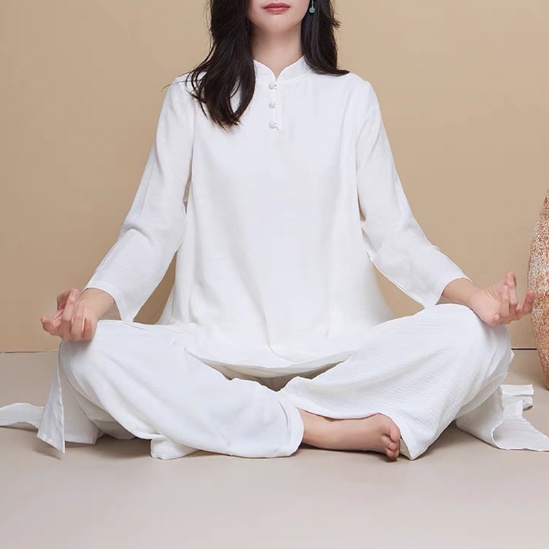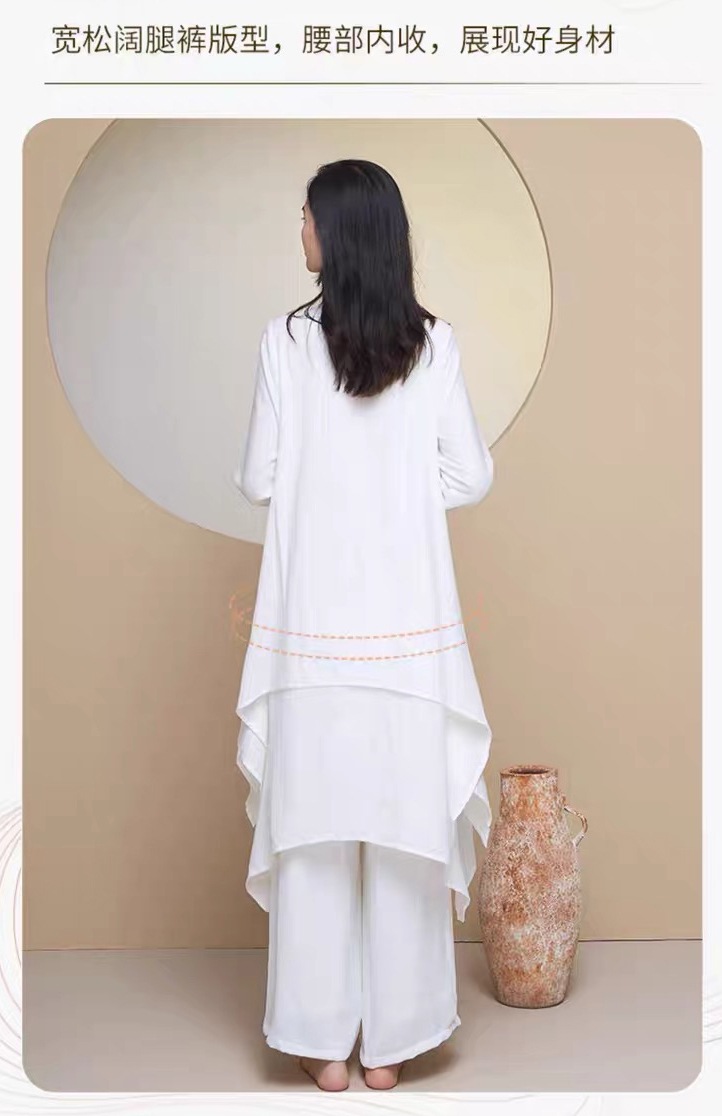 商品名称:瑜伽服套装女白色宽松昆达里尼冥想疗愈禅服辟谷舞韵禅修服优雅型