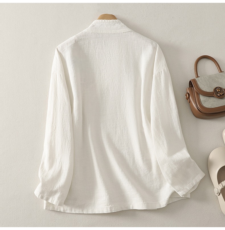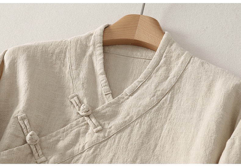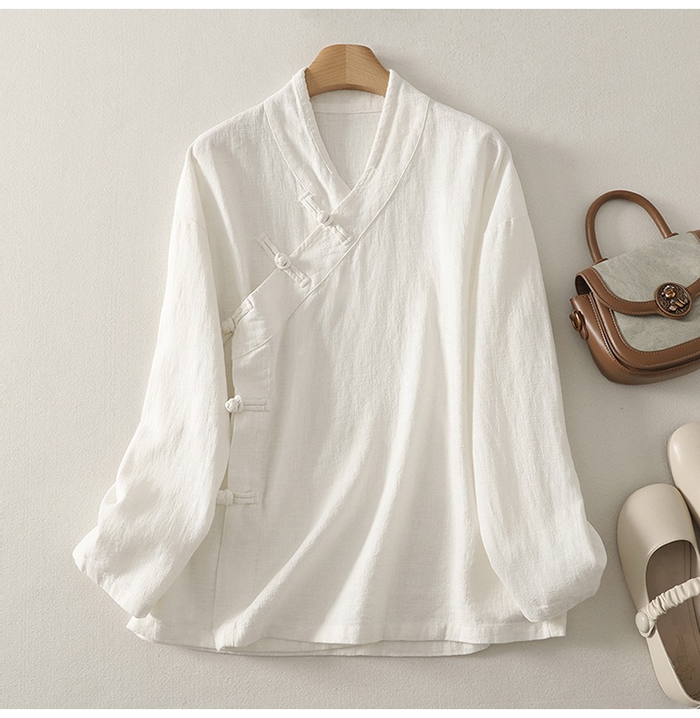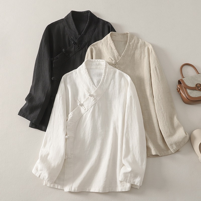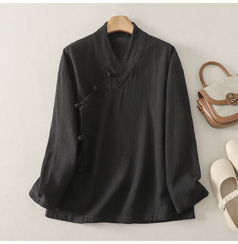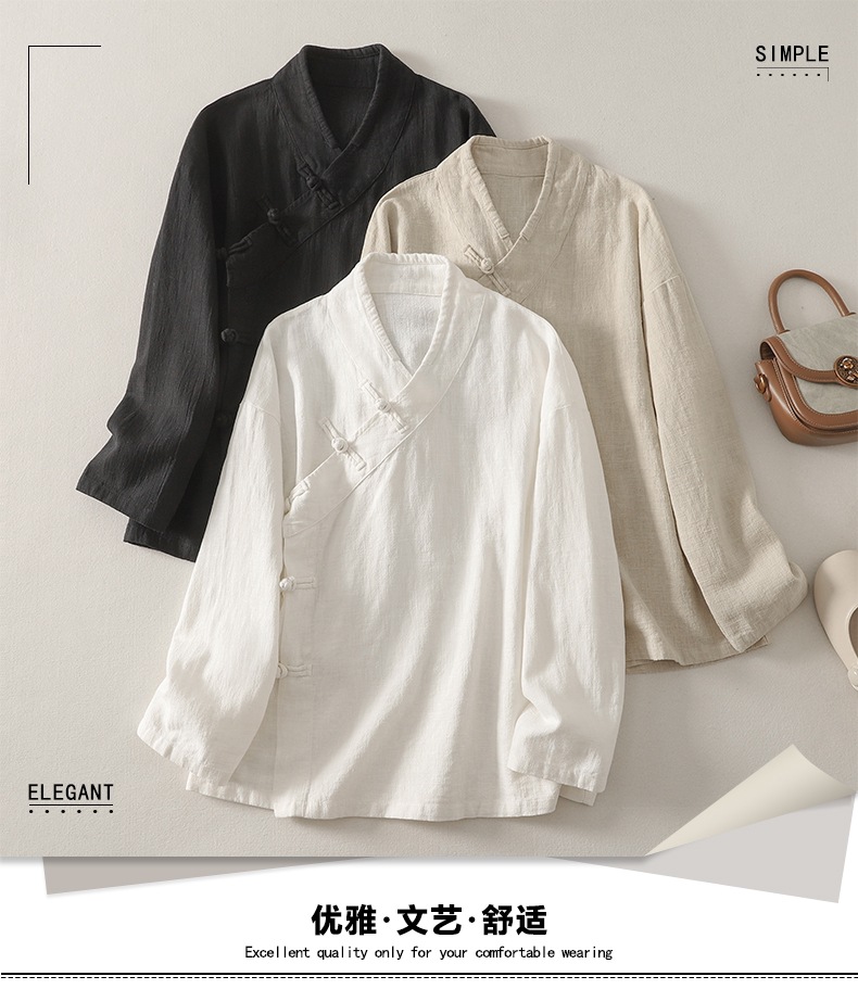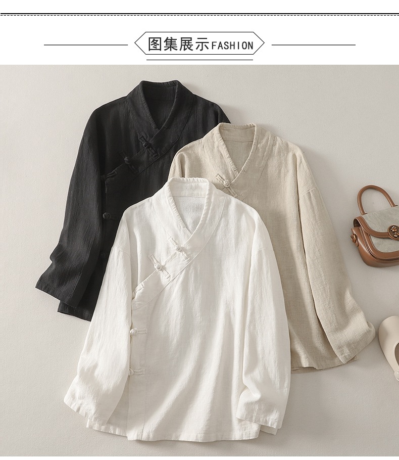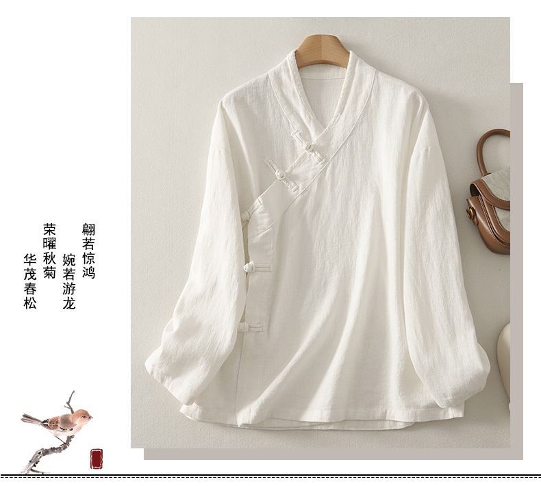 实拍新中式休闲上衣女中式盘扣斜襟长袖衬衫禅修居士服茶服开衫