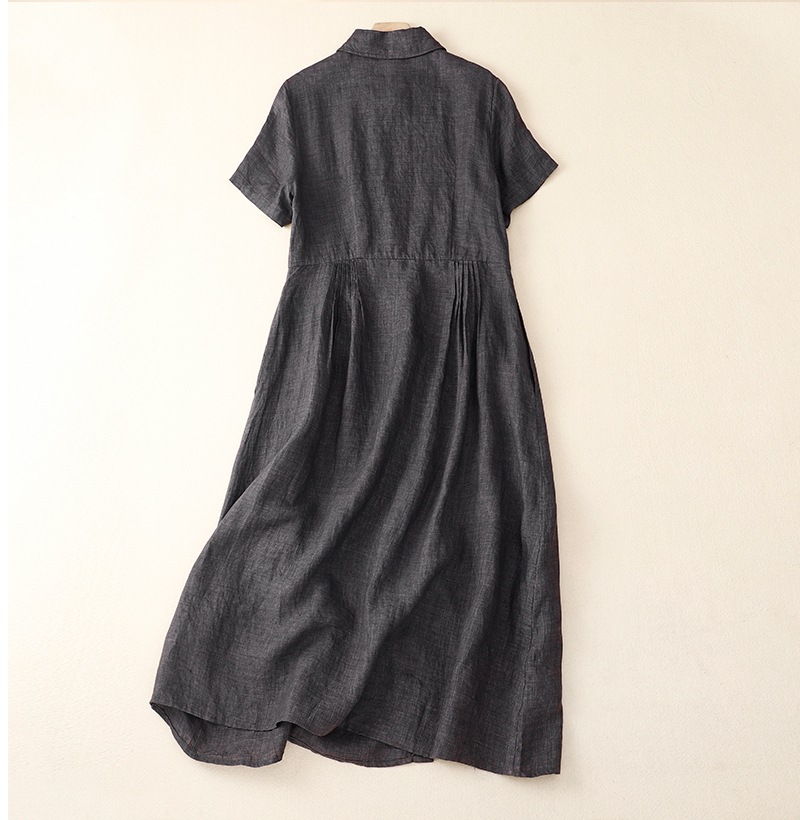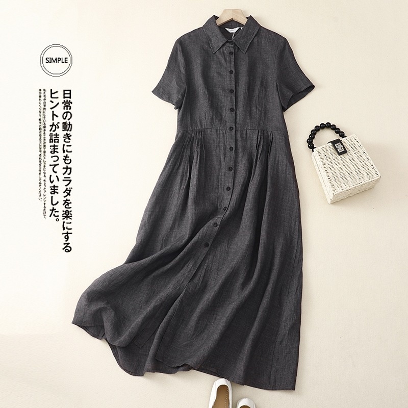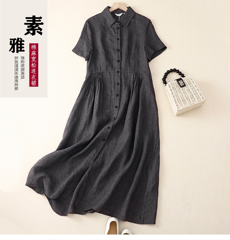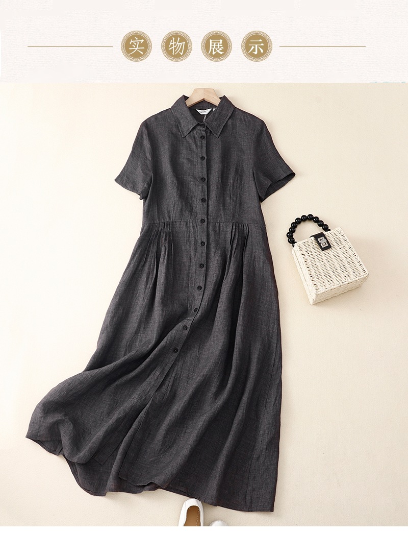 实拍2025夏季新款棉麻气质连衣裙女韩版设计感小众衬衫裙高级感