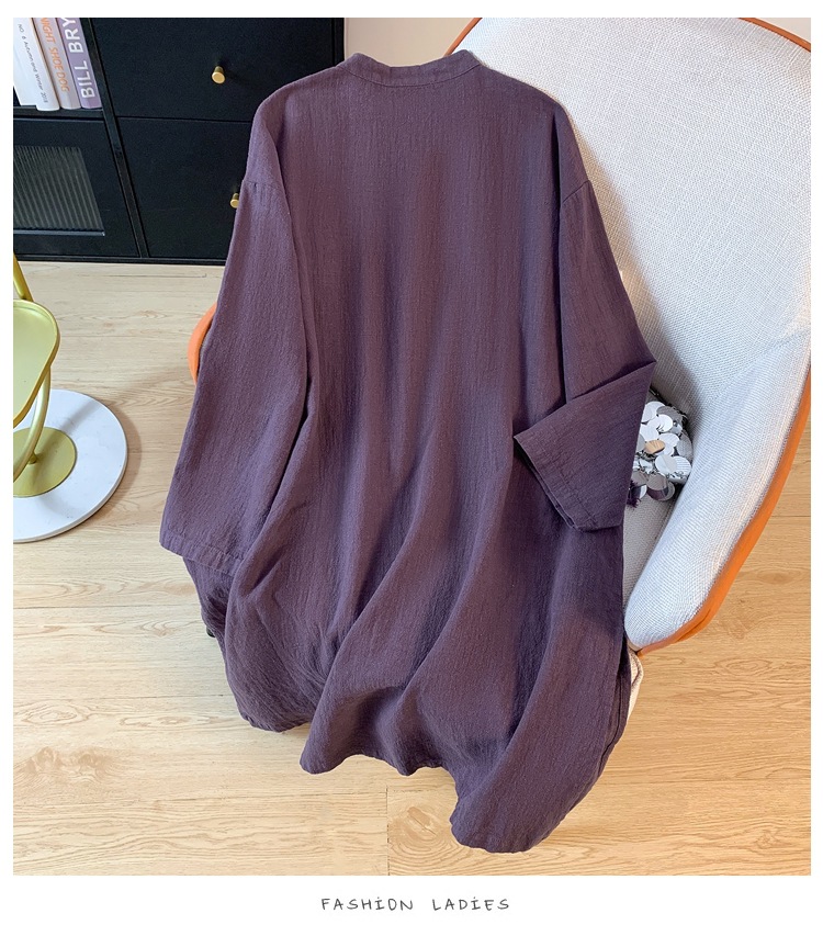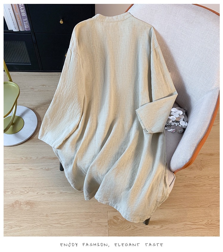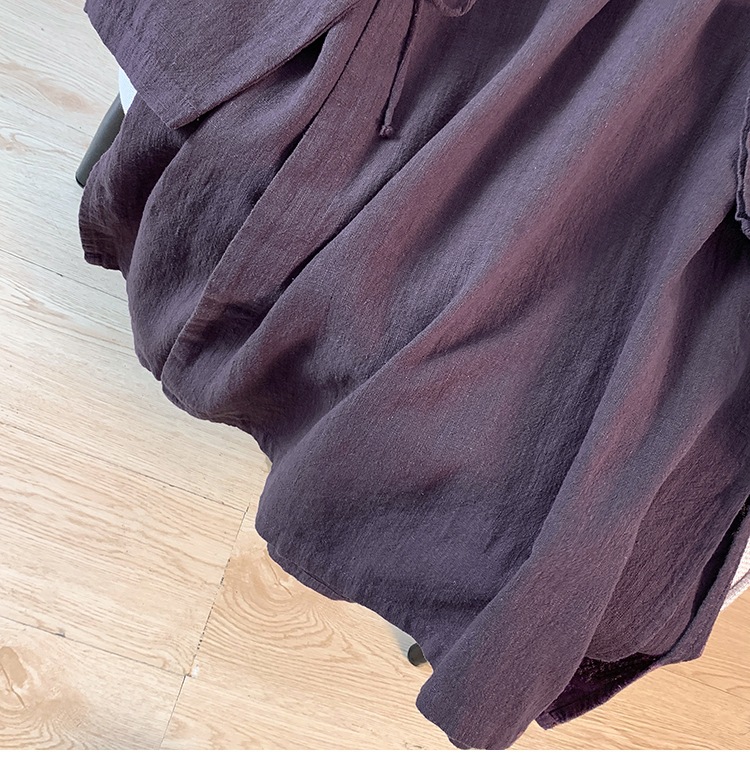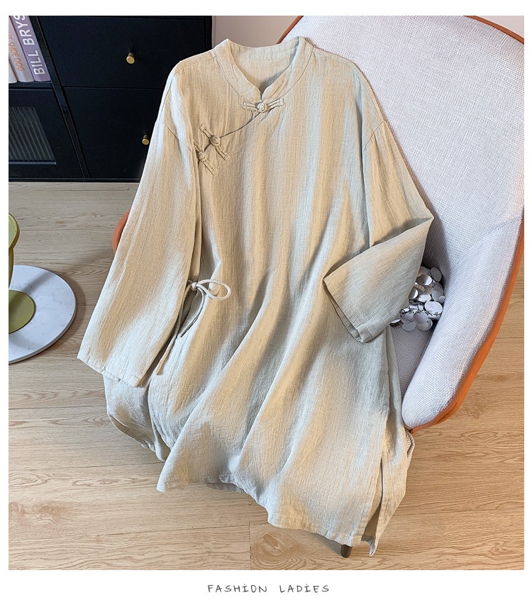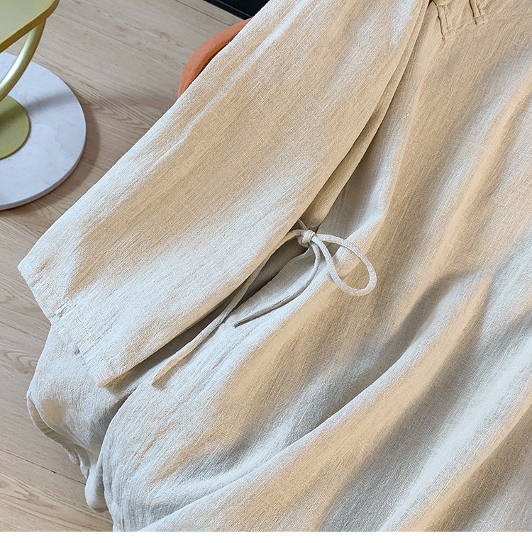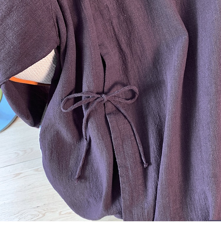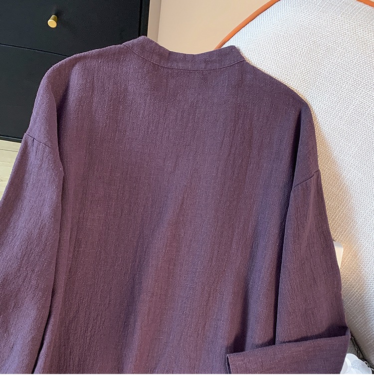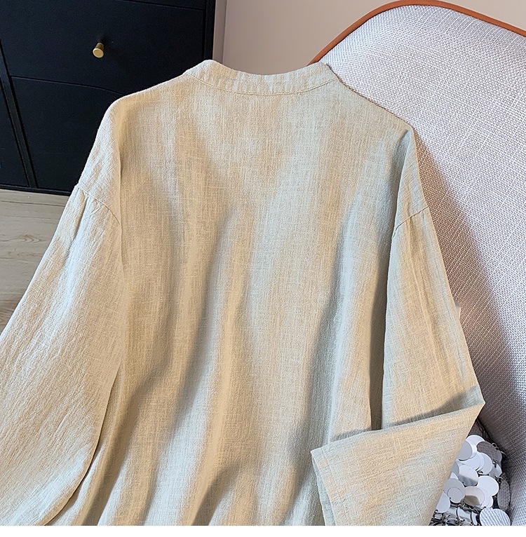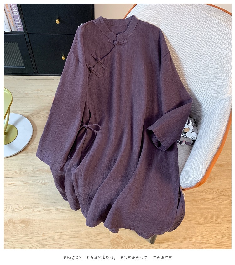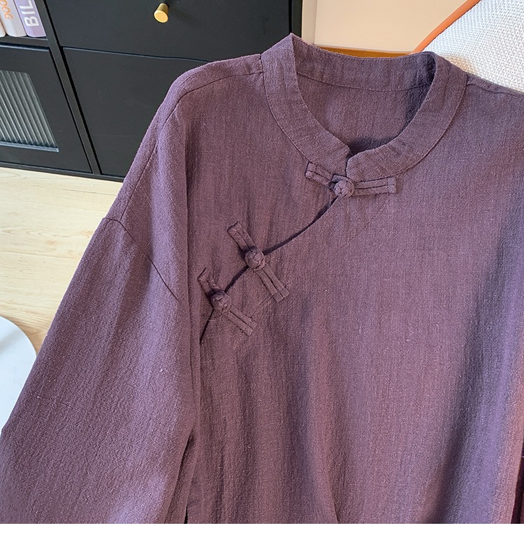实拍2025新款通勤中式文艺盘扣系带棉麻衬衫长款禅意茶服立领上衣