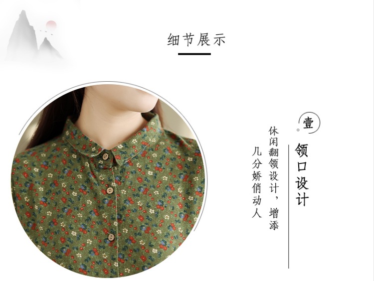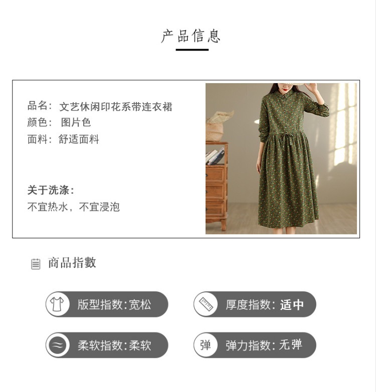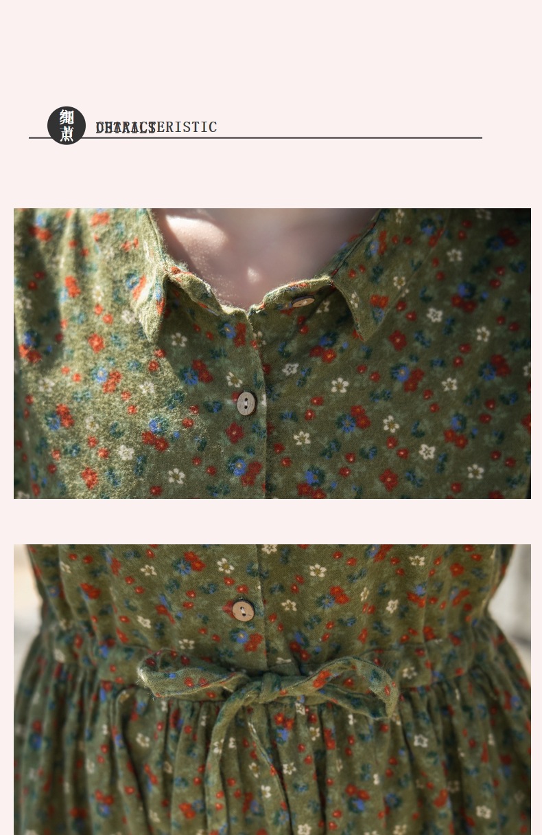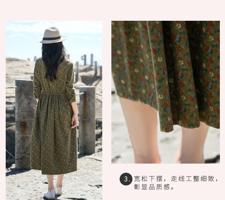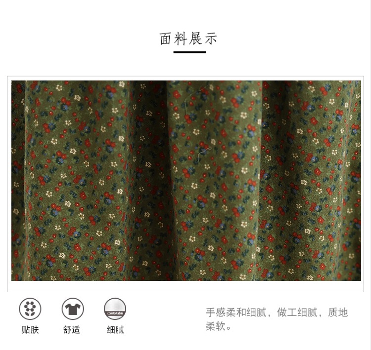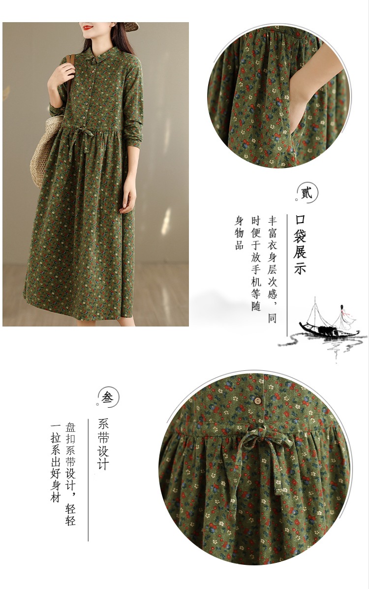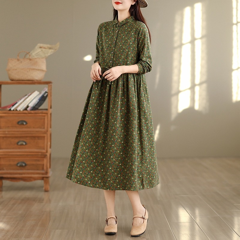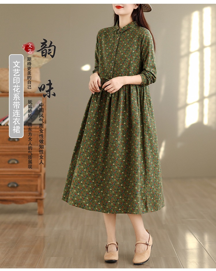 实拍森系文艺翻领长袖连衣裙2025秋装棉质磨毛碎花裙中长款衬衫裙