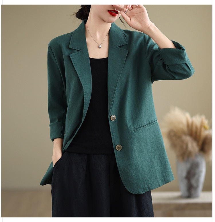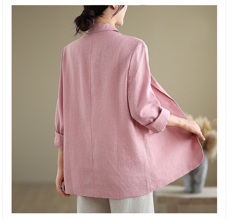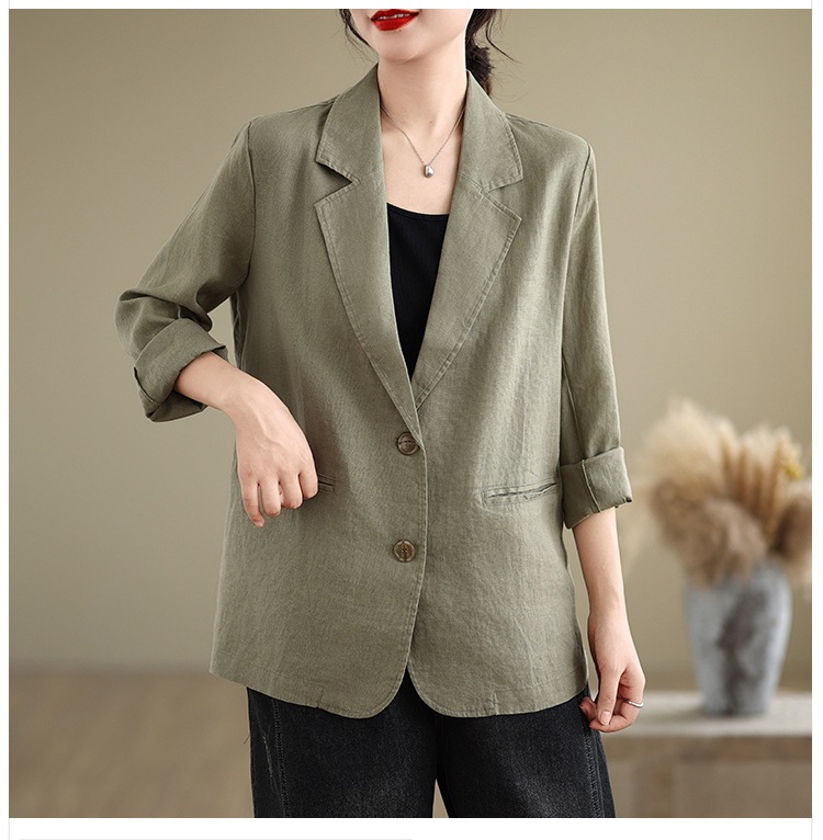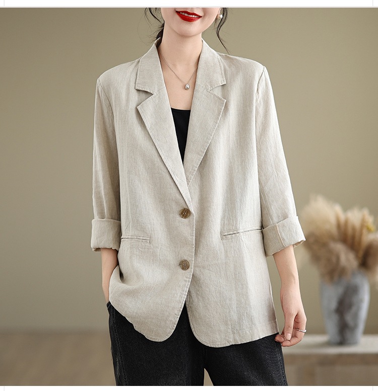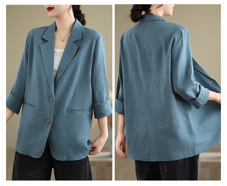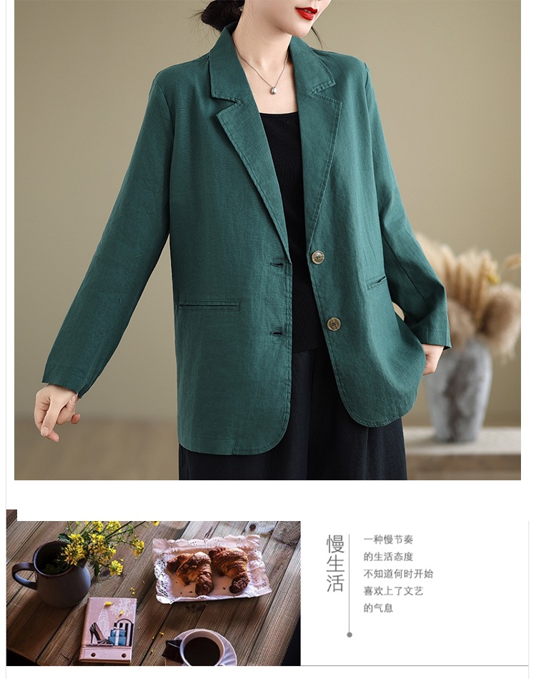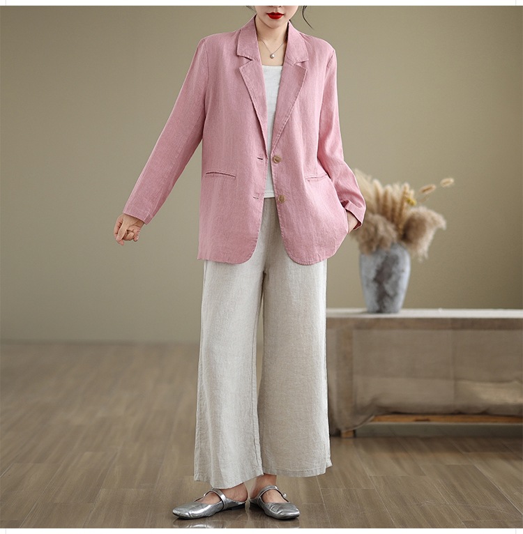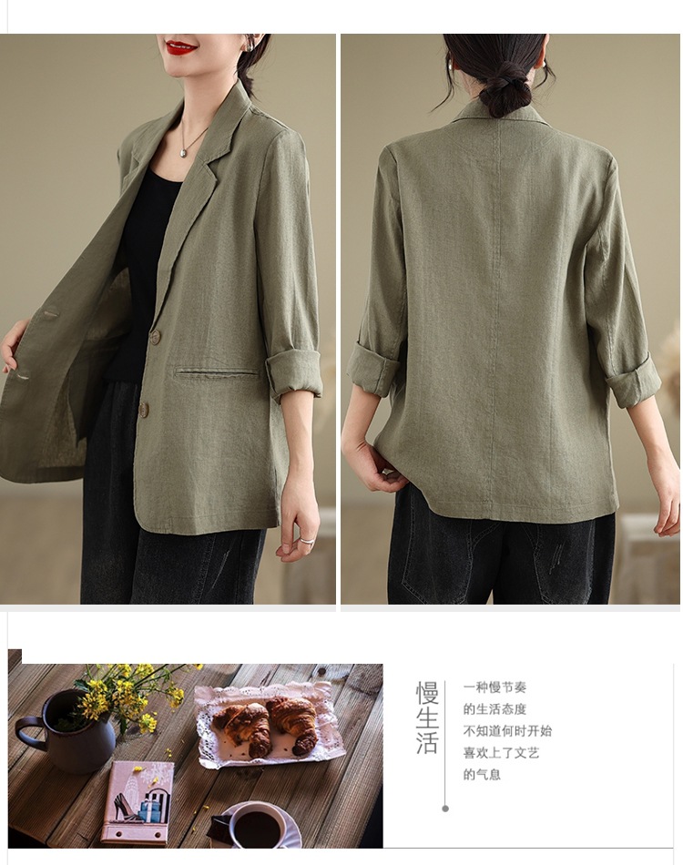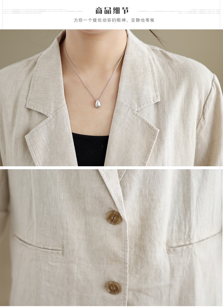 实拍2025年春秋新款棉麻文艺宽松西装领长袖小西服休闲外套上衣女