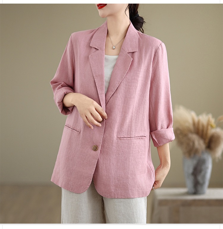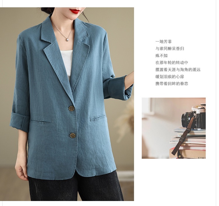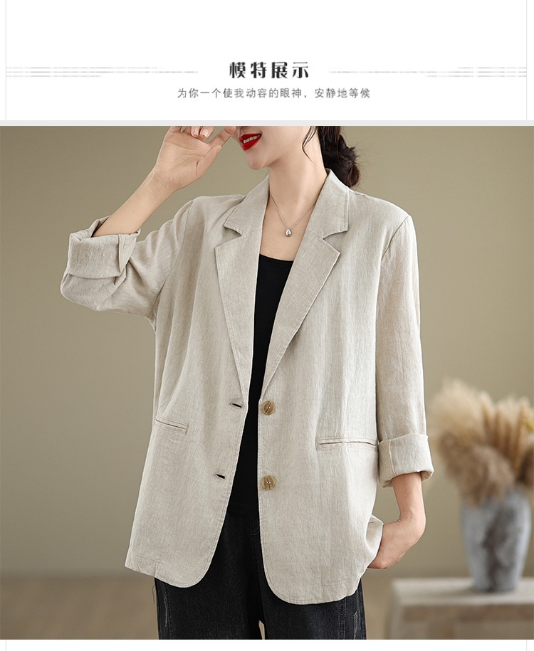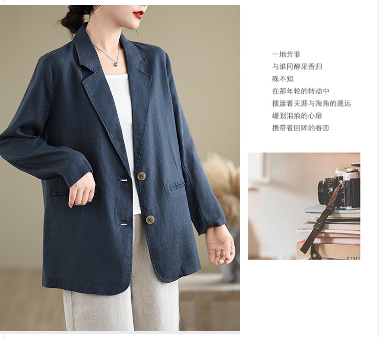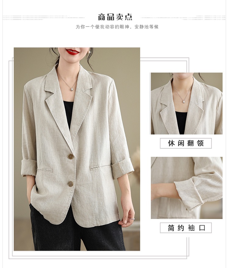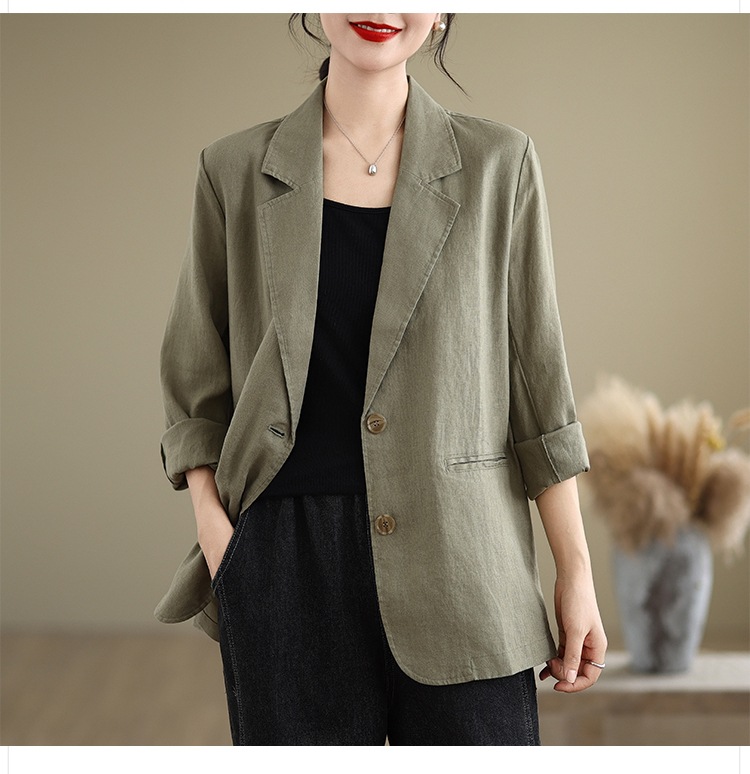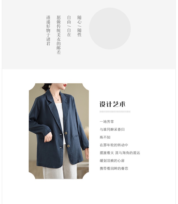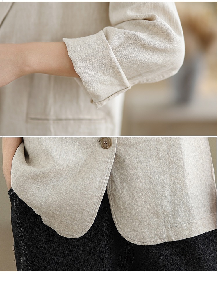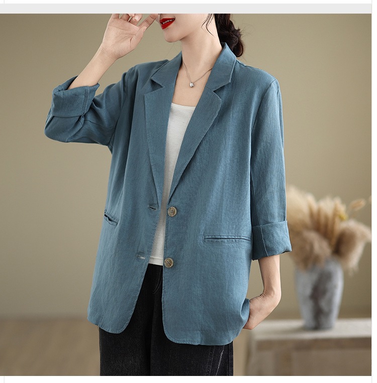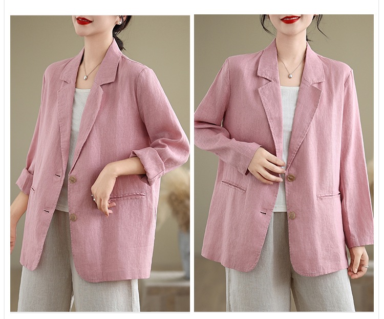 实拍2025年春秋新款棉麻文艺宽松西装领长袖小西服休闲外套上衣女