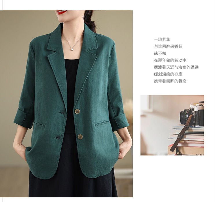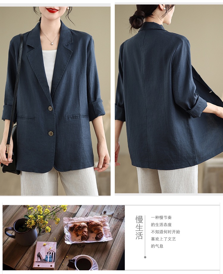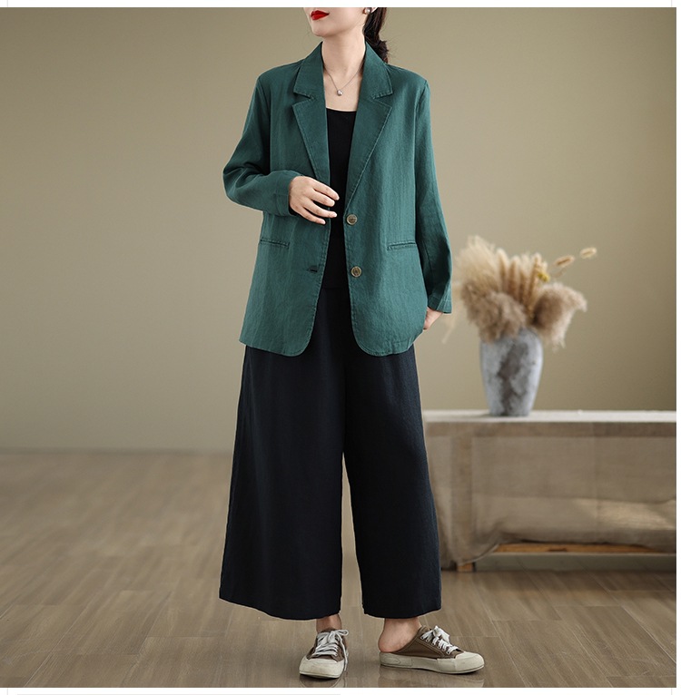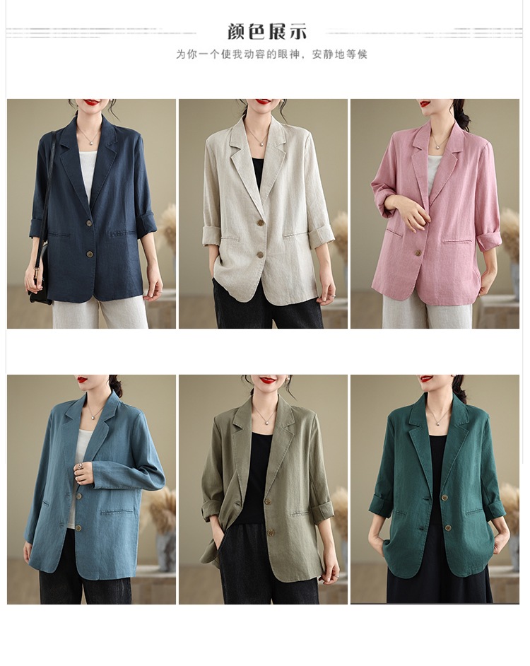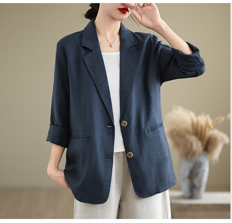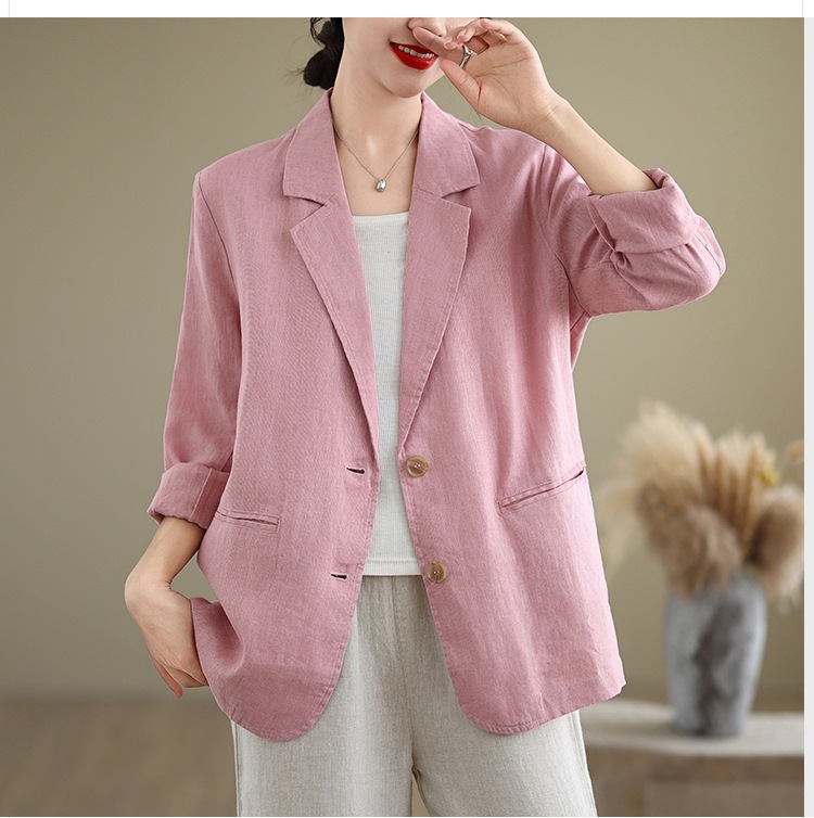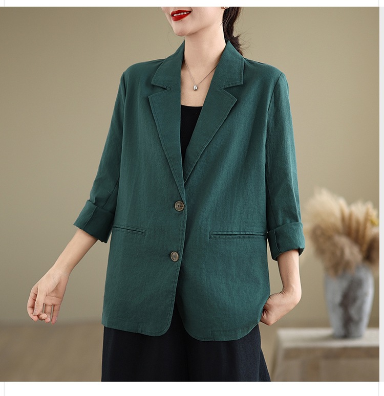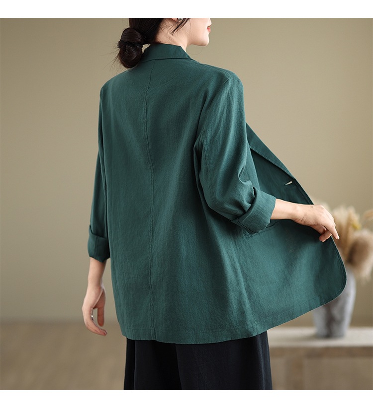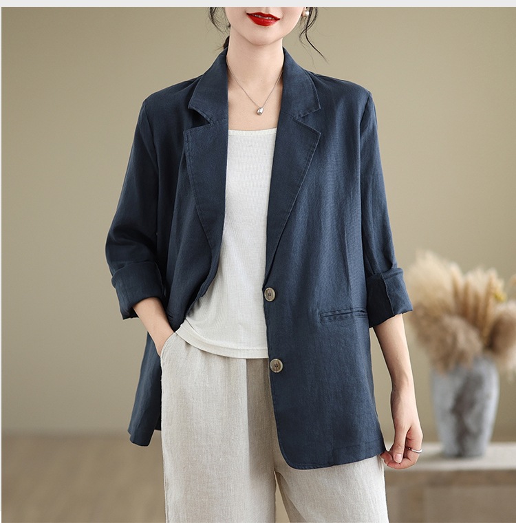 实拍2025年春秋新款棉麻文艺宽松西装领长袖小西服休闲外套上衣女