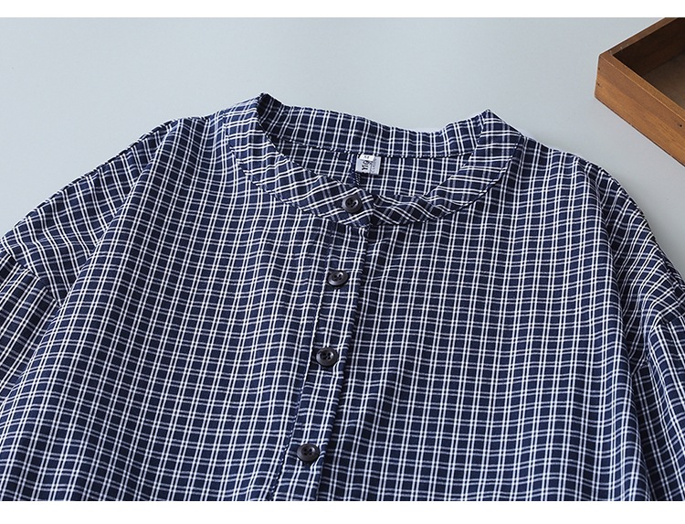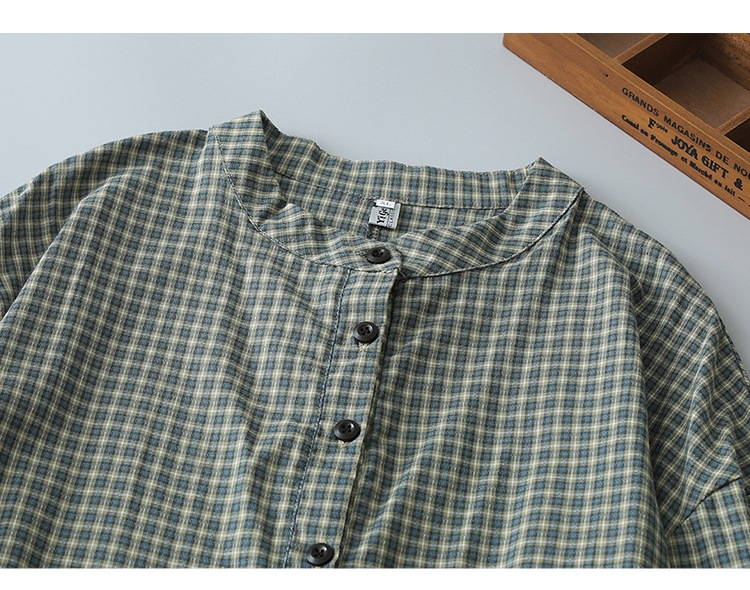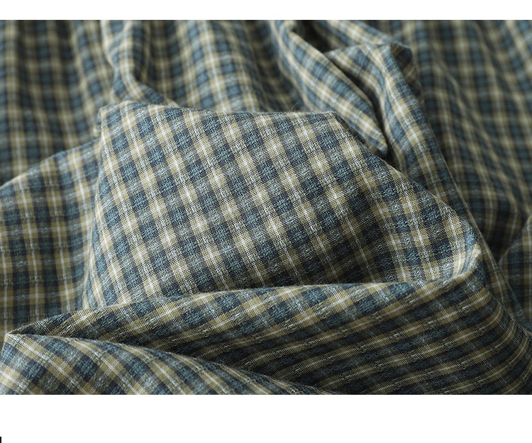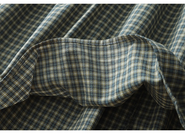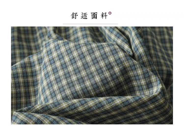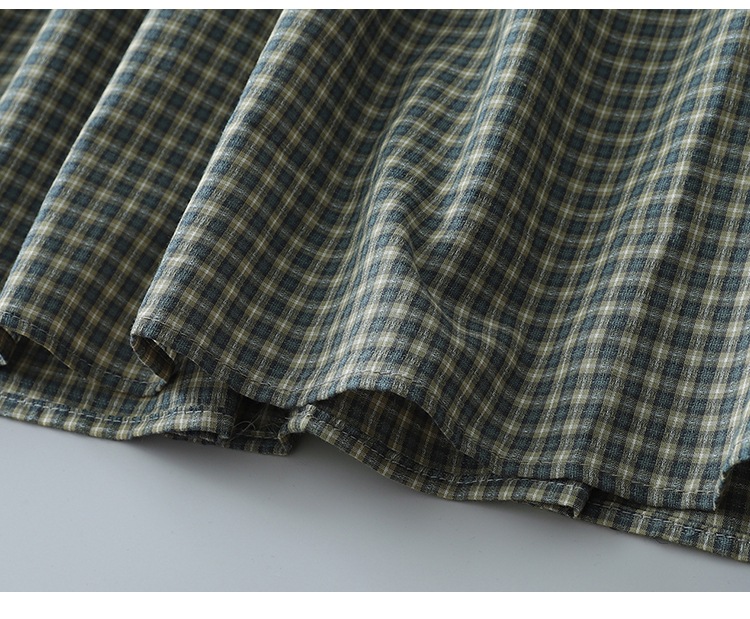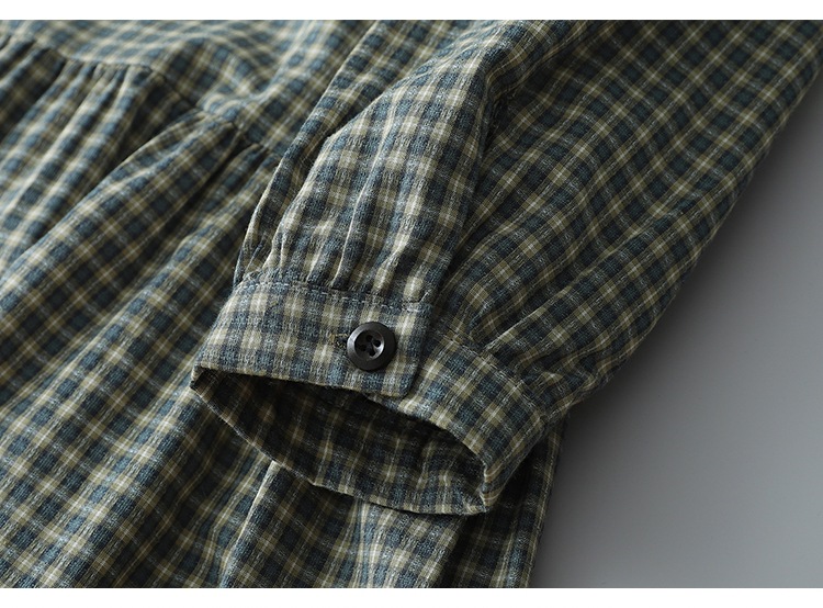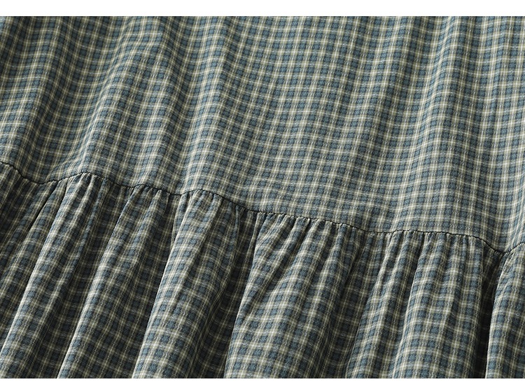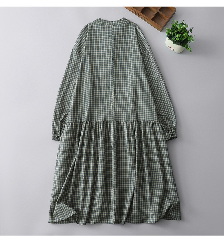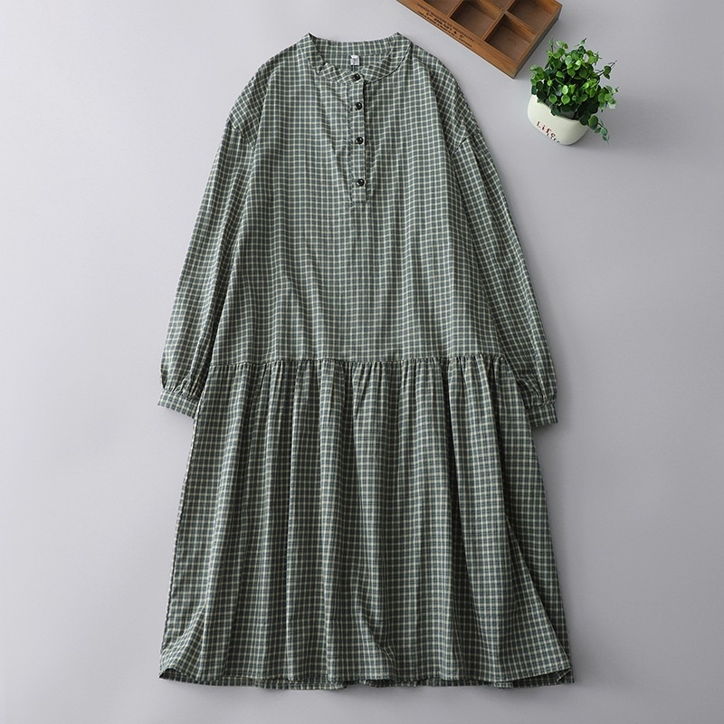 实拍2025春季新款日系格子连衣裙复古休闲宽松中长款棉质长袖裙子