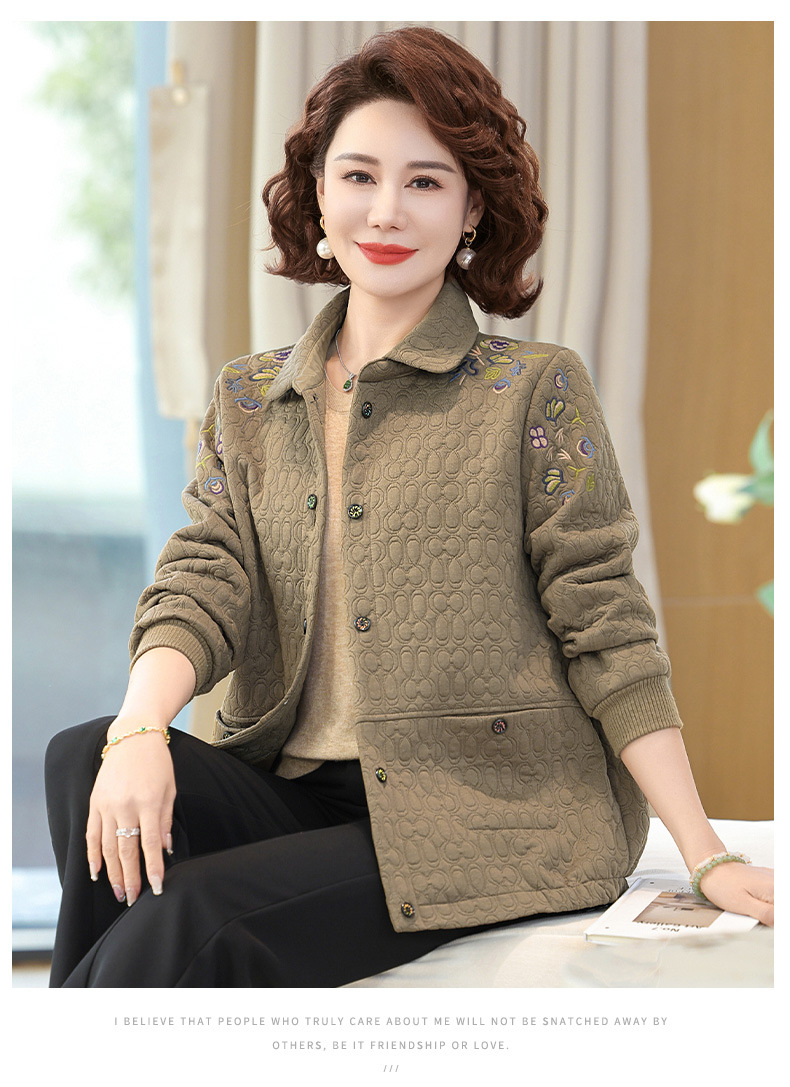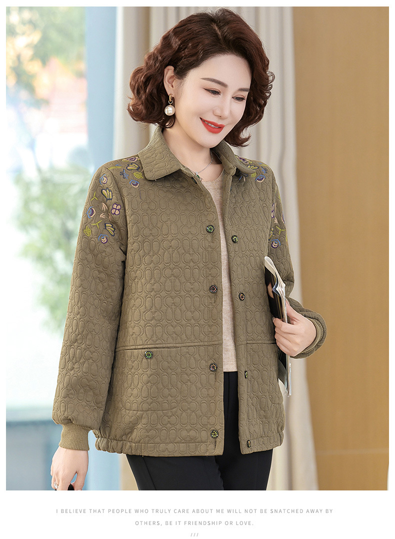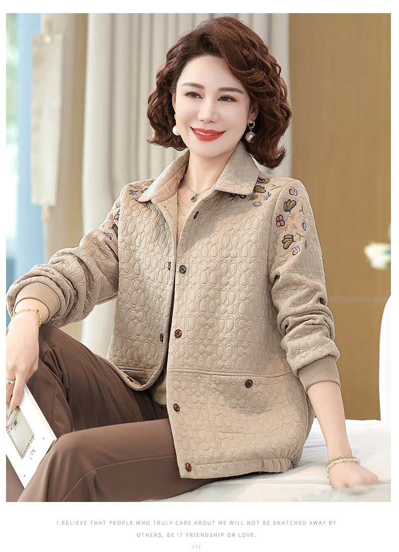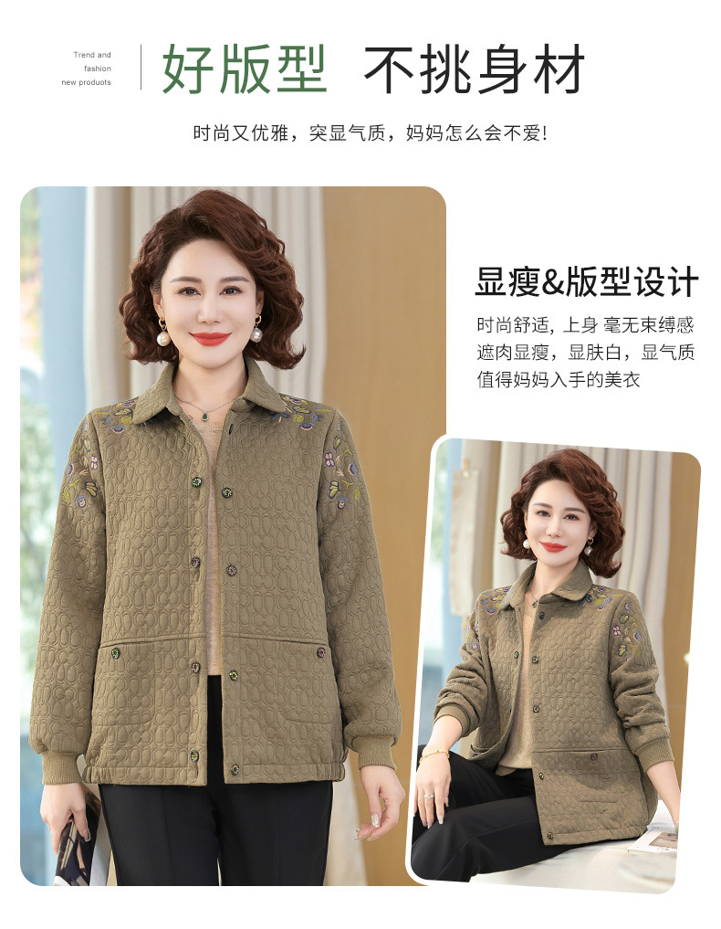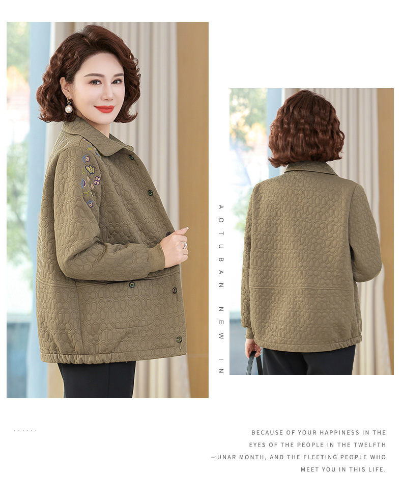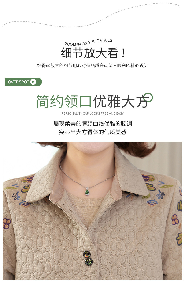 商品名称:妈妈春装短款休闲外套翻领小个子时尚刺绣夹克衫中老年女装上衣