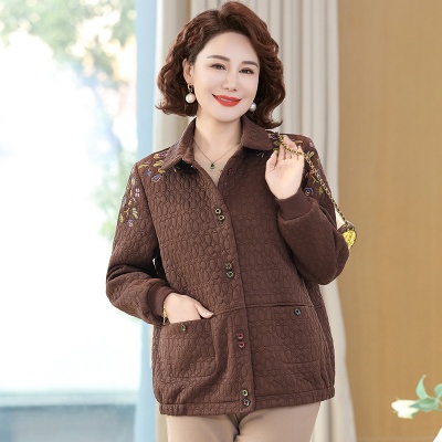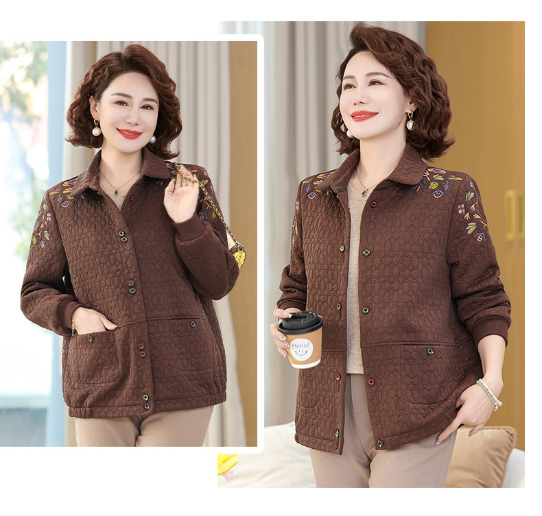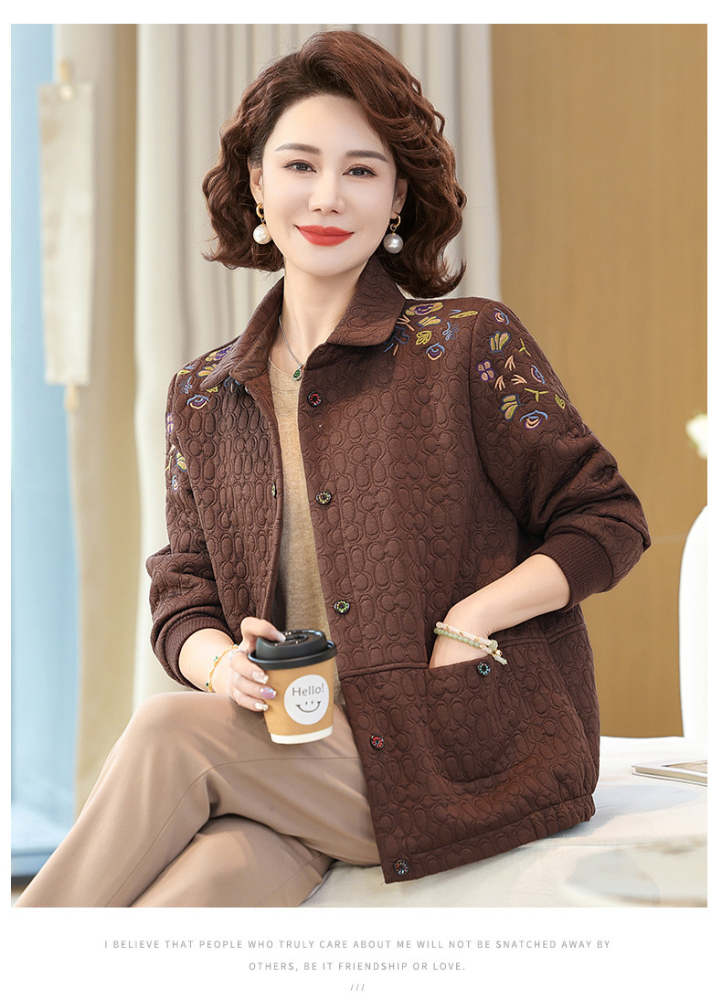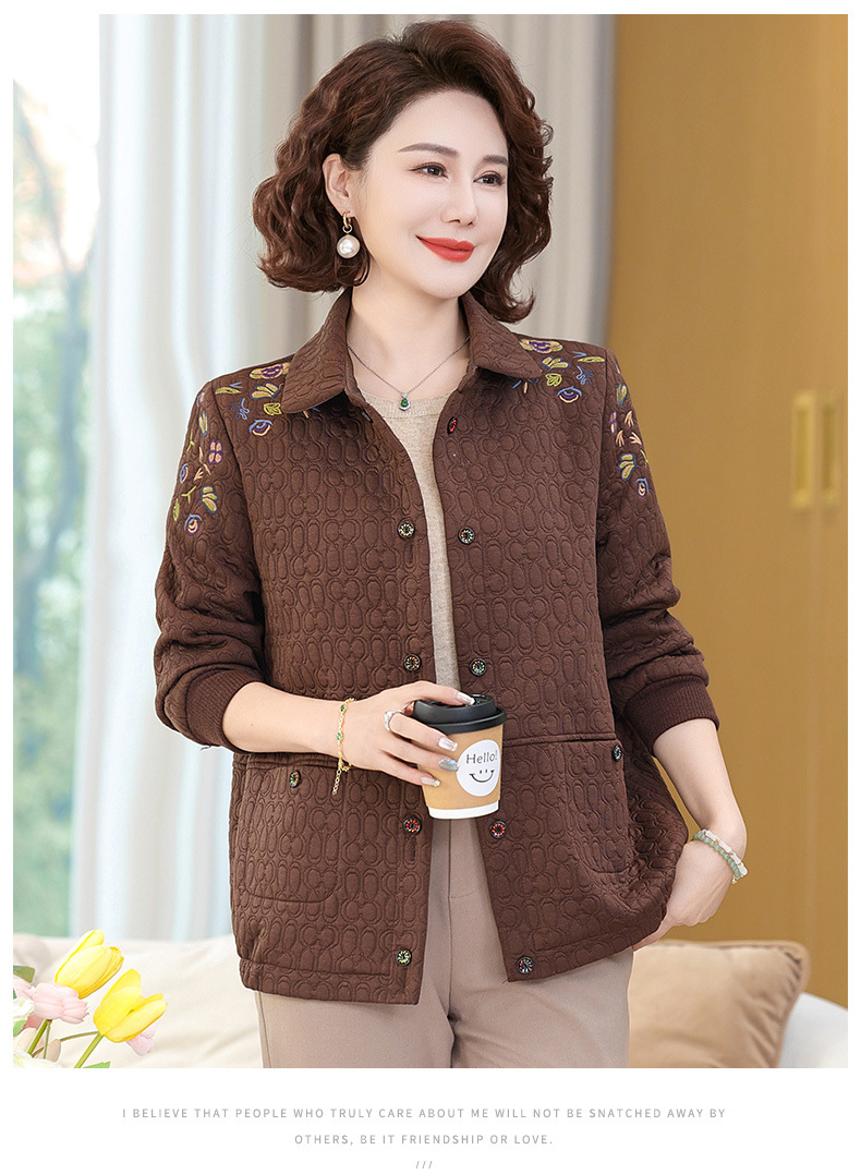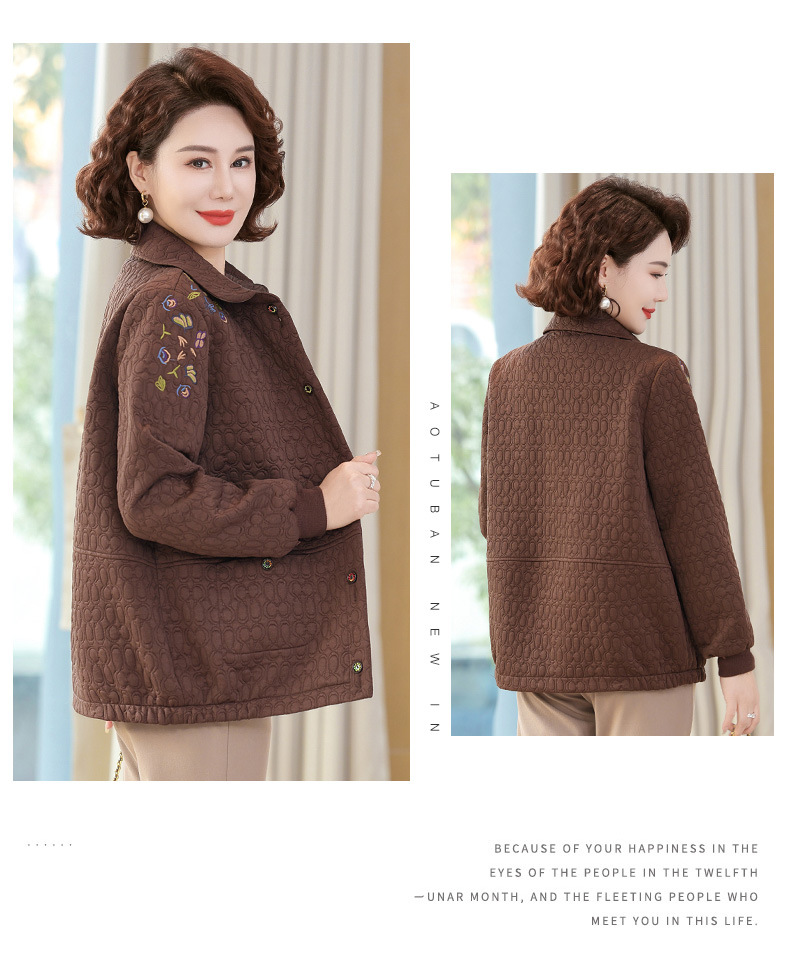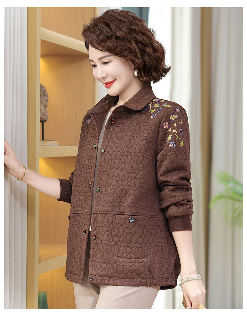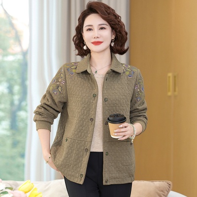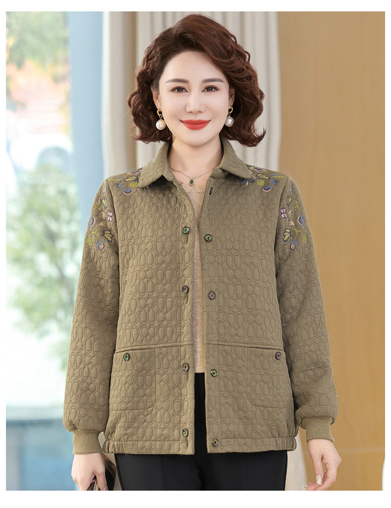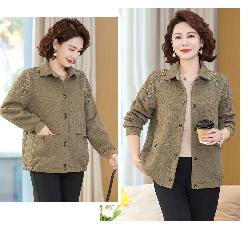 商品名称:妈妈春装短款休闲外套翻领小个子时尚刺绣夹克衫中老年女装上衣