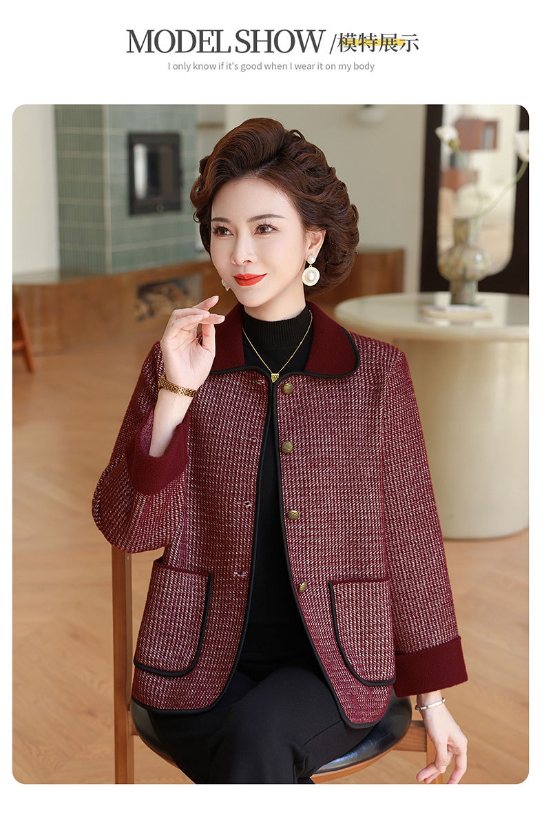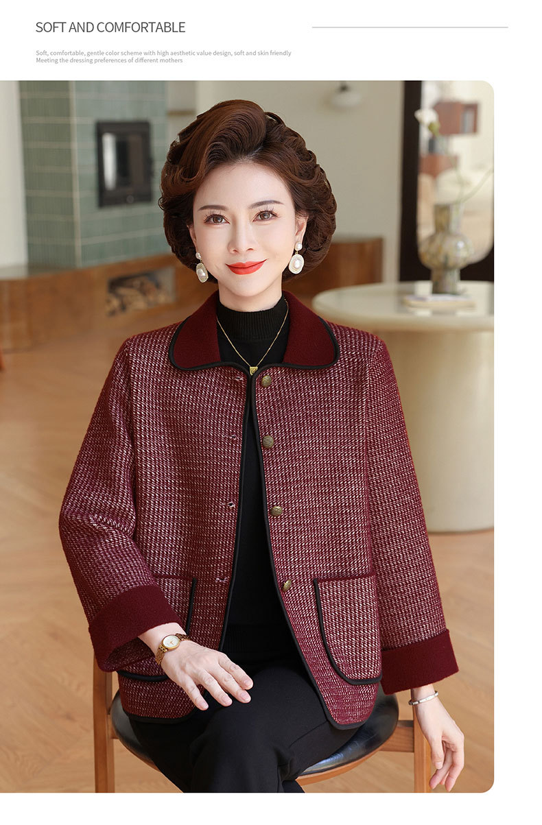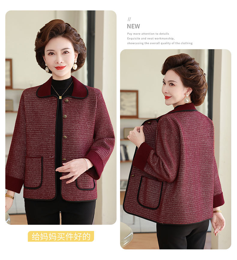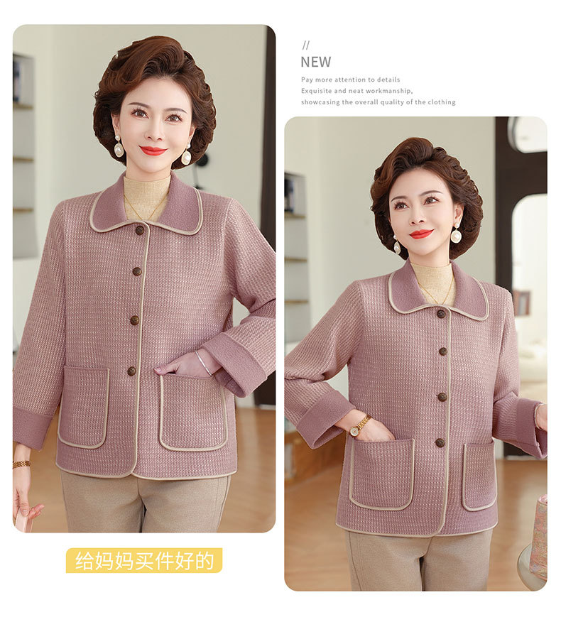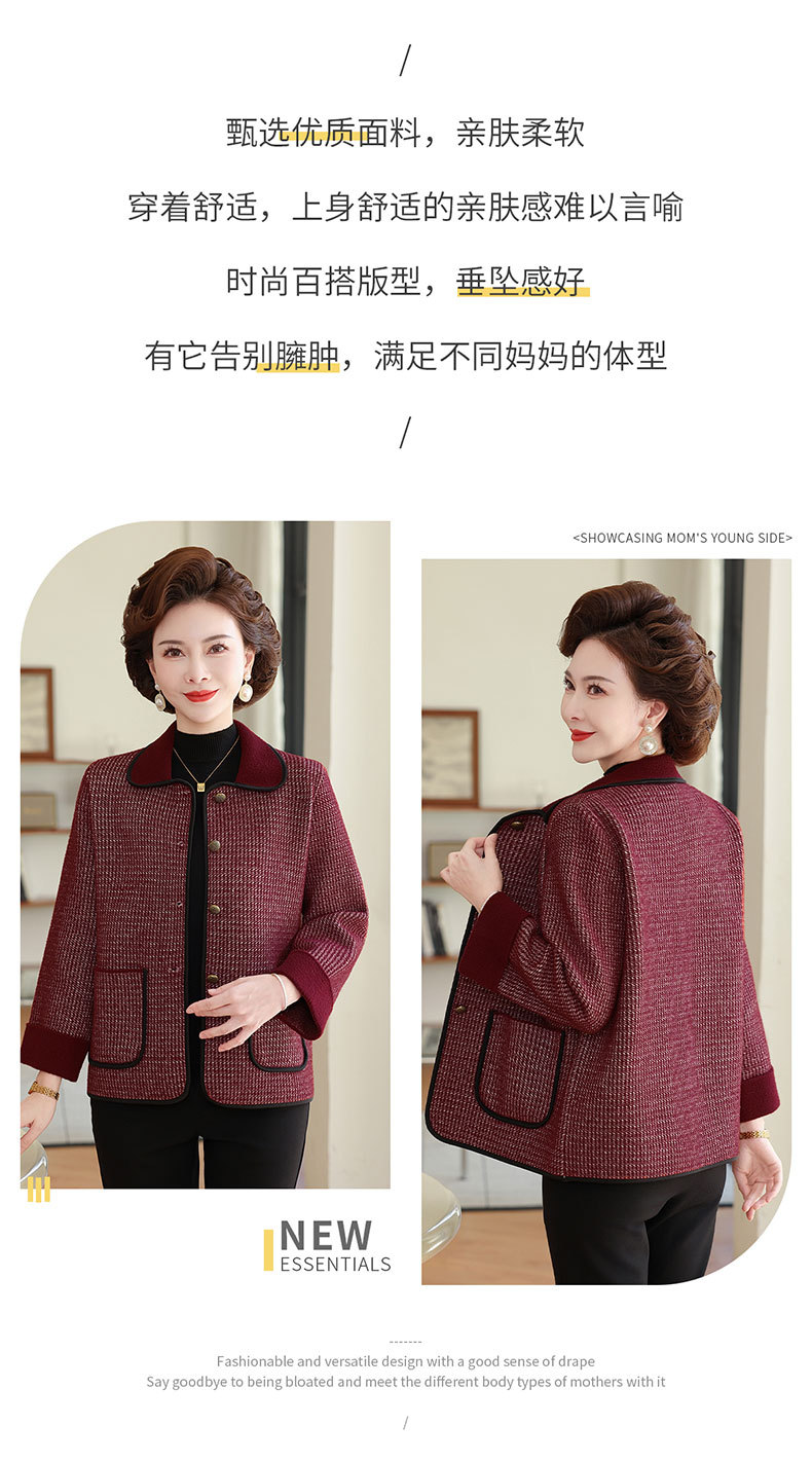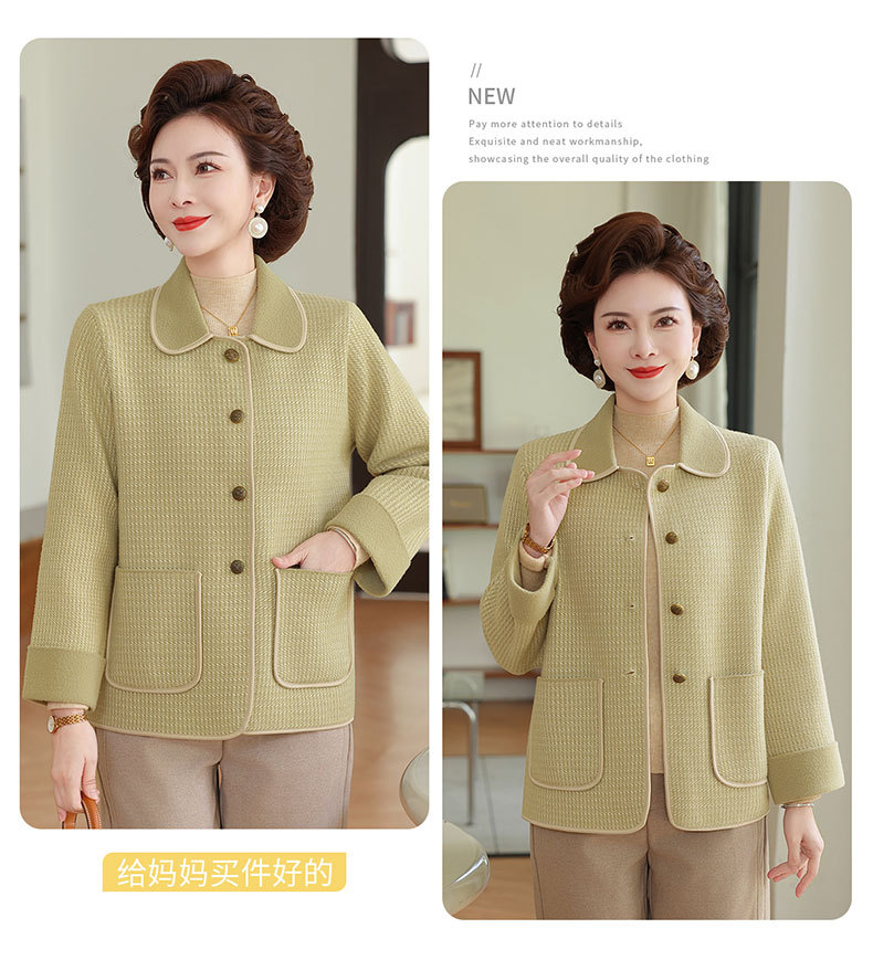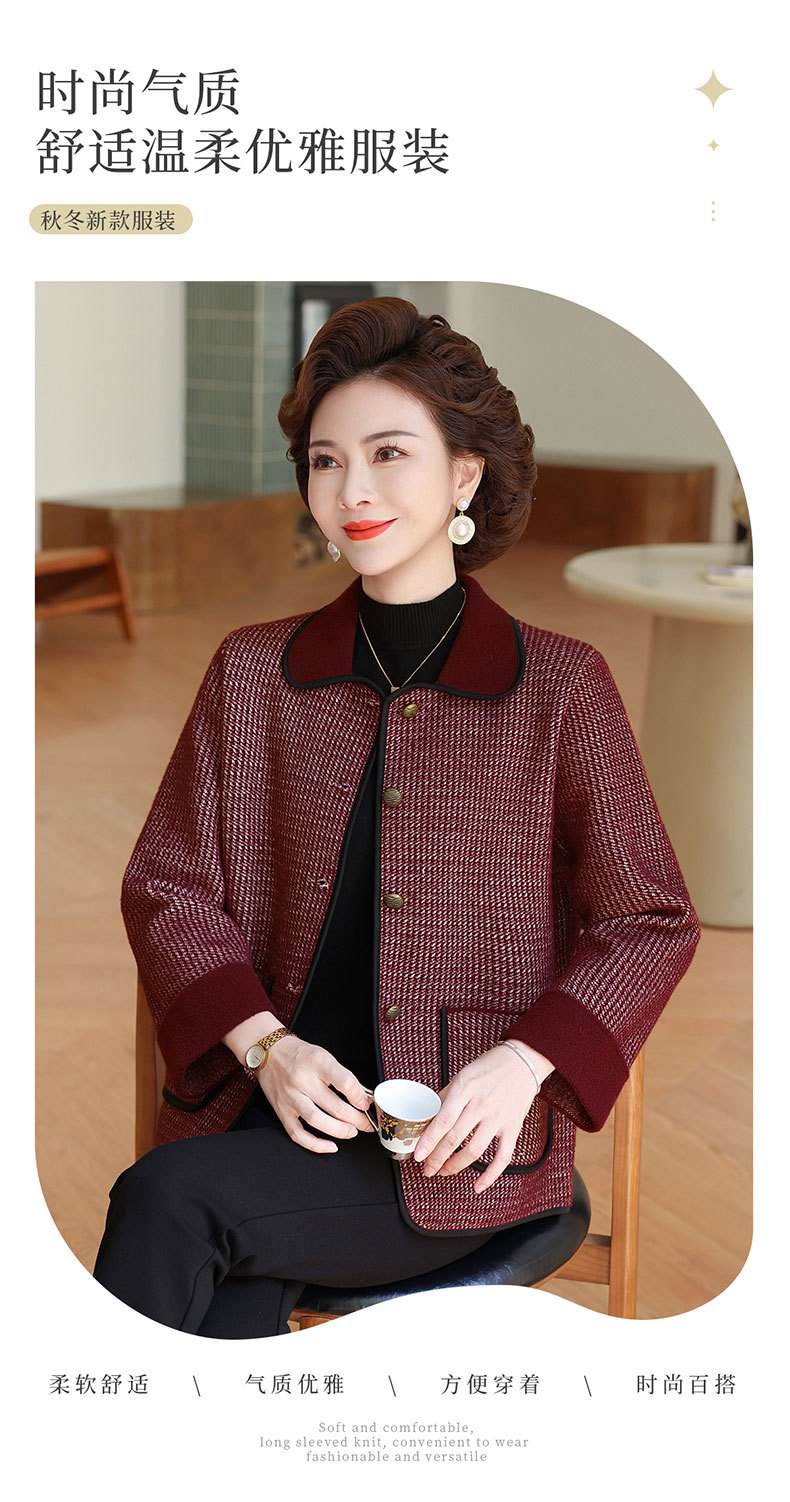 商品名称:妈妈秋装外套高贵时尚夹克上衣2025新款中老年女装洋气质针织开衫
