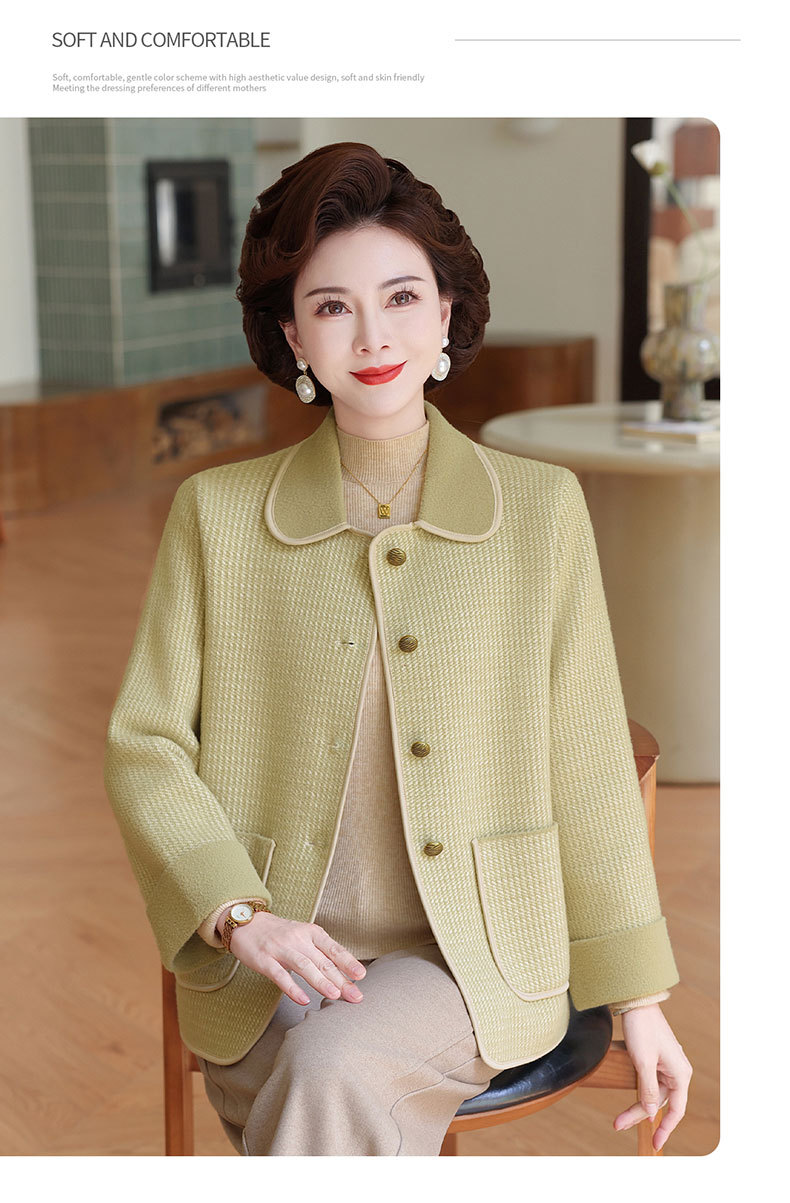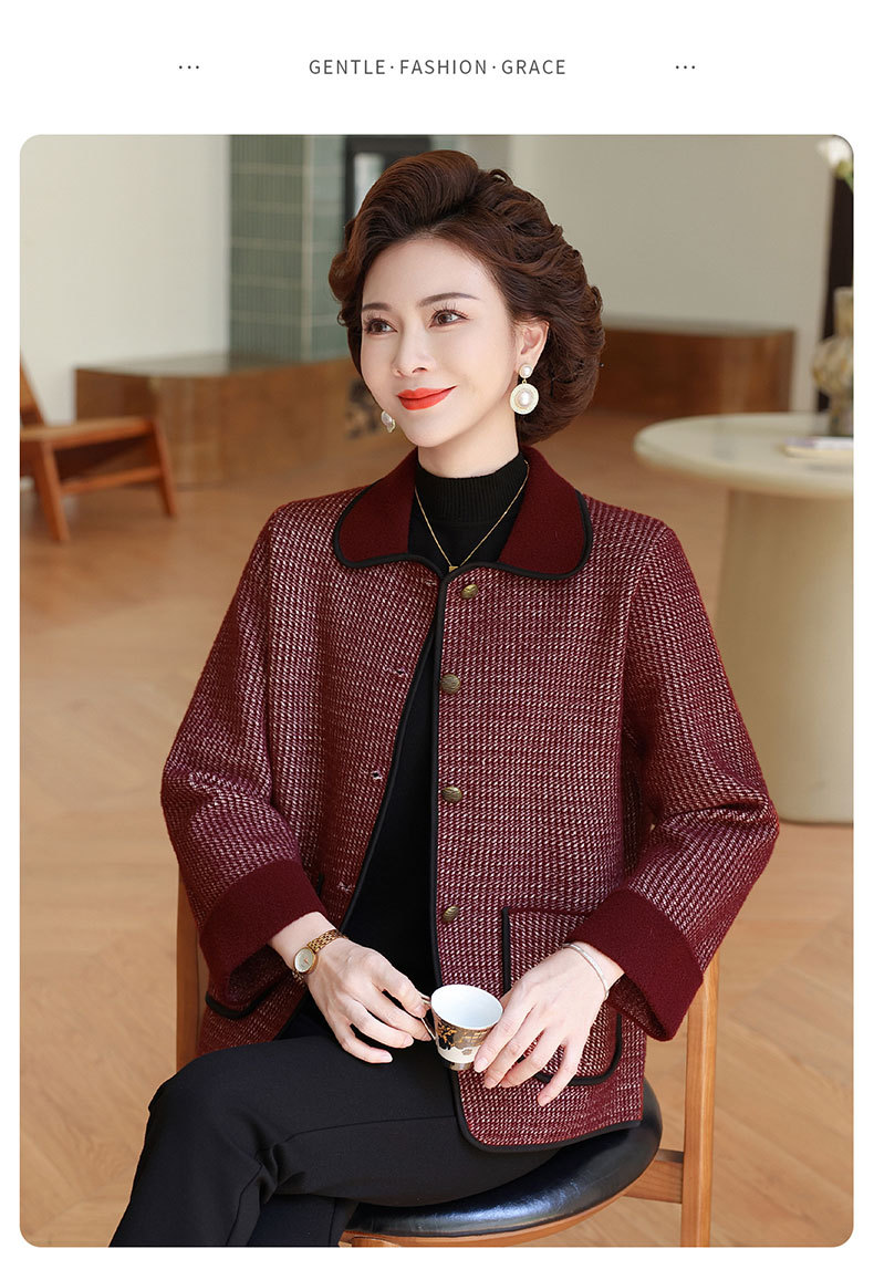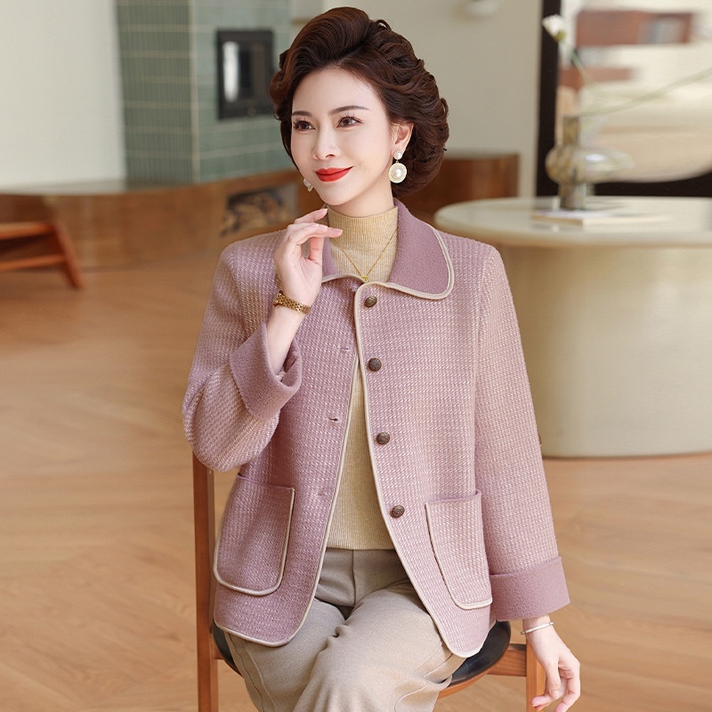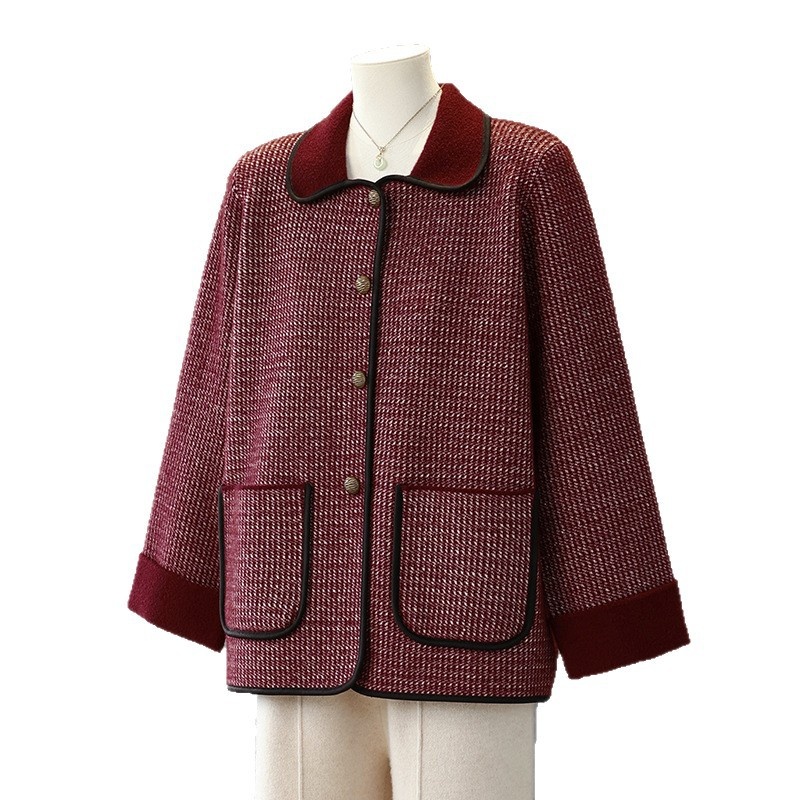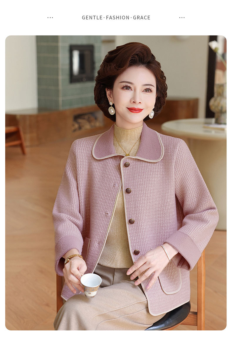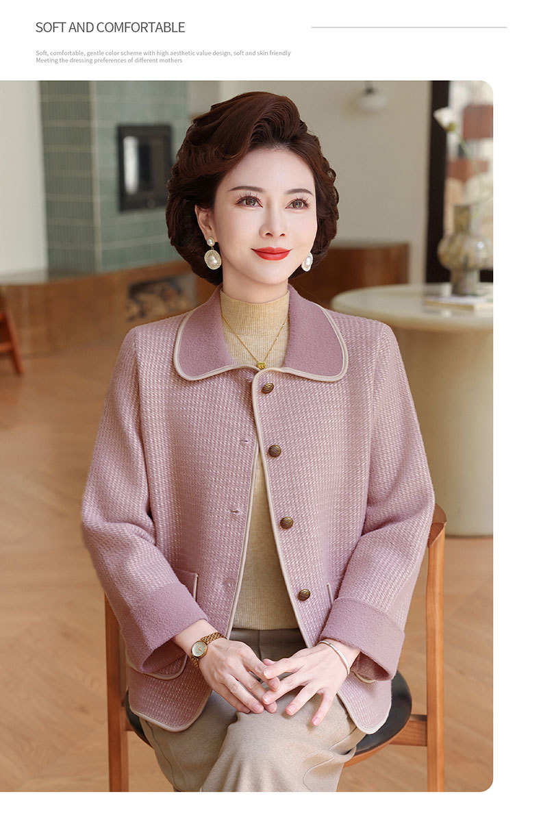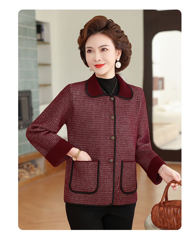 商品名称:妈妈秋装外套高贵时尚夹克上衣2025新款中老年女装洋气质针织开衫