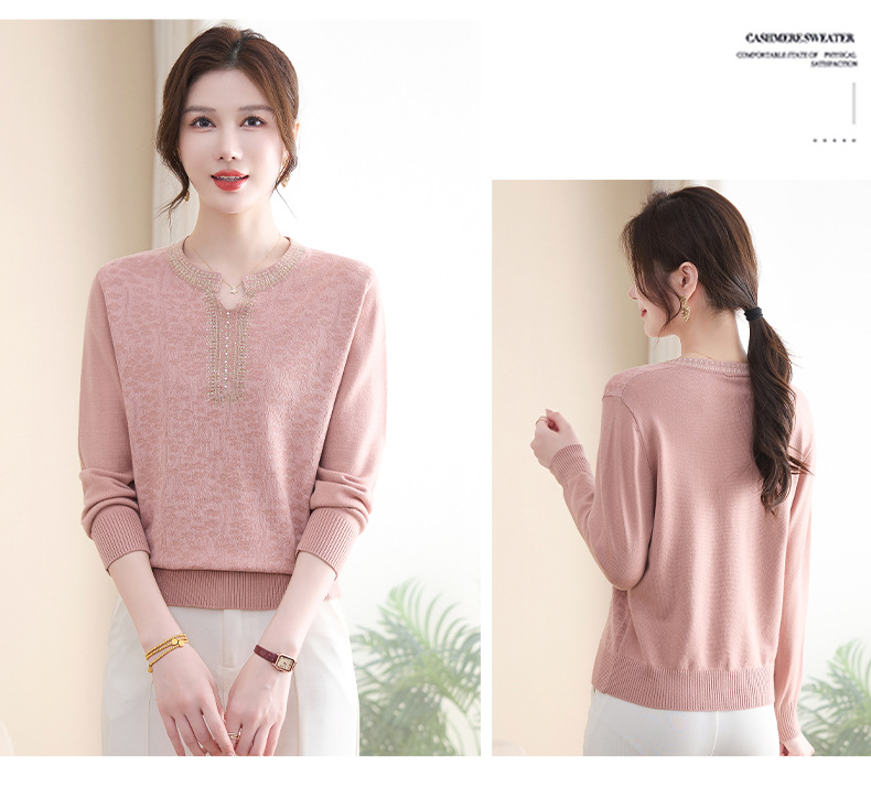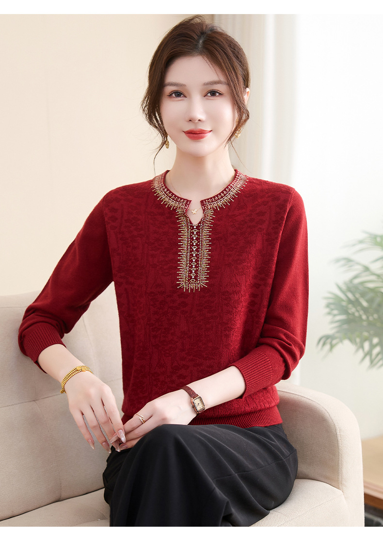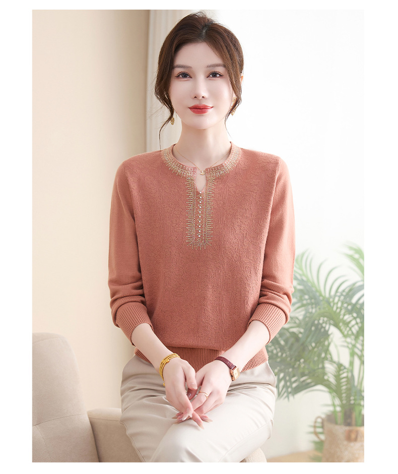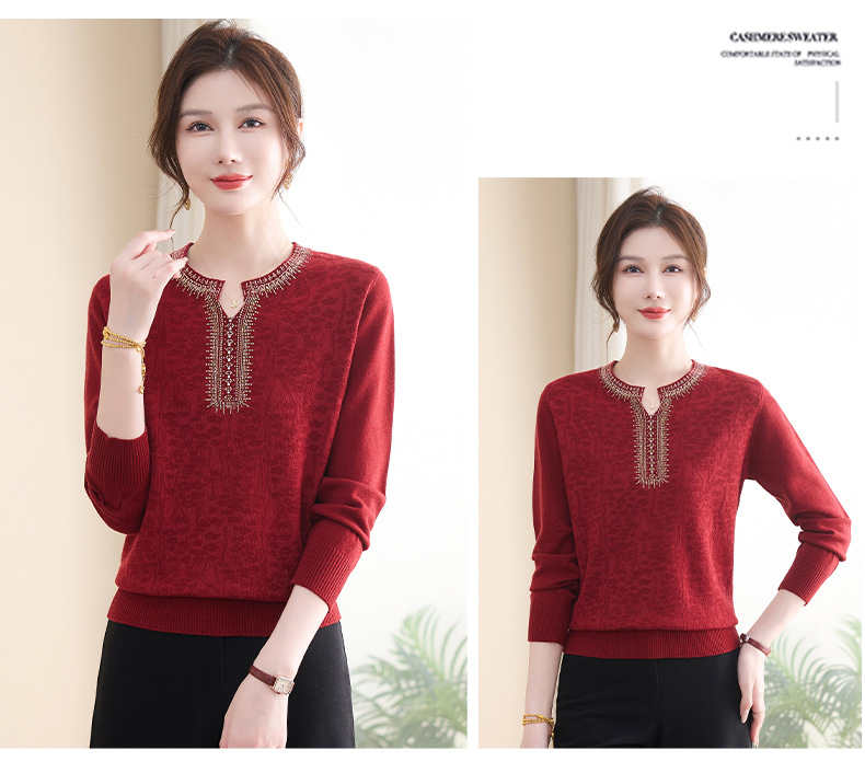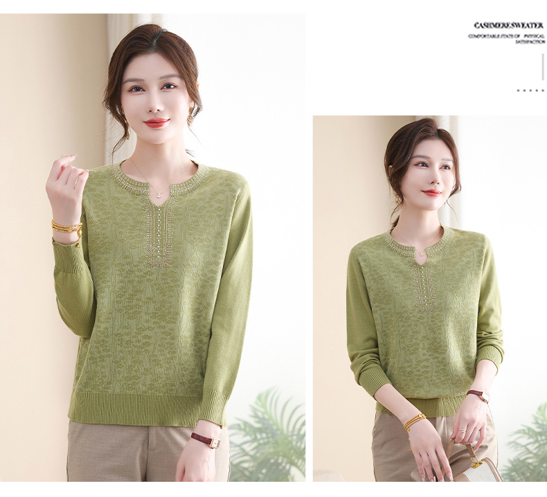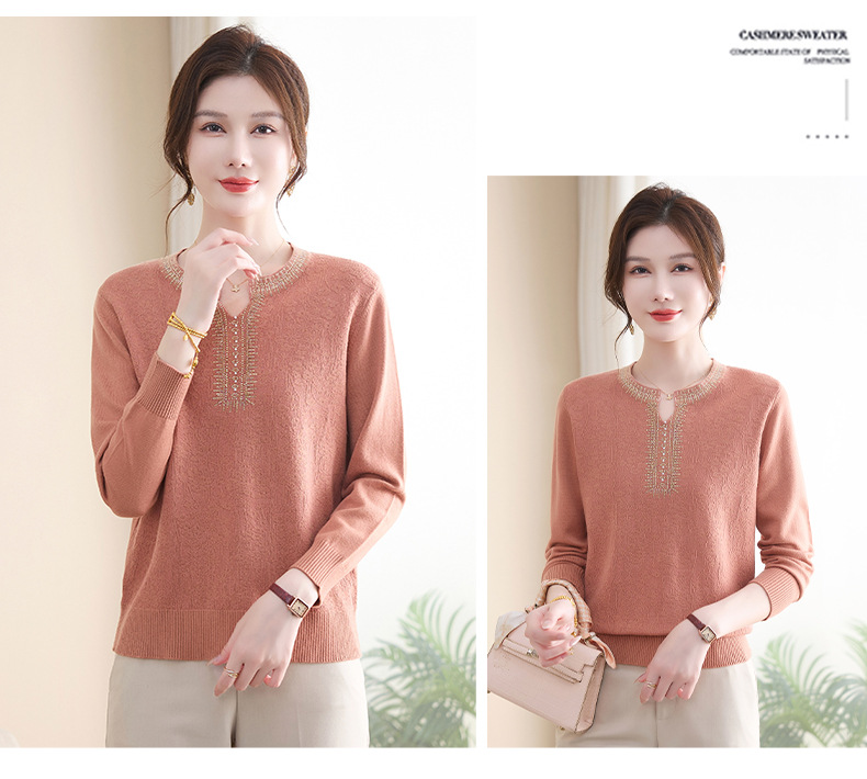商品名称:2025新款中年妈妈春秋打底小衫洋气毛衣中老年女秋冬针织衫上衣服