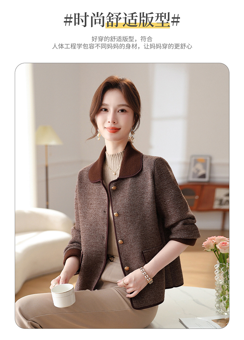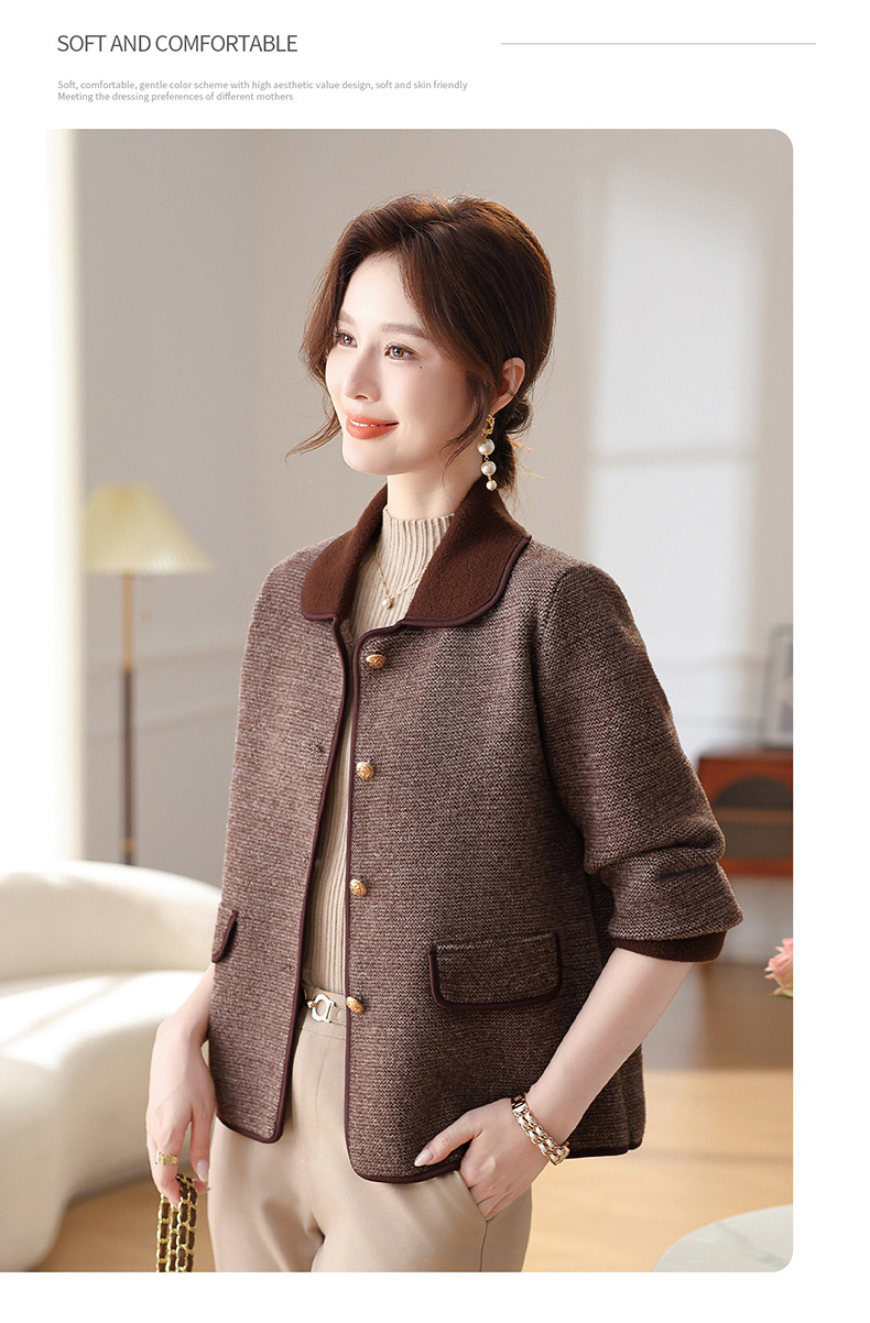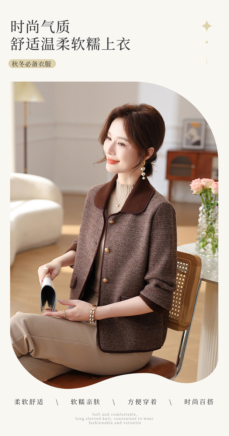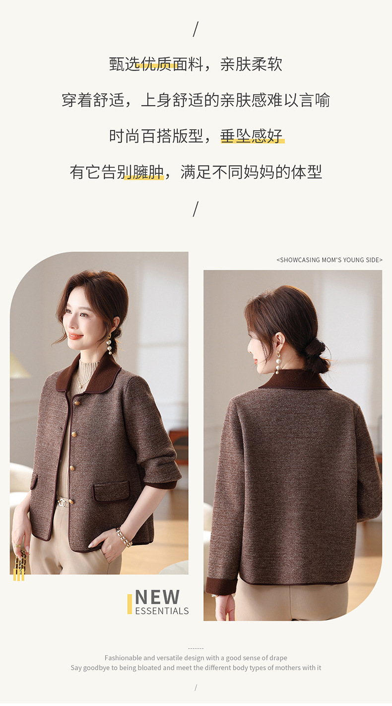 商品名称:2025翻领开衫秋季新款妈妈百搭外套时尚针织开衫女上衣中年外搭