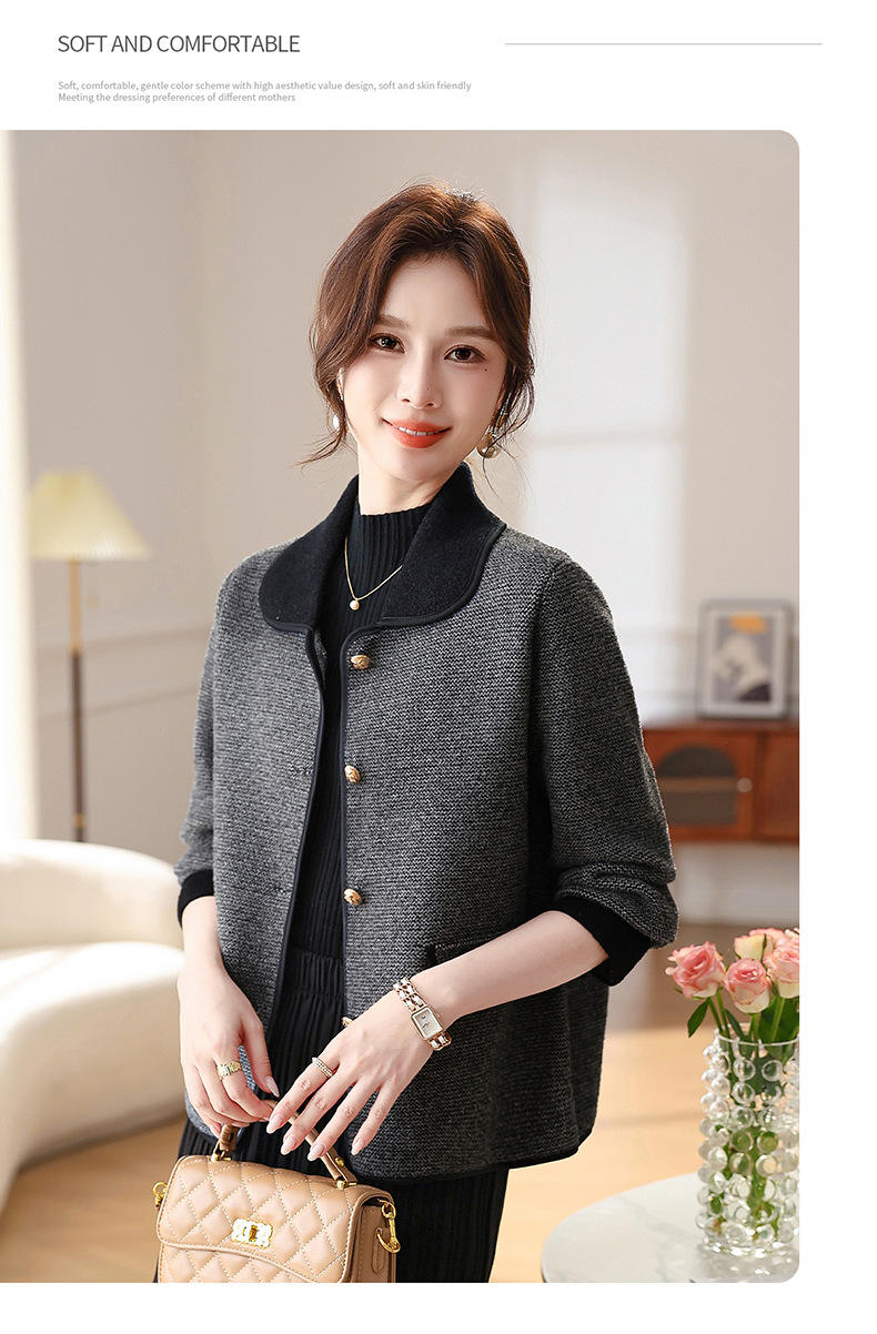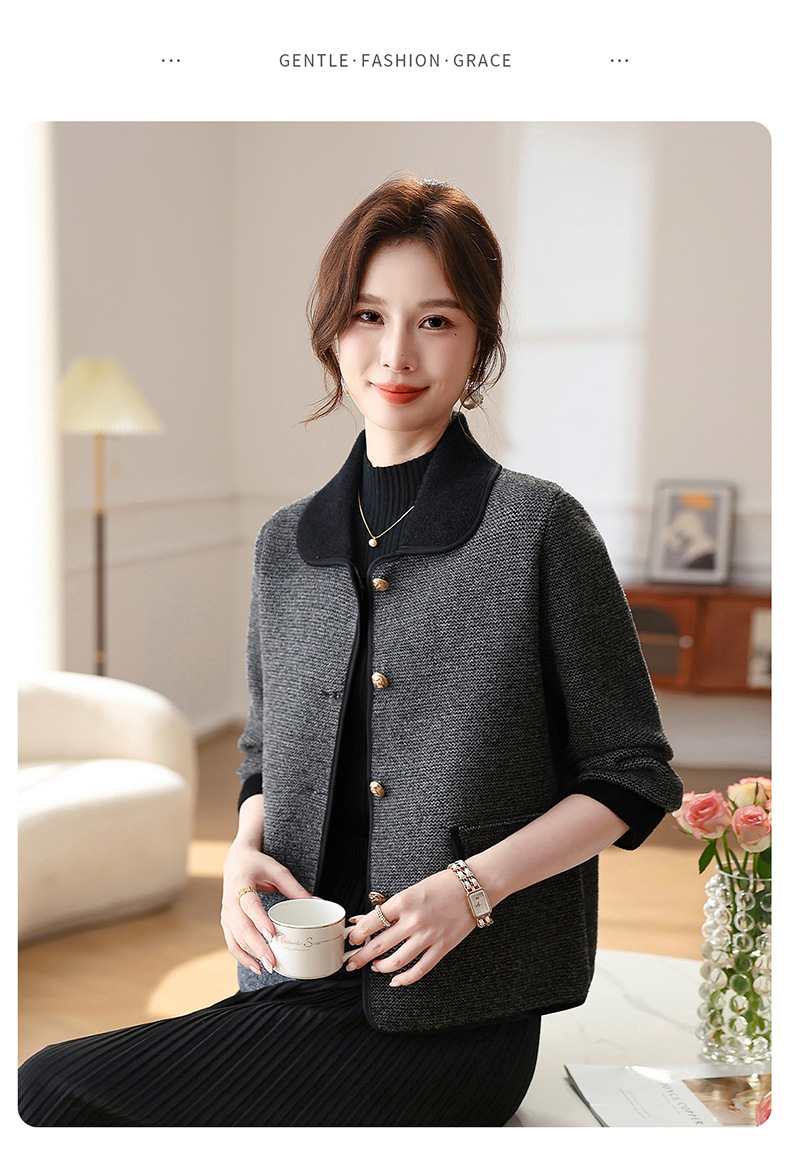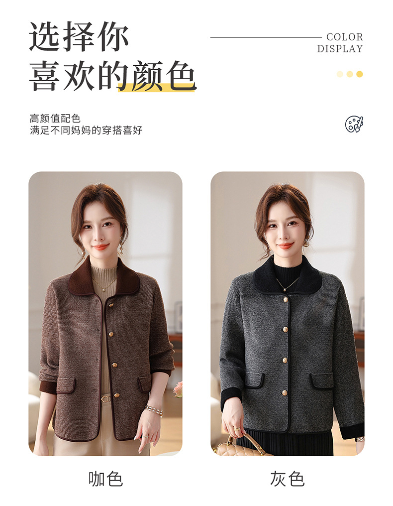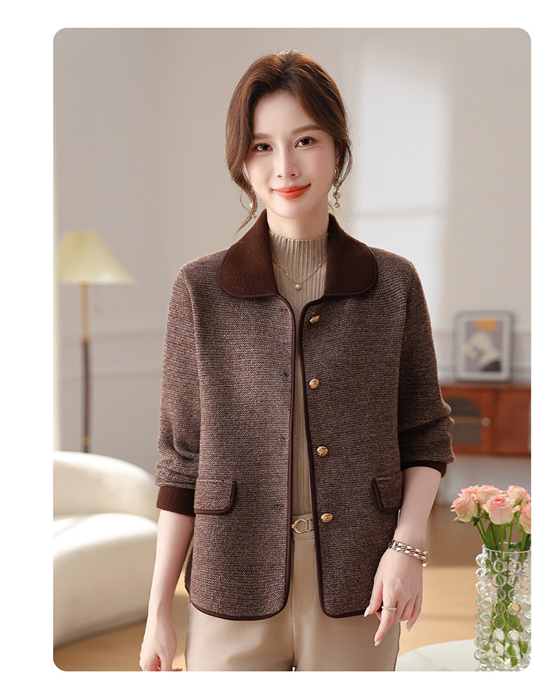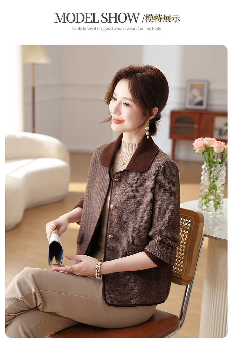 商品名称:2025翻领开衫秋季新款妈妈百搭外套时尚针织开衫女上衣中年外搭