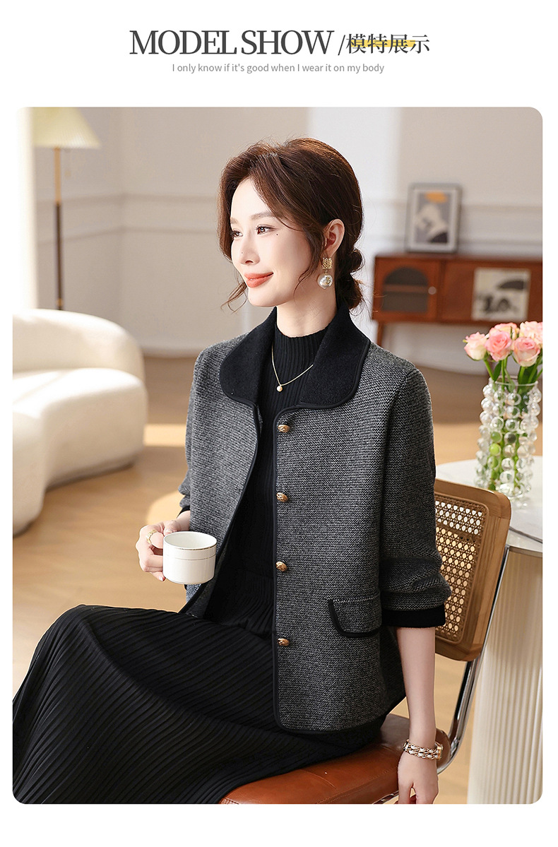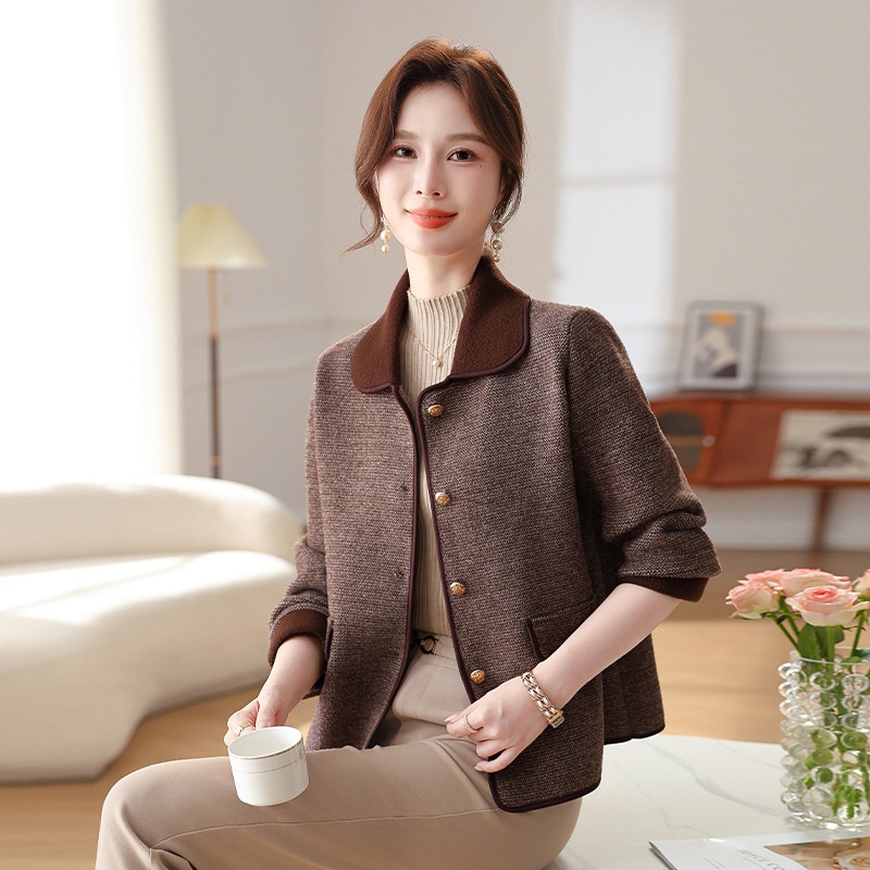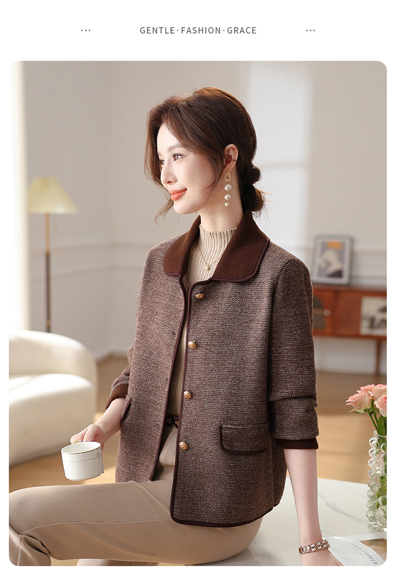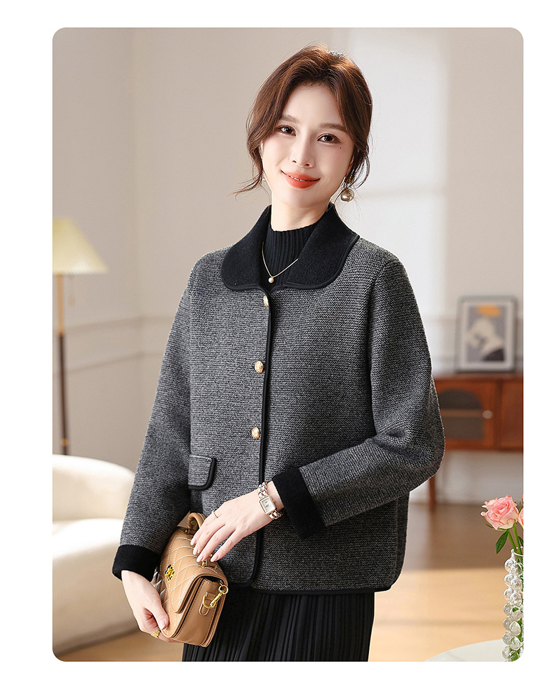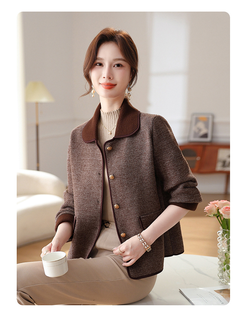 商品名称:2025翻领开衫秋季新款妈妈百搭外套时尚针织开衫女上衣中年外搭