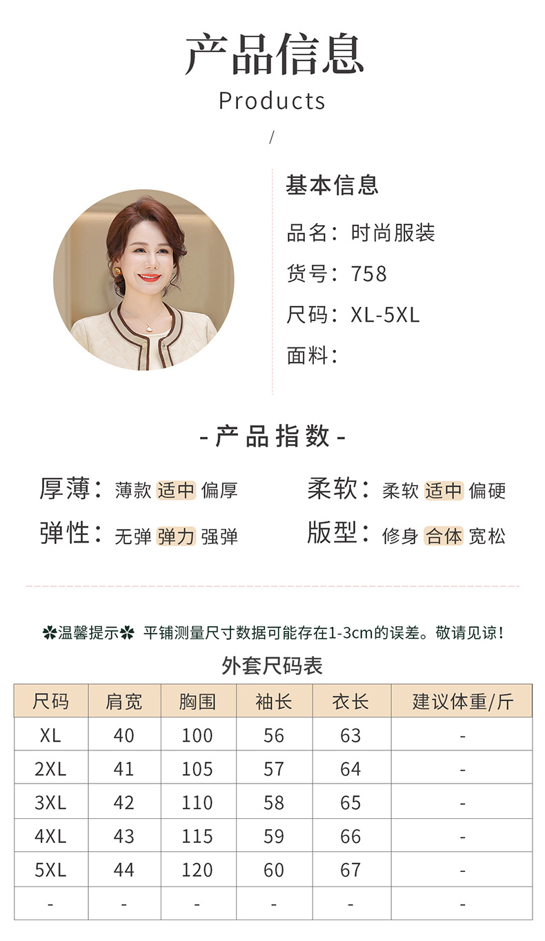 商品名称:2025年春秋年轻妈妈中年女装短款夹克上衣中老年秋装洋气时尚外套