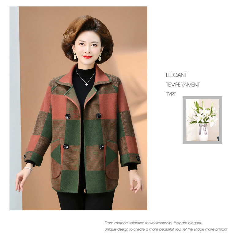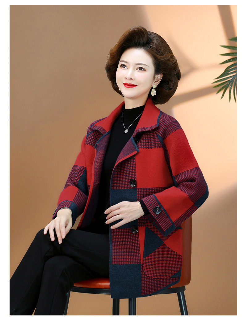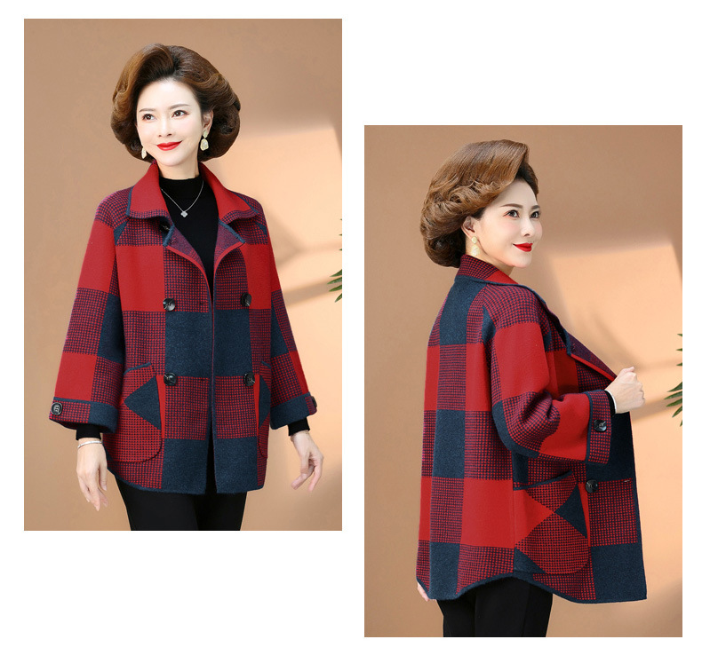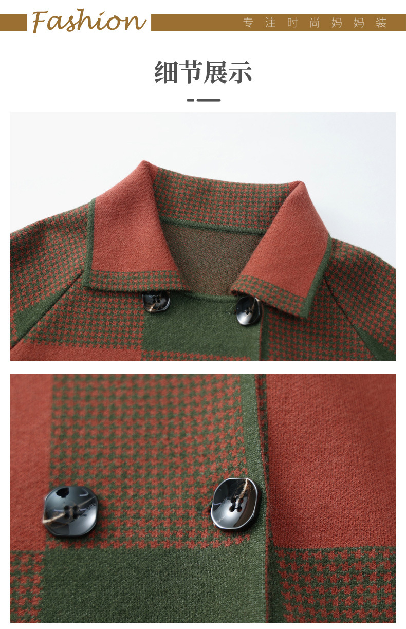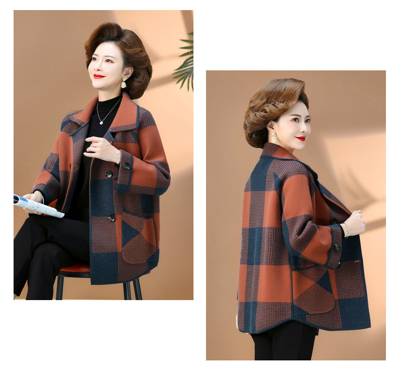 商品名称:2025春秋冬中老年妈妈装上衣女时尚洋气格子外套新款针织开衫外套