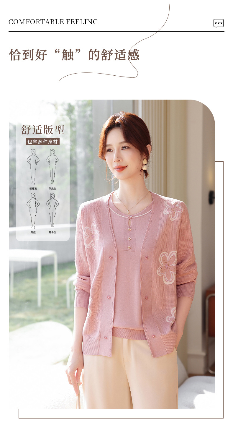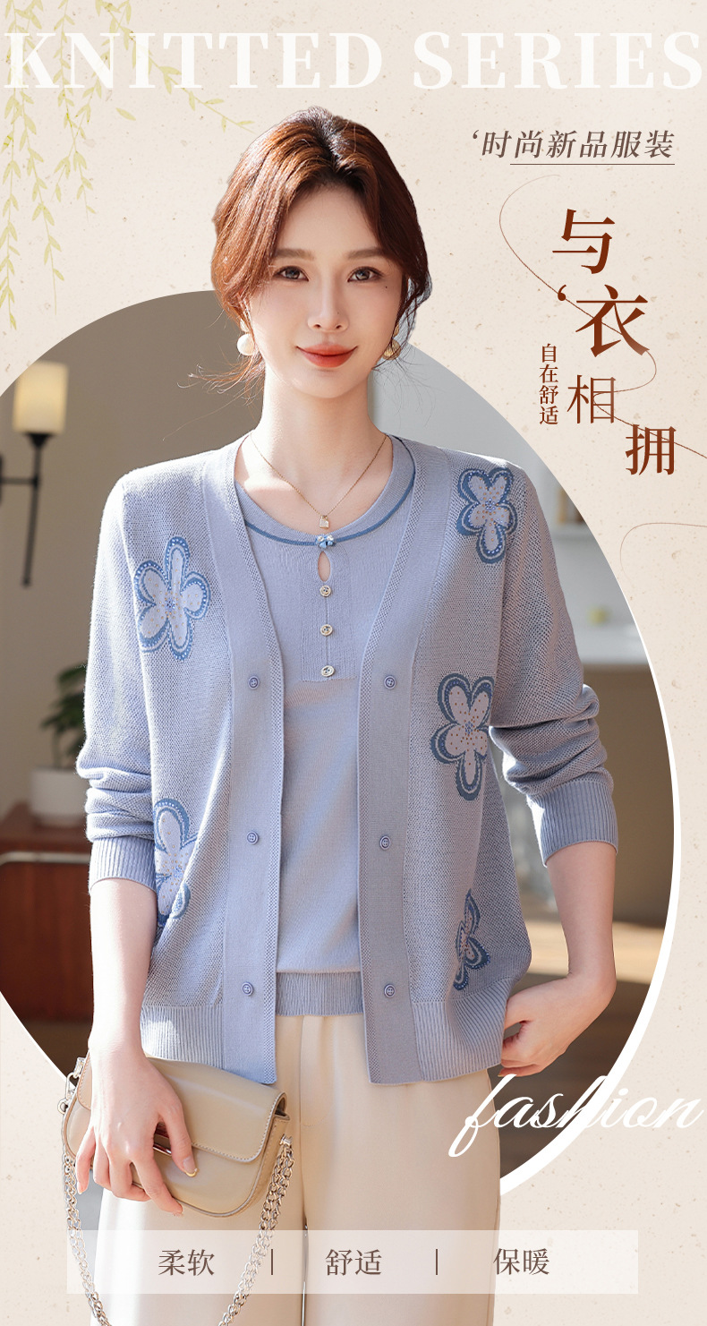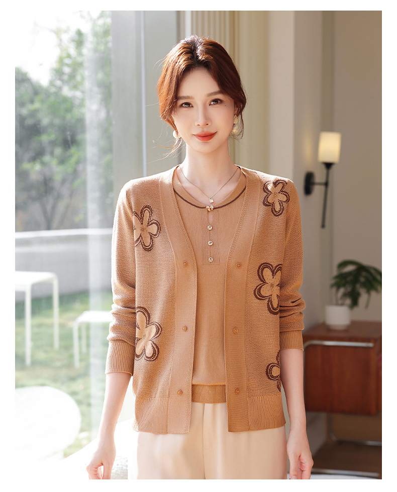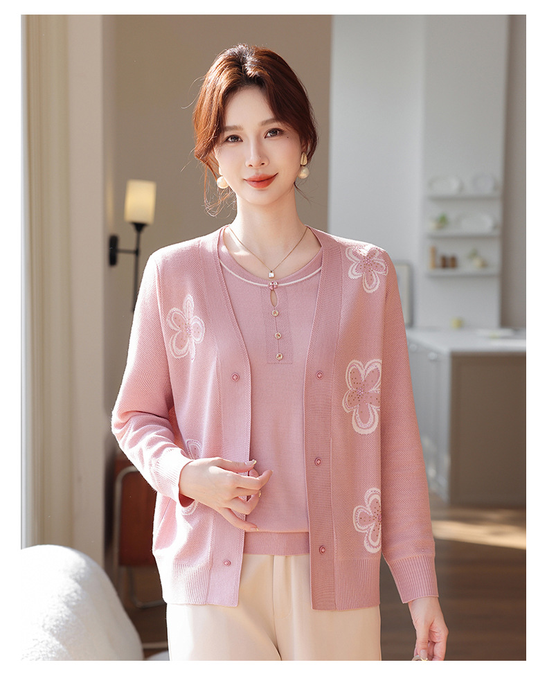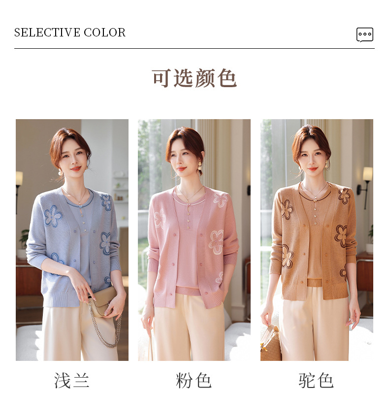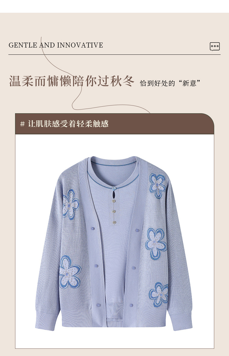 商品名称:2026新款上衣服中老年春秋针织开衫套装妈妈春装洋气毛衣中年女装