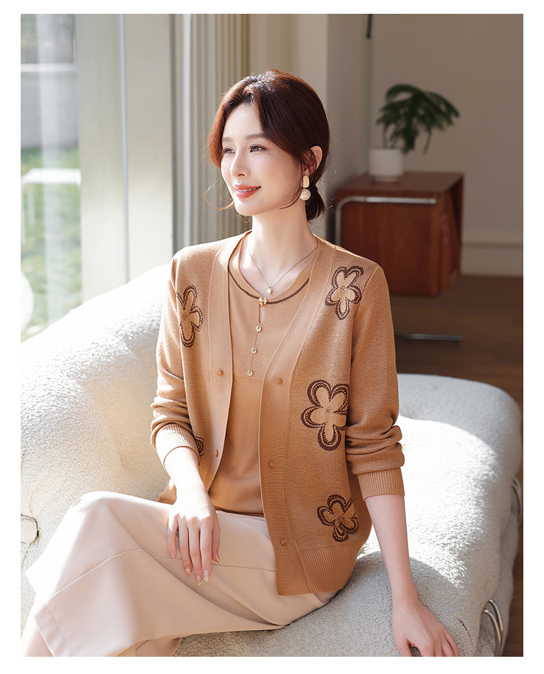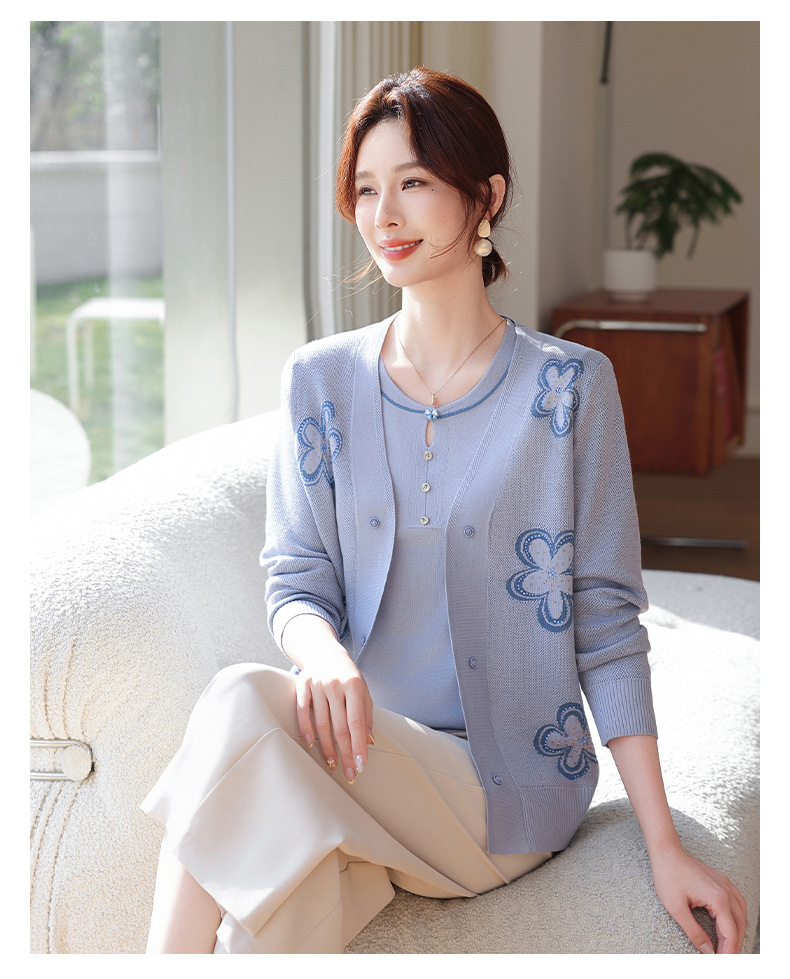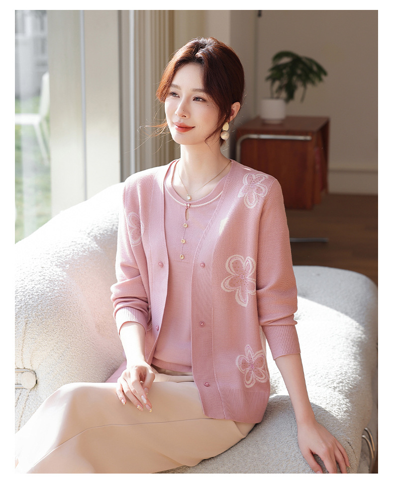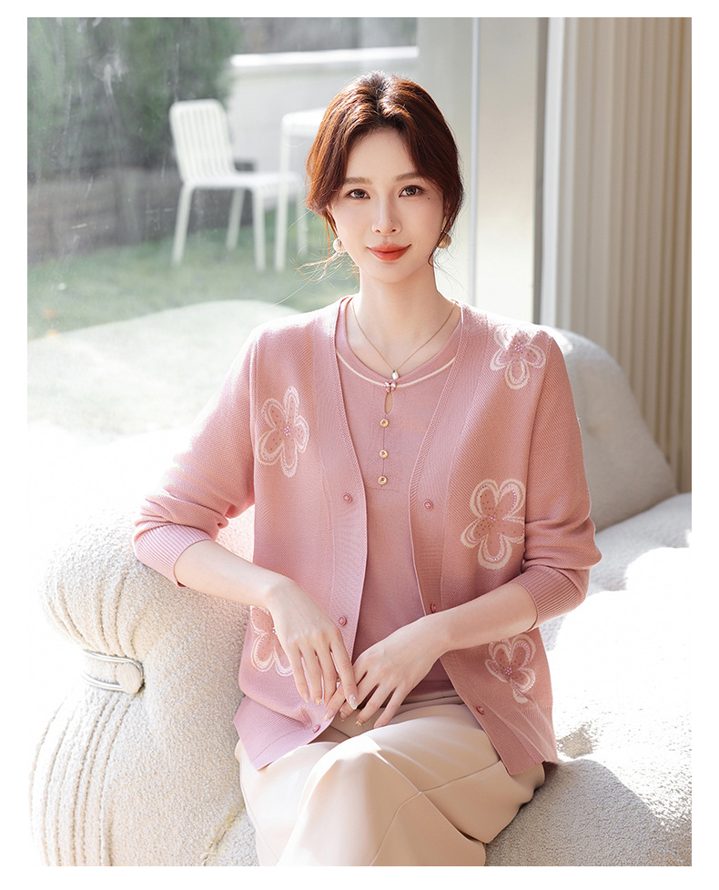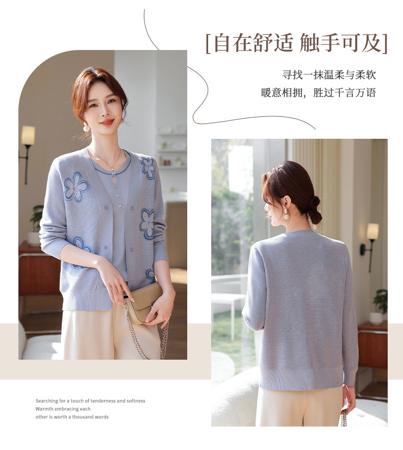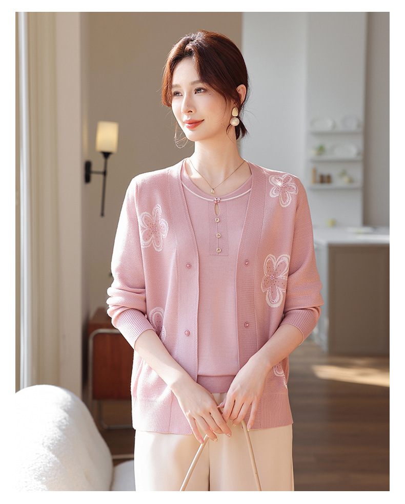 商品名称:2026新款上衣服中老年春秋针织开衫套装妈妈春装洋气毛衣中年女装