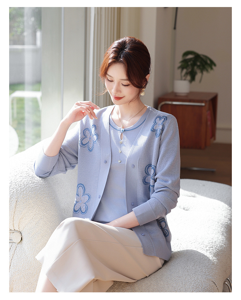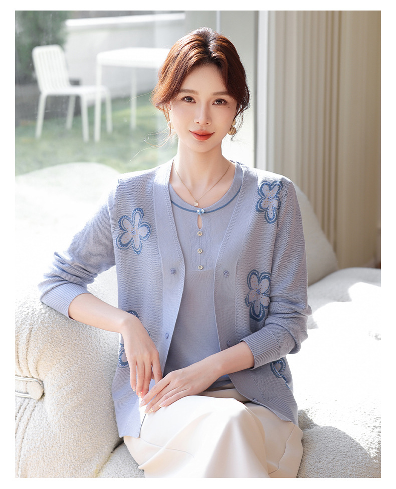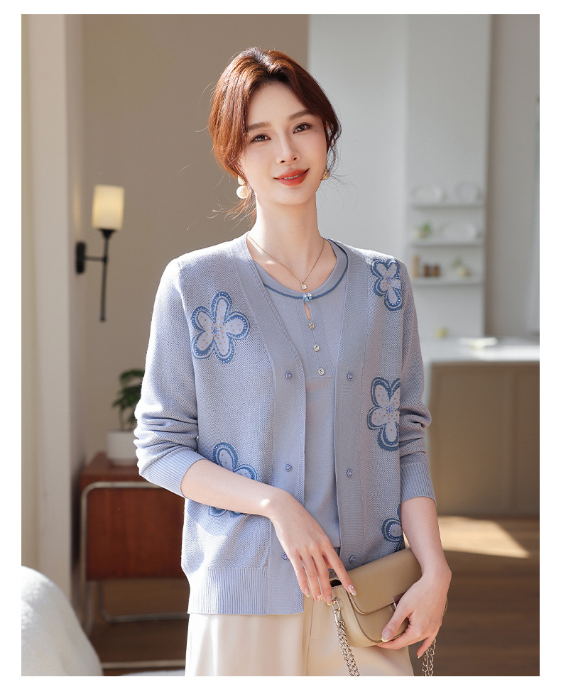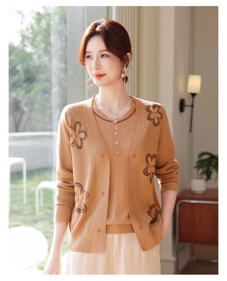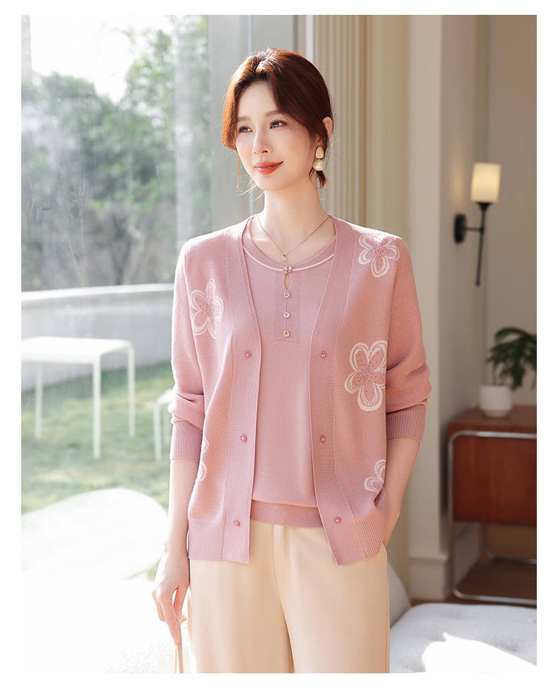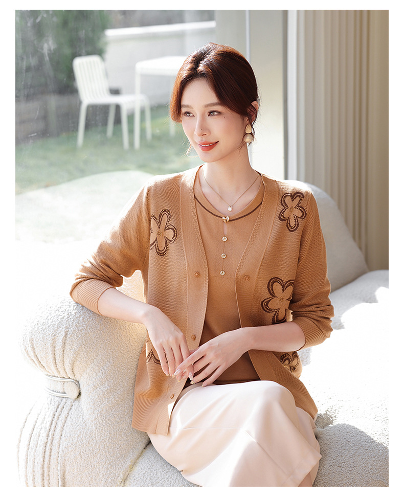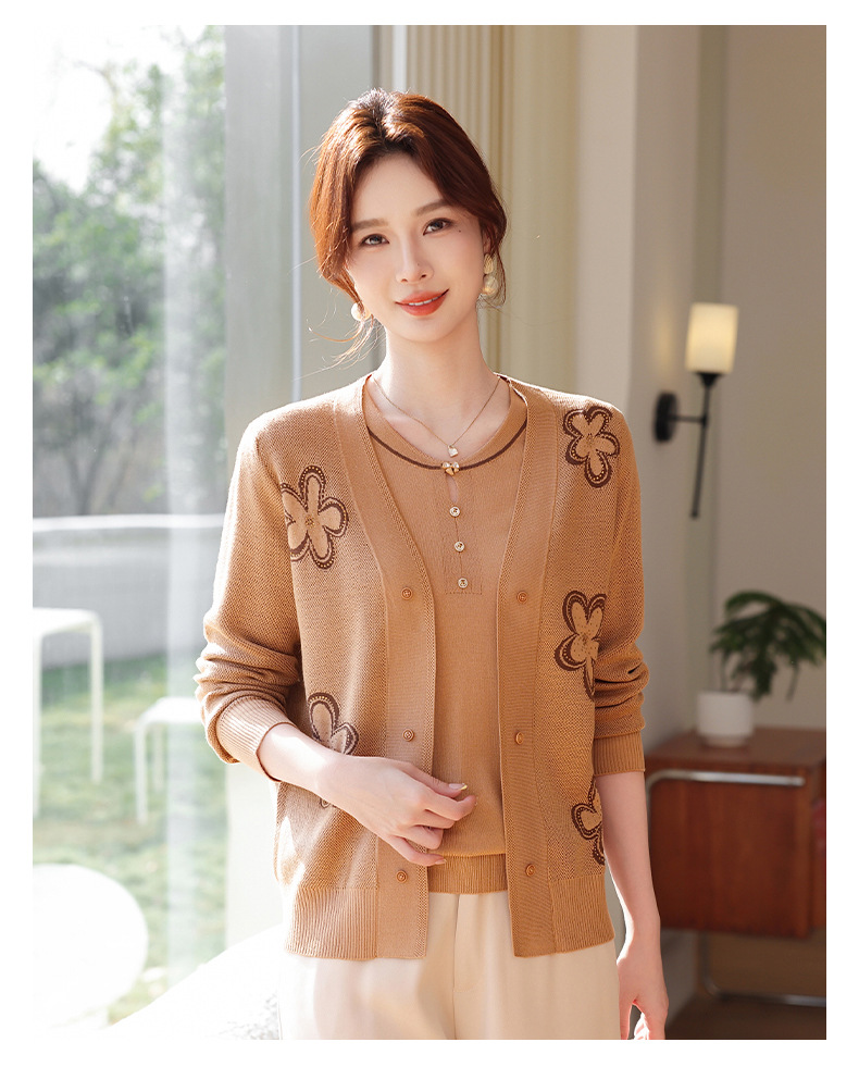 商品名称:2026新款上衣服中老年春秋针织开衫套装妈妈春装洋气毛衣中年女装