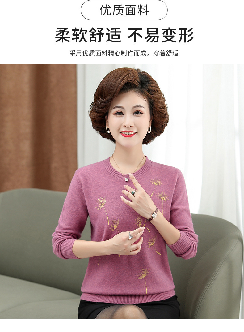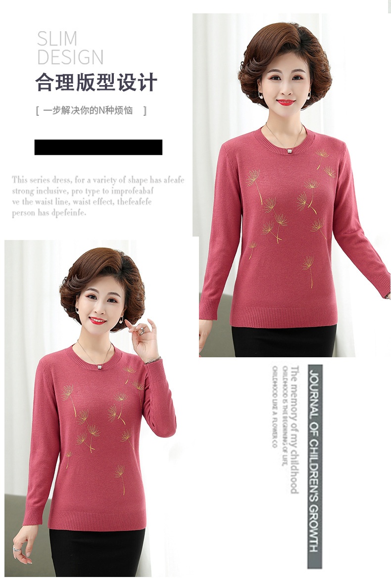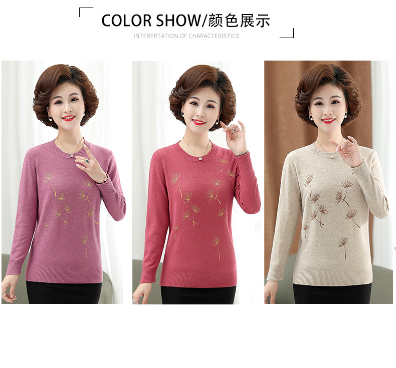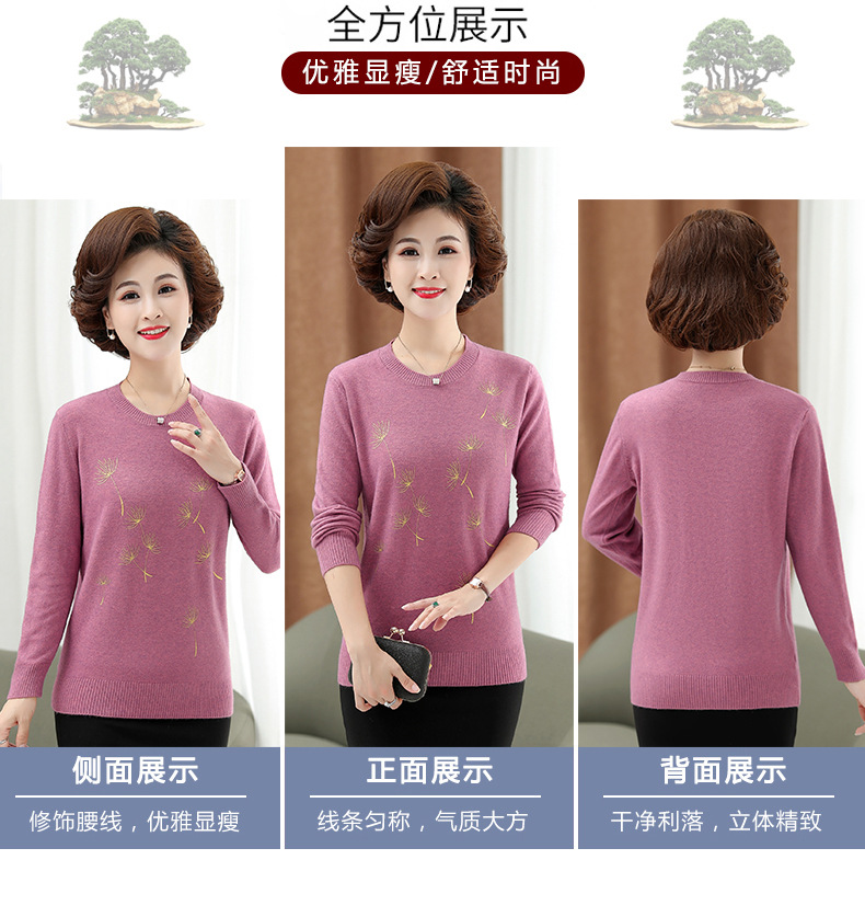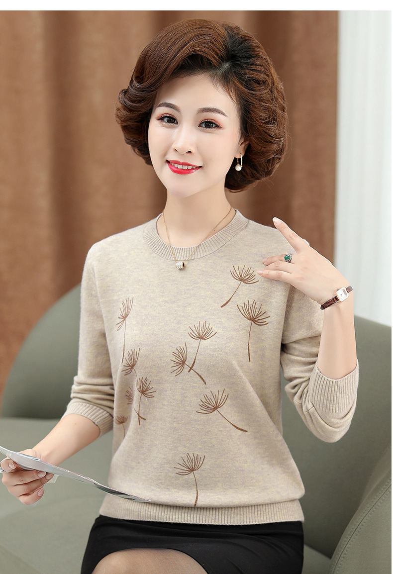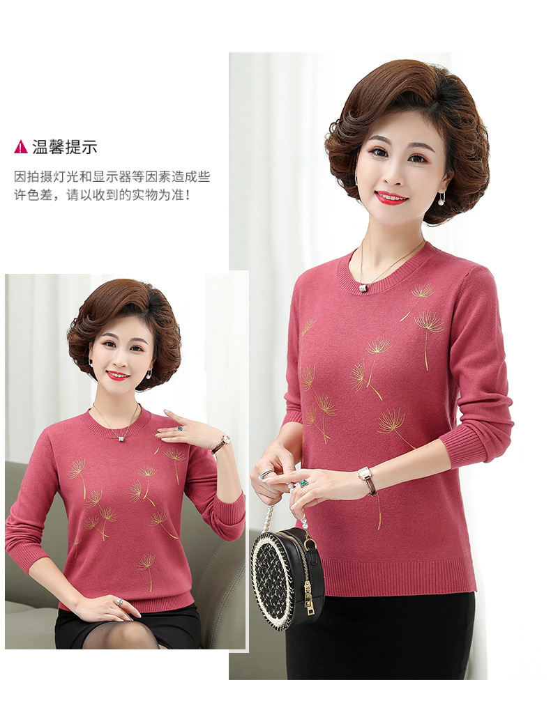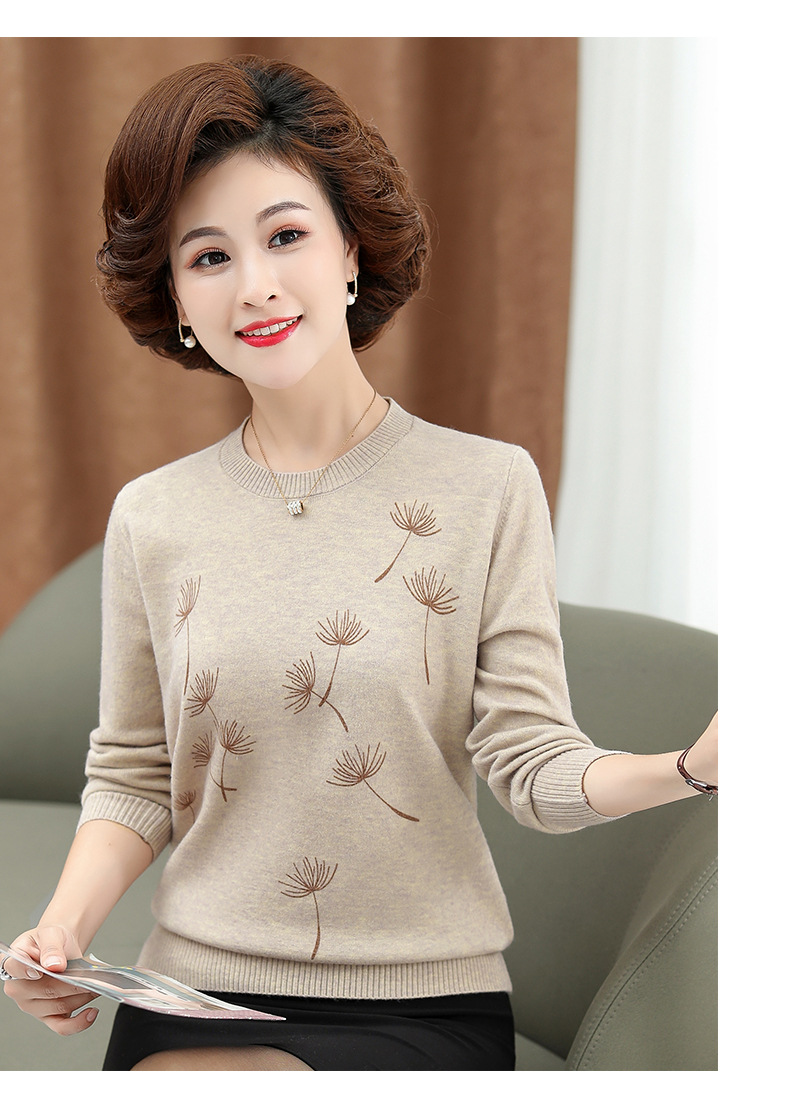 商品名称:中老年女装秋冬新款大码印花打底衫女士妈妈装低圆领针织衫毛衣